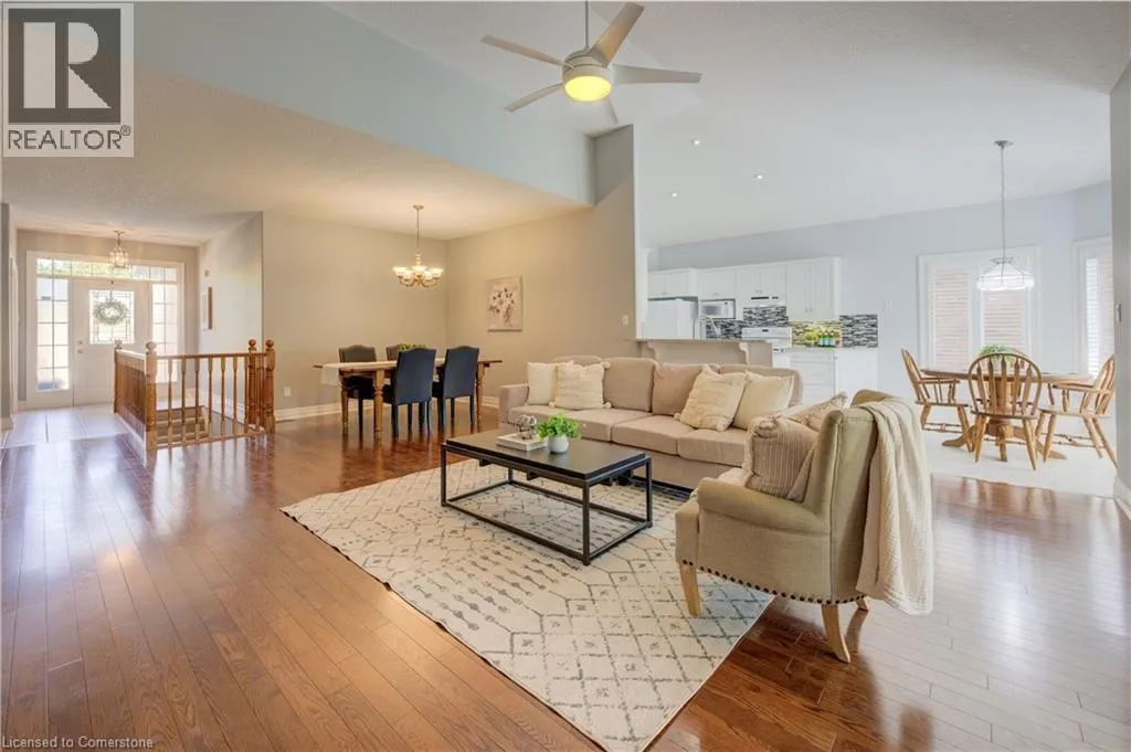 Haysville Road / Stonecroft Way / Devonshire Drive Welcome to 59 Devonshire Drive, a lovingly maintained Waterford Model offering two bedrooms plus a den, 2.5 bathrooms, and over 2,700 sq. ft. of finished living space. The open-concept main floor features hardwood flooring, a bright kitchen with stone countertops, tile backsplash, peninsula seating, and California shutters. The spacious primary suite includes his-and-hers walk-in closets and an ensuite with double sinks and a low-barrier walk-in shower. A bright second bedroom, 4-piece bath, den with French doors, and main floor laundry with extra storage complete this level. Relax in the three-season sunroom overlooking lush greenery or entertain in the finished lower level with two large multipurpose rooms, a 2-piece bath, and abundant storage. Recent upgrades for peace of mind include roof, furnace, A/C, and attic insulation. Outside, enjoy an upgraded interlocking brick driveway, double garage, and serene surroundings. Stonecroftâs 18,000 sq. ft. rec center offers an indoor pool, fitness room, games/media rooms, library, party room, billiards, tennis courts, and 5 km of walking trails. Come live the lifestyle at Stonecroft! (id:27476)