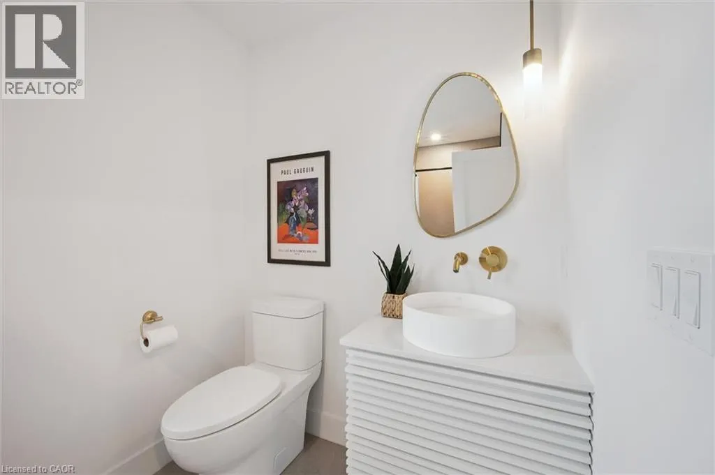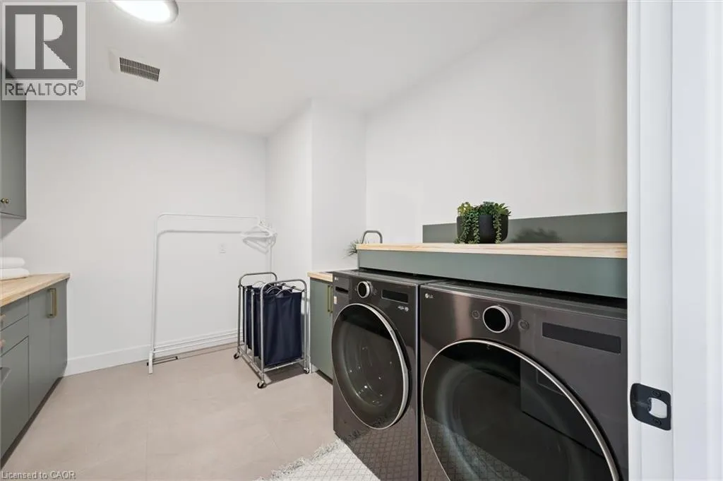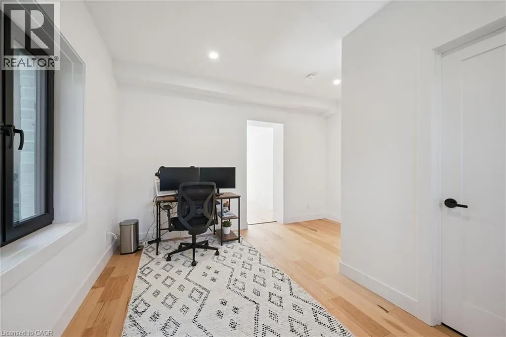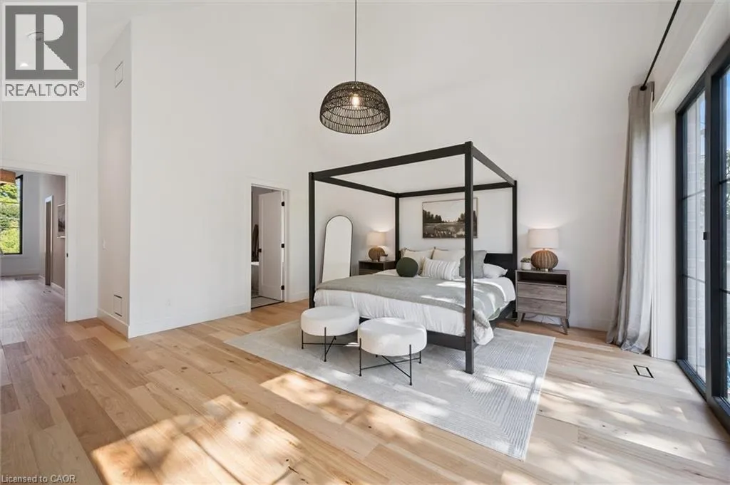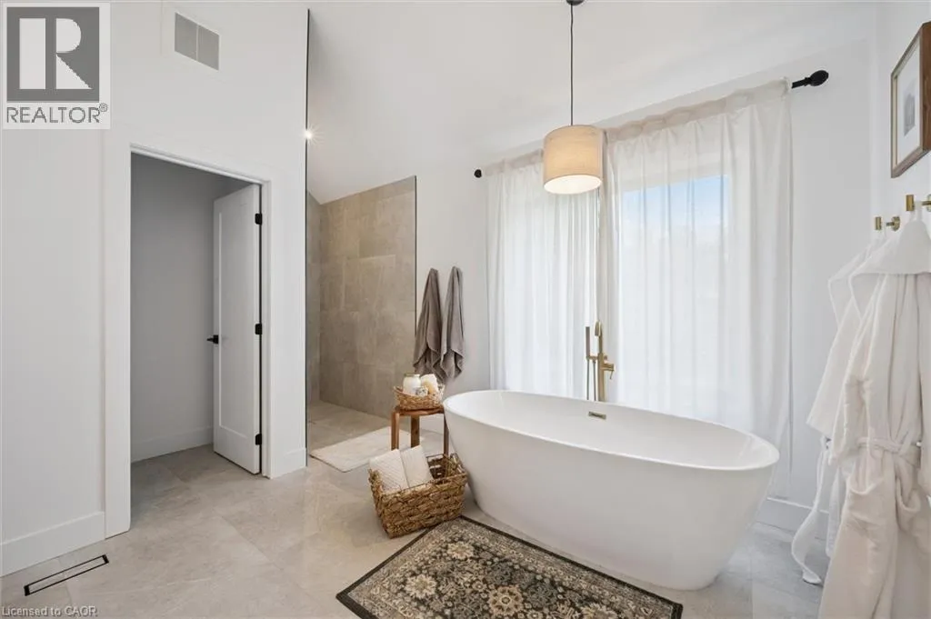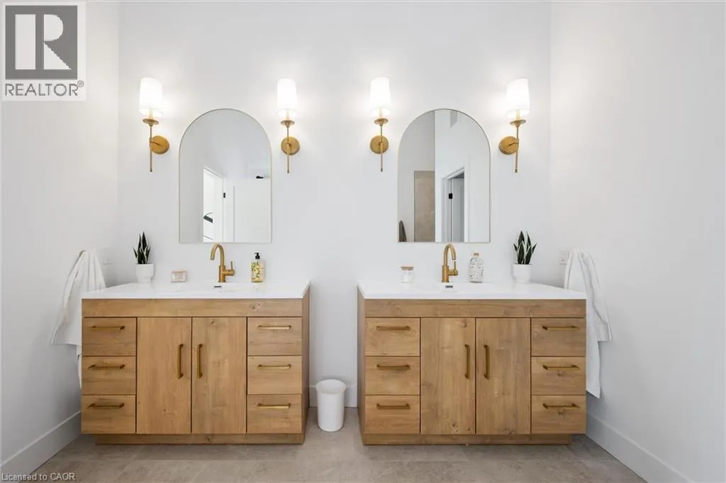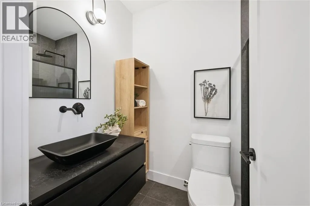 Wilmont left onto Huron Welcome to 413 Huron Road in charming New Hamburg! A truly exceptional 5-bedroom, 4-bathroom home offering over 4,400 sq. ft. of finished living space, where thoughtful design meets high-end finishes and timeless craftsmanship. The exterior blends timeless materials like stone, brick, and barn board for a striking curb appeal, complemented by a concrete driveway with integrated drainage and underground downspout management. Inside, the home is flooded with natural light thanks to oversized Raven European tilt/turn windows, which beautifully highlight the neutral tones, organic finishes, and natural hickory engineered hardwood throughout. The heart of the home is the handcrafted maple kitchen and adjoining butlerâs pantry, featuring a Monogram gas oven/range, built-in 36â Fisher & Paykel fridge and dishwasher, an apron sink, and ample storage, ideal for everyday living and entertaining alike. A separate entrance leads to a private granny flat, perfect for multi-generational living or guests. Comfort is maximized with multi-zone climate control, a hot water recirculation line for instant hot water to the second-floor bathrooms, and a large Lennox natural gas fireplace for cozy evenings. Additional features include a custom vanity in the foyer bath, VIGO faucets, Red Oak stairs, and a master suite boasting oversized windows and Italian tile finishes. The home is equipped with a 200 AMP electrical panel, water softener, and plenty of storage including a large shed. Outside, enjoy an incredible entertaining space with a wood deck and an expansive grass area set on 3/4 acre in town perfect for relaxing or hosting gatherings. This is a rare blend of luxury, functionality, and thoughtful design in a peaceful, sought-after location. (id:27476)