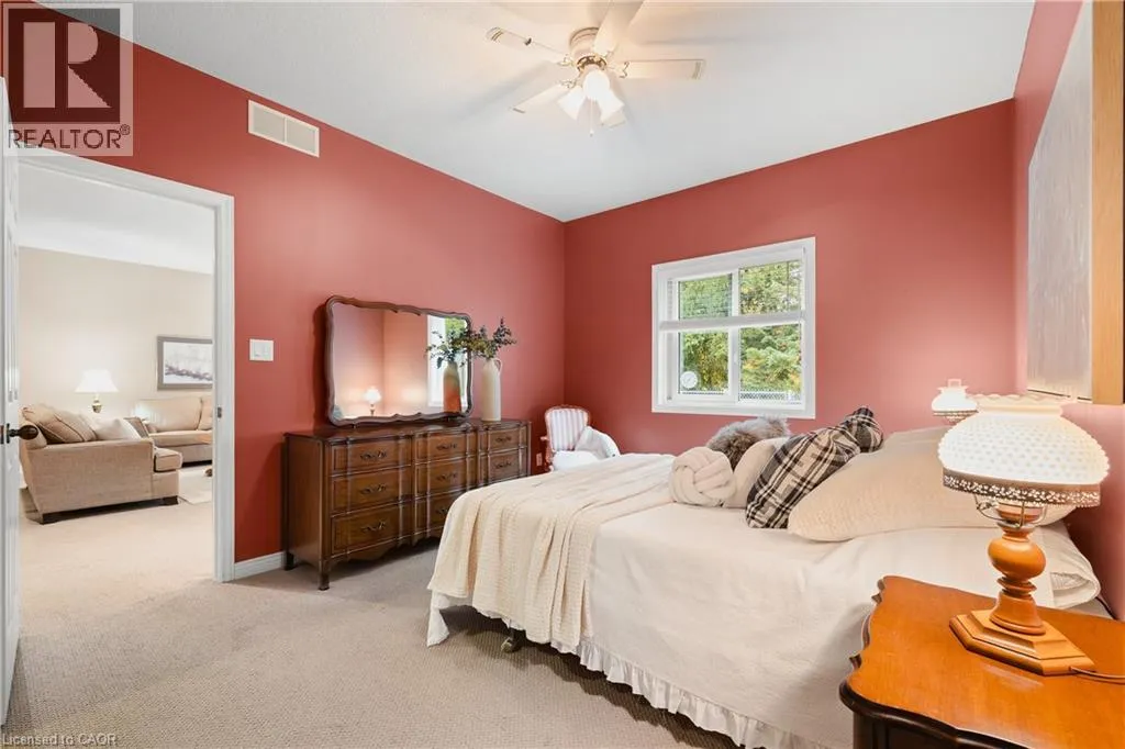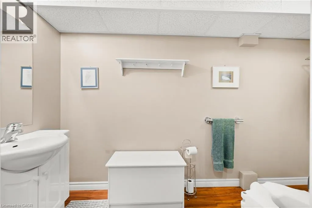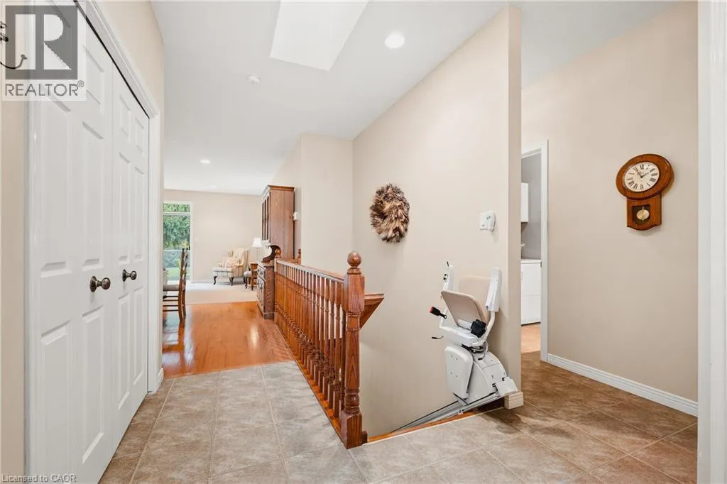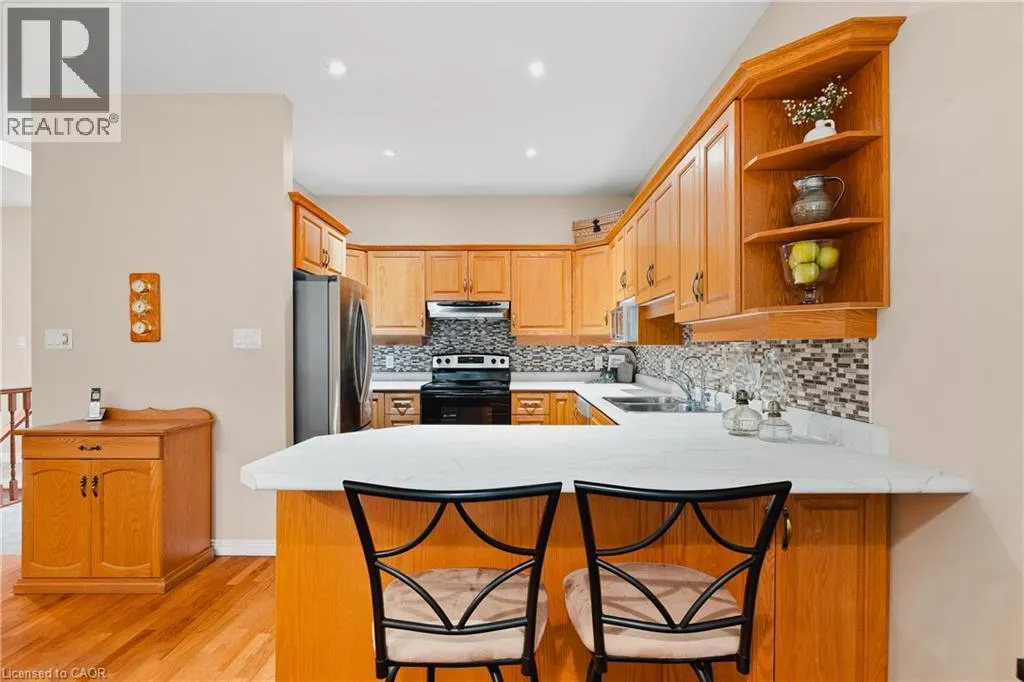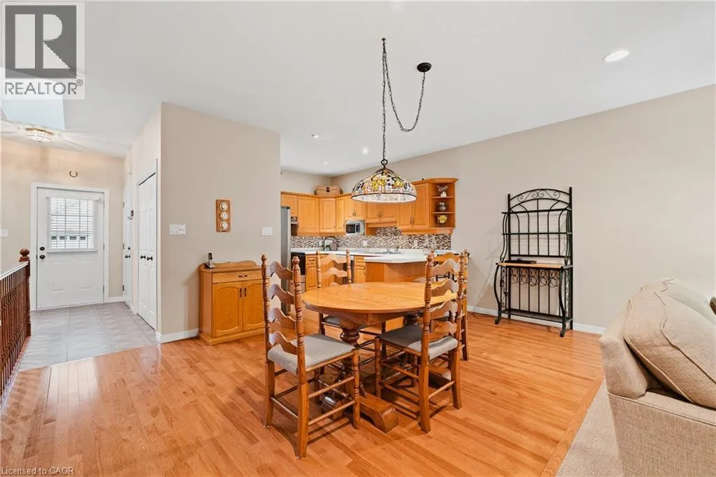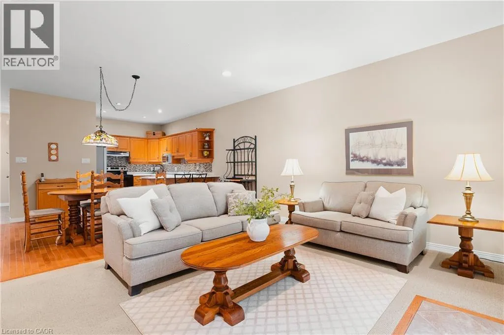 Huron St to Waterloo St Beautiful Bungalow Townhome in the desirable community of Jacobâs Orchard, New Hamburg. Nestled in a peaceful 55+ community, this 2+1 bedroom, 2.5 bathroom condo offers over 2200 sq. ft. of bright, inviting living space. The open-concept main floor features a skylit foyer, spacious living area, and a well-designed kitchen with custom cabinetry, glass and stone backsplash, Bosch dishwasher, and hickory hardwood floors. The primary suite includes a walk-in closet and 3-piece ensuite, while the second bedroom is perfect for guests or a home office. Step outside to a large 9âx22â composite deck overlooking the beautiful arboretum. The finished basement adds a generous rec room with gas fireplace, guest room or den, 3-piece bath, workshop, and cold room. Enjoy an attached garage, main floor laundry, and low condo fees covering snow removal, landscaping, and exterior maintenance. Easy access to highway 7/8 & a close drive to Kitchener-Waterloo & Stratford. Conveniently close to shops, restaurants, and local amenities â a perfect blend of comfort for retirement living. (id:27476)