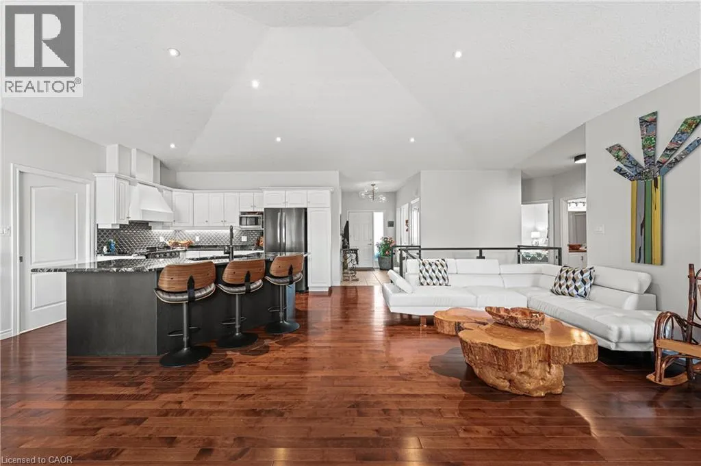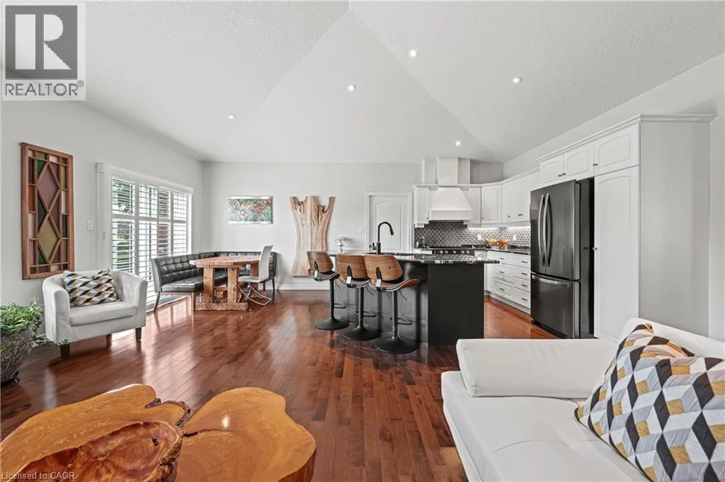 TOWNSHIP RD 12 TO STONECROFT WAY, THEN DEVONSHIRE DRIVE Welcome to 152 Devonshire Dr, a beautifully updated home in the coveted community of Stonecroft. This property is one of only a handful of lots offering premium greenspace views-an exceptionally rare find. W/ no rear neighbors & landscaped grounds it provides unmatched privacy & a spectacular setting. An oversized composite deck, perennial gardens, & sweeping views, all w/ southern exposure fills the yard & home w/ natural light. This strikingly beautiful move-in ready home (no renos required!) features new glass panel railings w/ nearly 3,000 SF of finished living space enhanced by approx. $70K in recent updates. A grand great rm w/ vaulted ceilings is anchored by a porcelain-surround gas fireplace & wall of windows framing private greenspace. The kitchen boasts new granite counters and appliances & a lrg centre island, under-cabinet lighting, & integrated dining area w/ walkout to the deck. The den/home office has built-in cabinetry, hickory flrs through the main lvl, new flring in the den, 2nd bath & primary suite. Freshly painted, w/ pot lights, California shutters, & designer light fixtures throughout. The primary suite offers backyard views, dual closets, & a spa-like ensuite w/ barn door, tiled glass shower, & oversized bubbler tub. A 2nd bdrm with vaulted ceiling, 4-pc bath, & laundry/mudrm w/ 2-car garage & yard access completes the main lvl. The finished lower lvl features a spacious rec rm w/ gas fireplace, wet bar w/ full-size fridge+freezer, workshop/hobby rm, 3rd bdrm, & 3-pc bath-ideal for entertaining/guests. Lrg capacity storage rooms offer built-in shelving. Furnace & A/C (2023), roof (2019). At Stonecroft, the lifestyle is as appealing as the home. Residents enjoy an 18,000 SF rec centre w/ indoor pool, fitness, party & games rms, billiards, library, media lounge, tennis courts, & 5 km of walking trails. Stonecroft is Waterloo Regionâs premier destination for adult living, combining modern homes, a vibrant community, & a beautiful natural setting. (id:27476)