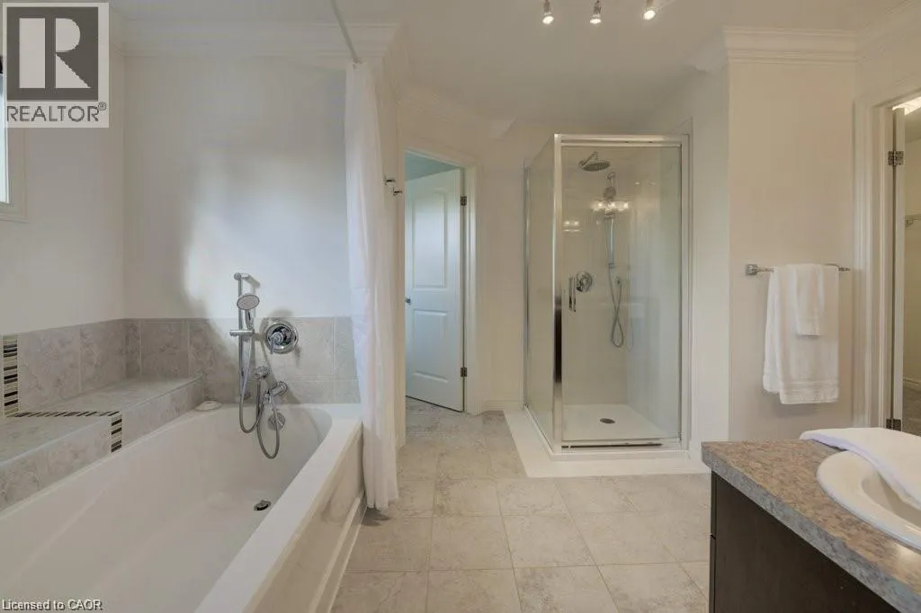 Waterloo St / Hostetler Rd Exquisite Custom-Built Home with Walkout Basement & Inground Pool Set on a picturesque quarter-acre lot, this exceptional residence offers nearly 5,000 sq. ft. of luxurious living space, including a fully finished walkout basement. From the moment you enter, the craftsmanship is unmistakableâsoaring ceilings, French doors, crown moulding, elegant wainscoting, and gleaming hardwood floors define the main level. Just off the foyer, a private home office provides the perfect space for work or study. The grand two-storey living and dining area showcases a cast stone fireplace with a floor-to-ceiling mantle, creating an impressive focal point. The adjacent chefâs kitchen is both stylish and functional, featuring granite countertops, tile backsplash, gas range, abundant cabinetry, island seating, and a bright breakfast area with sliding doors to the upper deck. A cozy family room, powder room, laundry area, and mudroom with access to the triple-car garage complete the main floor. Upstairs, the primary suite is a true retreat, complete with a private balcony overlooking the backyard, a walk-in closet, and a spa-like 5-piece ensuite with double vanity, soaker tub, and glass shower. Three additional bedrooms include one with a private ensuite and walk-in closet, and two joined by a Jack-and-Jill bathroomâall overlooking the stunning great room below. The fully finished walkout basement offers excellent in-law suite potential, featuring a kitchenette/wet bar, large recreation room, bedroom with ensuite and walk-in closet, home gym or den, and a powder room. Step outside to your private backyard oasis with a glass-paneled deck, lower patio, and inground pool surrounded by beautifully landscaped gardens. This remarkable property offers the perfect blend of elegance, space, and resort-style living. (id:27476)
