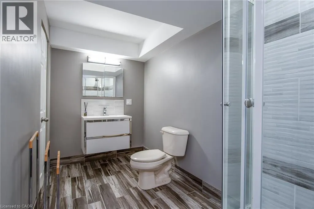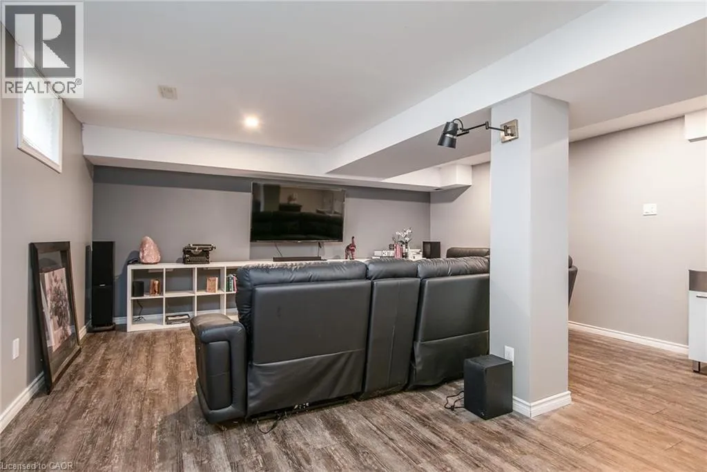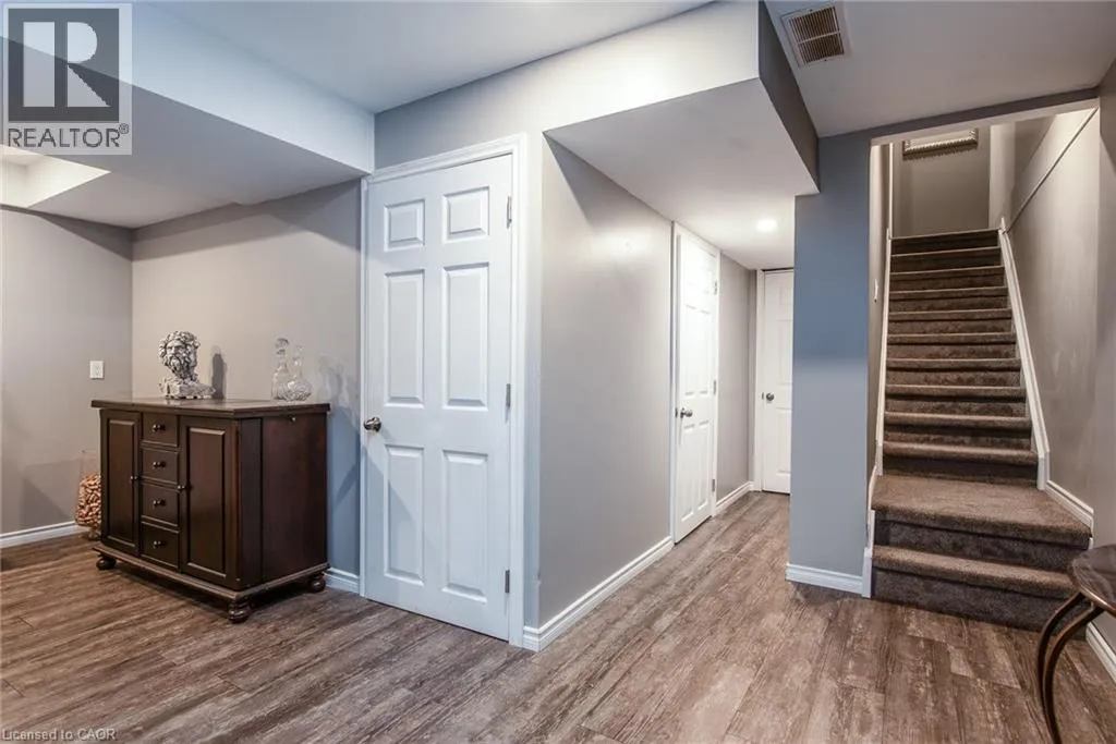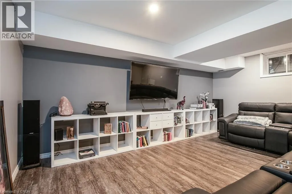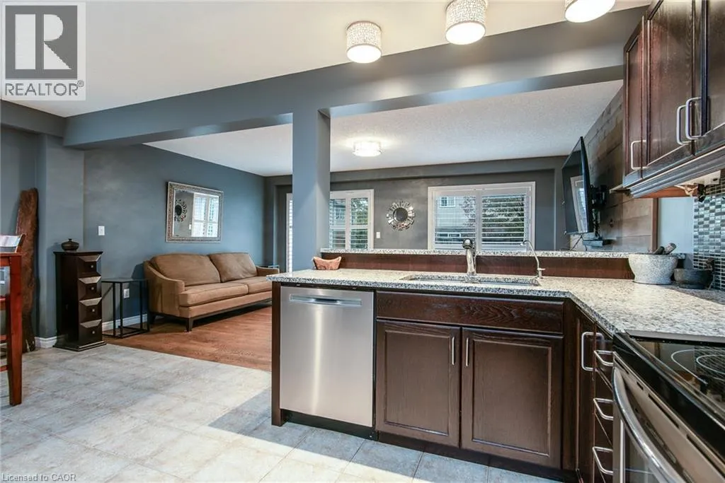 Hamilton Rd to Captain McCallum Dr Curb appeal plus!! Welcome to this well cared for home at 105 Captain McCallum Drive in New Hamburg. Situated in a family friendly neighborhoods, this home offers a perfect blend of comfort and functionality. The open concept main floor boasts a cozy living room with a wall feature and electric fireplace, sliders to a deck make it ideal for relaxing or hosting guests. The dining area flows effortlessly into the oversized kitchen, making meal preparation and gatherings a breeze. Kitchen highlights include granite counters, updated backsplash and stainless appliances. For added convenience, the main floor also offers a powder room with pocket door and a standout updated oversized laundry room with custom shelves, storage and front-loading washer and dryer. California shutters can be found throughout the home. Upstairs you'll find 3 spacious bedrooms, including a massive primary, featuring vaulted ceiling, another feature wall with electric fireplace, ensuite and walk-in closet. The finished basement adds more living space, rec room or theatre room if you prefer, luxury vinyl plank flooring, stylish bar area, 3-piece bath and a generous storage room. Outside, enjoy the large deck, perfect for entertaining, complete with a BBQ gas line and fully fenced backyard. Whether you're enjoying a quiet evening on the back deck or are part of a family of any size, you'll love the convenience of being located with easy access to schools, parks, and shopping. Don't miss the opportunity to own this perfect place to call home! (id:27476)
