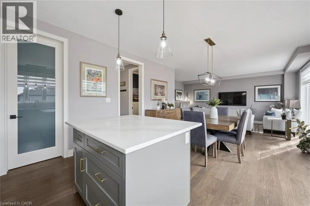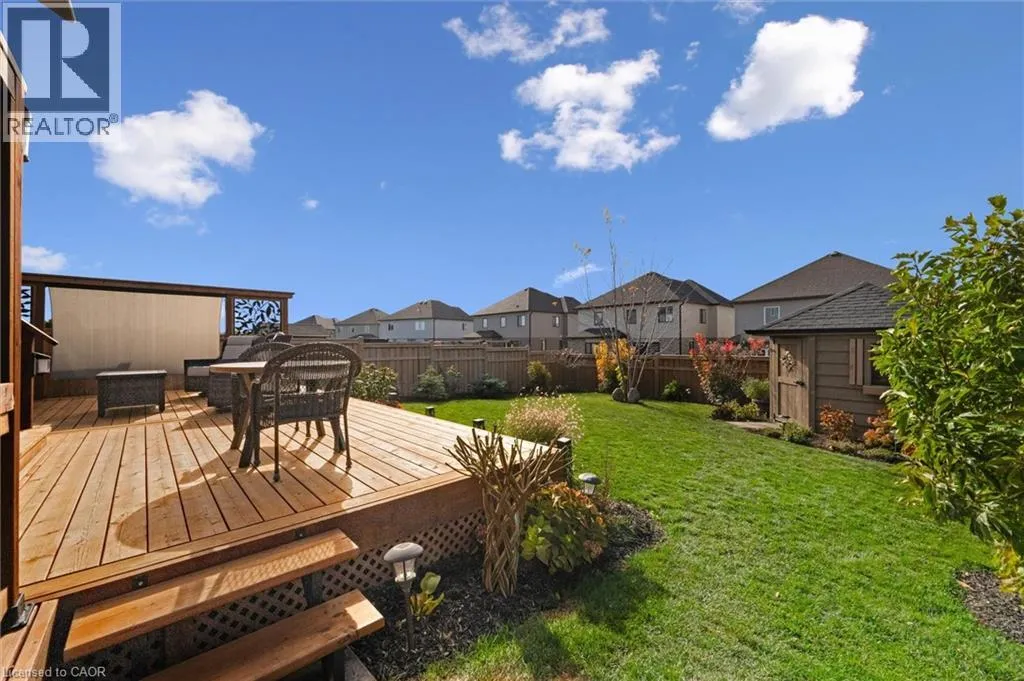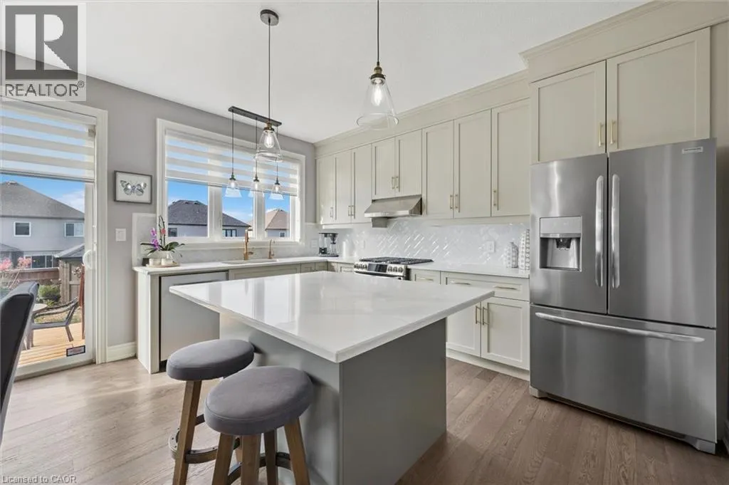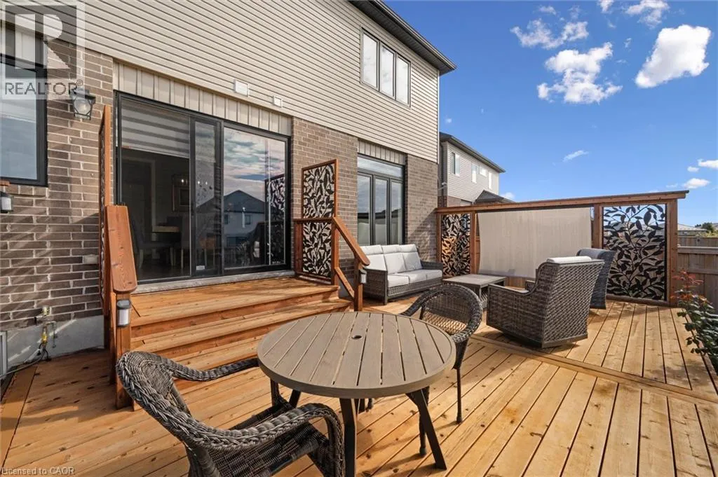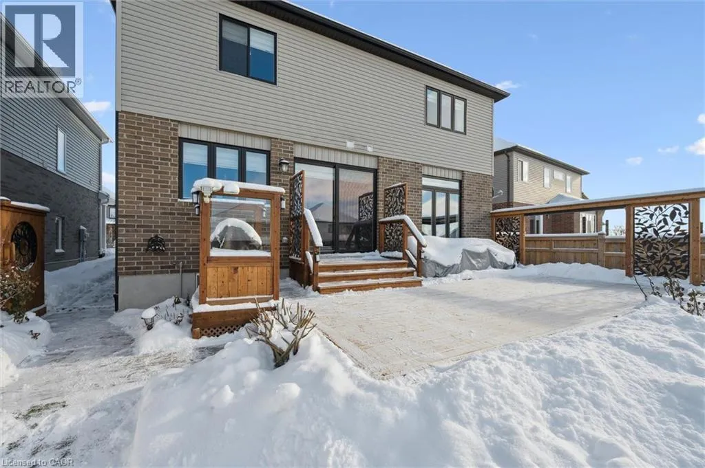 Hostetler to Spahr to Theodore Schuler to Marty With Christmas behind us and a new year ahead, now is the perfect time to turn your attention to finding the right home! This stunning Capital Home delivers style, efficiency, and comfort from day one. Ideally located just off Theodore Schuler Blvd in the heart of New Hamburg, this Energy Star® certified home is a highly desirable option for both those new to the area and families ready to upgrade their space without leaving the community they love. The open-concept layout is enhanced by NUMEROUS UPGRADES, including engineered hardwood and ceramic tile FLOORING, oversized interior DOORS (several featuring privacy glass), upgraded KITCHEN cabinetry, hardware, backsplash, quartz countertops, pot-and-pan drawers, and new pantry shelving, mudroom closet, updated BATHROOMS with Kohler toilets, a new powder room vanity, new main bathroom vanity, and updated bathroom mirrors, UPGRADED designer lighting, and custom silhouette blinds. Additional features include two extra basement windows, a basement bathroom rough-in, reverse osmosis water treatment, and a water softener. Smart-home conveniences include an EcoBee thermostat and Cat-6 wiring in the bedrooms. Outside, the curb appeal truly stands out with UPGRADED black-trimmed windows, eaves, and exterior trim, insulated garage doors, and an 8x8 patio door leading to a cedar two-level DECK complete with BBQ station and privacy fencing. The FULLY FENCED offers a wood SHED, a new side WALKWAY, and beautiful front and back landscaping with several young trees that will quickly add privacy. From arriving home to its inviting exterior, to enjoying sun-filled living spaces, to unwinding in the ensuite soaker tub, this move-in-ready home offers the ideal blend of sophistication, functionality, and warmth; an exceptional opportunity to step into your next chapter without leaving the charm of New Hamburg. (id:27476)