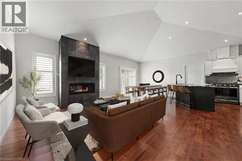 TOWNSHIP RD 12 TO STONECROFT WAY, THEN DEVONSHIRE DRIVE Welcome to 152 Devonshire Dr, a beautifully updated home in the coveted community of Stonecroft. This property is one of only a handful of lots offering premium greenspace views-an exceptionally rare find. W/ no rear neighbors & landscaped grounds it provides unmatched privacy & a spectacular setting. An oversized composite deck, perennial gardens, & sweeping views, all w/ southern exposure fills the yard & home w/ natural light. This strikingly beautiful move-in ready home (no renos required!) features new glass panel railings w/ nearly 3,000 SF of finished living space enhanced by approx. $70K in recent updates. A grand great rm w/ vaulted ceilings is anchored by a porcelain-surround gas fireplace & wall of windows framing private greenspace. The kitchen boasts new granite counters and appliances & a lrg centre island, under-cabinet lighting, & integrated dining area w/ walkout to the deck. The den/home office has built-in cabinetry, hickory flrs through the main lvl, new flring in the den, 2nd bath & primary suite. Freshly painted, w/ pot lights, California shutters, & designer light fixtures throughout. The primary suite offers backyard views, dual closets, & a spa-like ensuite w/ barn door, tiled glass shower, & oversized bubbler tub. A 2nd bdrm with vaulted ceiling, 4-pc bath, & laundry/mudrm w/ 2-car garage & yard access completes the main lvl. The finished lower lvl features a spacious rec rm w/ gas fireplace, wet bar w/ full-size fridge+freezer, workshop/hobby rm, 3rd bdrm, & 3-pc bath-ideal for entertaining/guests. Lrg capacity storage rooms offer built-in shelving. Furnace & A/C (2023), roof (2019). At Stonecroft, the lifestyle is as appealing as the home. Residents enjoy an 18,000 SF rec centre w/ indoor pool, fitness, party & games rms, billiards, library, media lounge, tennis courts, & 5 km of walking trails. Stonecroft is Waterloo Regionâs premier destination for adult living, combining modern homes, a vibrant community, & a beautiful natural setting. (id:27476)