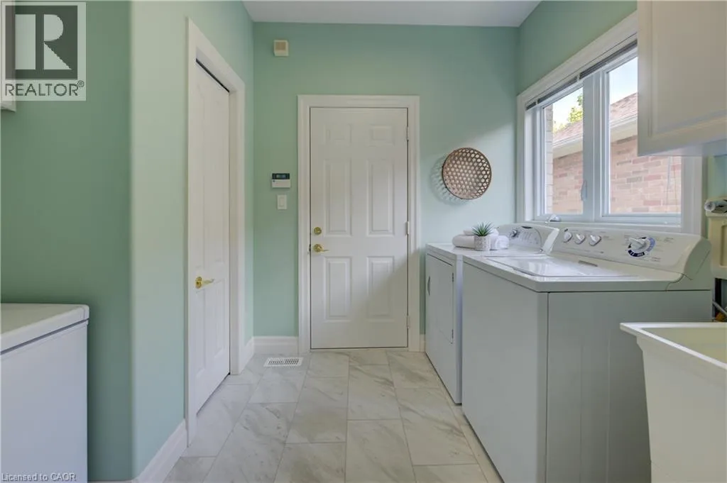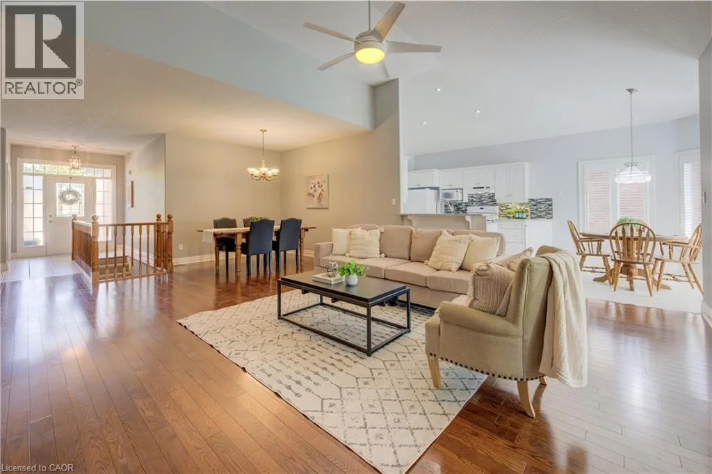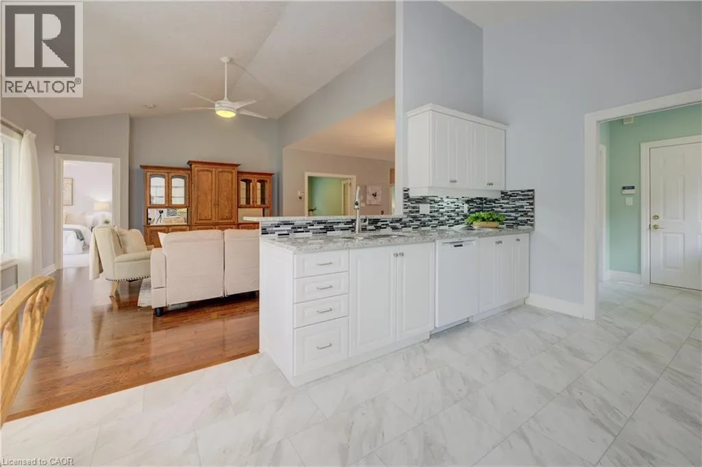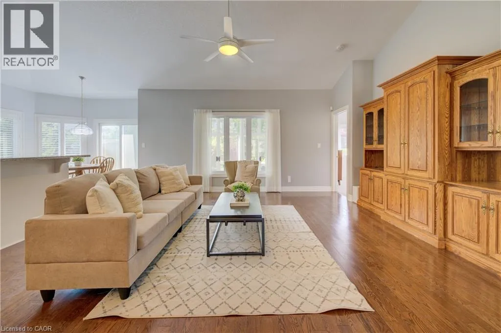 Haysville Road / Stonecroft Way / Devonshire Drive Welcome to 59 Devonshire Driveânow offered at an exceptional value of $914,900. This lovingly maintained Waterford Model features two bedrooms plus a den, 2.5 bathrooms, and over 2,700 sq. ft. of finished living space designed for comfort and ease. The open-concept main floor features hardwood flooring, a bright kitchen with stone countertops, new flooring, tile backsplash, peninsula seating, and California shutters. The spacious primary suite includes his-and-hers walk-in closets and an ensuite with double sinks and a low-barrier walk-in shower. A bright second bedroom, 4-piece bath, den with French doors, and main floor laundry with extra storage complete this level. Relax in the three-season sunroom overlooking lush greenery or entertain in the finished lower level with two large multipurpose rooms, a 2-piece bath, and abundant storage. Recent upgrades for peace of mind include roof, furnace, A/C, and attic insulation. Outside, enjoy an upgraded interlocking brick driveway, double garage, and serene surroundings. This is a rare opportunity to secure a move-in-ready home at an improved priceâcome experience the lifestyle Stonecroft is known for. Stonecroftâs 18,000 sq. ft. rec center offers an indoor pool, fitness room, games/media rooms, library, party room, billiards, tennis courts, and 5 km of walking trails. (id:27476)