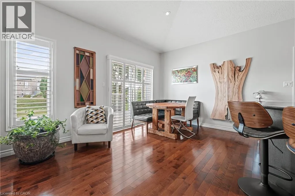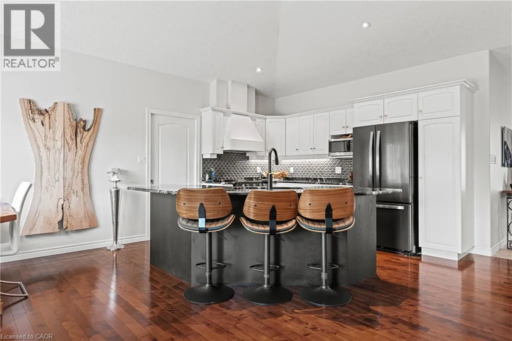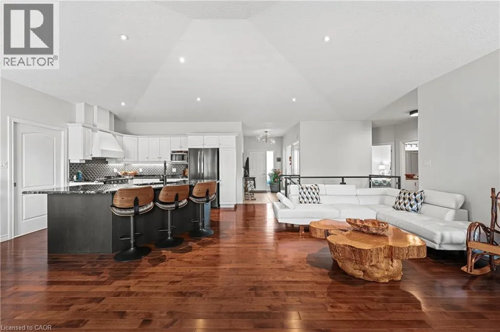 TOWNSHIP RD 12 TO STONECROFT WAY, THEN DEVONSHIRE DRIVE Welcome to 152 Devonshire Dr, a beautifully updated bungalow in the highly coveted Stonecroft community, situated on one of only a handful of lots offering premium greenspace views-an exceptionally rare find. This stunning, completely move-in ready home features $70K in recent updates (no renos required!) & offers 3 bdrms, 3 full baths, w/ nearly 3,000 SF of finished living space. Step inside & youâre greeted by a bright, open-concept layout. The grand great rm w/ vaulted ceilings is anchored by a porcelain-surround gas fireplace & a wall of windows framing private greenspace views. The kitchen boasts new granite counters & appliances, a lrg centre island, under-cabinet lighting, & an integrated dining area w/ walkout to the deck. The den/office features built-in cabinetry. Hickory flrs run through the main lvl, w/ new flring in the den, 2nd bath & primary suite. Newly painted w/ pot lights, designer light fixtures, glass panel interior railings & California shutters. The primary suite offers backyard views, dual closets & a spa-like ensuite w/ barn door, shower & oversized bubbler tub. A 2nd bdrm w/ vaulted ceiling, 4-pc bath & laundry/mudrm w/ access to the 2-car garage & yard completes the main lvl. The finished lower lvl features a spacious rec rm w/ gas fireplace, wet bar w/ full-size fridge+freezer, workshop/hobby rm, 3rd bdrm & 3-pc bath-ideal for entertaining or guests. Lrg storage rms offer built-in shelving. Furnace & A/C ('23), roof ('19). An oversized composite deck, perennial gardens & sweeping southern exposure fill the home w/ natural light. W/ no rear neighbors & beautifully landscaped grounds, this home offers unmatched privacy & a spectacular setting. Stonecroft is one of Waterloo Regionâs most sought-after communities, offering resort-inspired amenities including: indoor pool, fitness facilities, party & games rms, billiards, library, media lounge, tennis & pickleball courts, 5 km of walking trails & more, all w/in a vibrant, connected community! (id:27476)