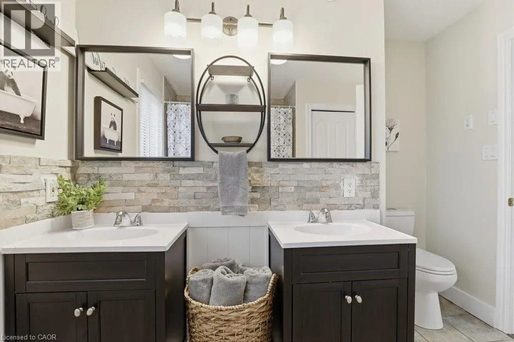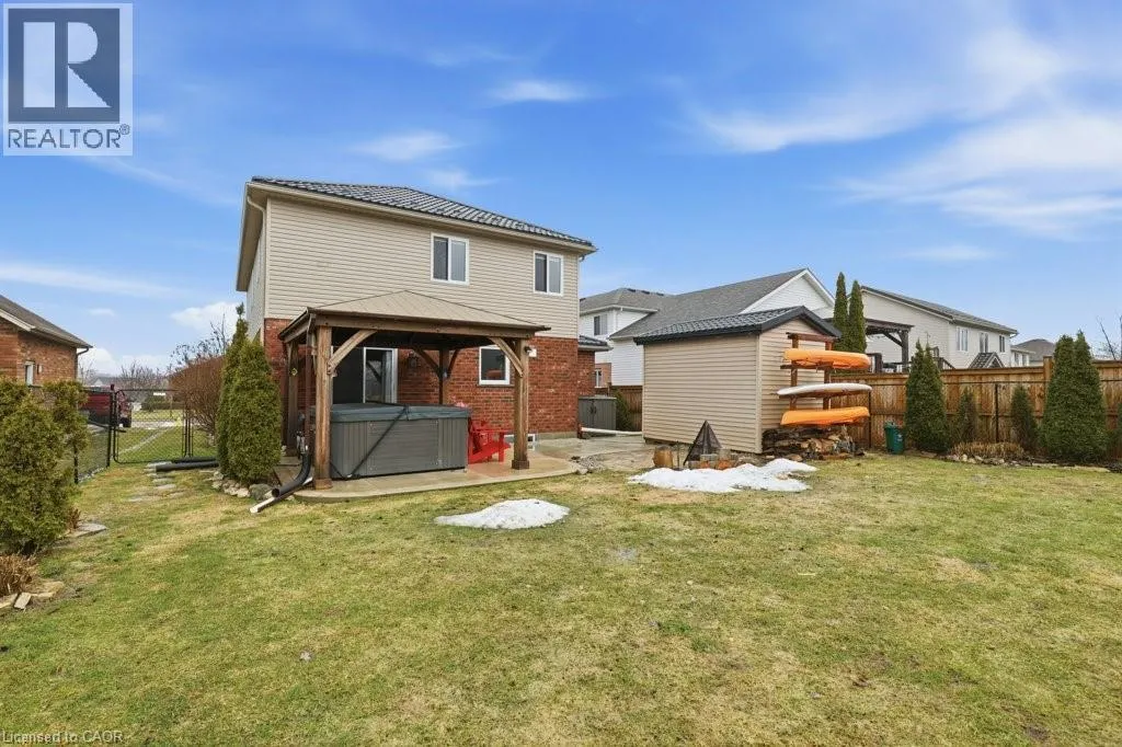 Waterloo Street to Laschinger Blvd Prepare to fall in love with this beautiful family-friendly home! This welcoming 4 bedroom two-storey boasts a perfect location on highly-sought Laschinger Boulevard, and backs directly onto the soccer fields and school yard beyond. The main level features a bright living room and an impressively updated kitchen with quartz countertops, stainless steel appliances, and breakfast bar. The dining area has a walkout to the fully fenced backyard with patio, gazebo and hot tub! There is also laundry room, powder room, and inside entry from the double car garage on this level. Upstairs, youâll find four spacious bedrooms, including the large primary with walk-in closet and ensuite privilege to the 5pc hallway bath. The basement is finished and perfect for family hangouts or overnight guests, with a family room, a den, a workout area, a 3pc bath, and plenty of storage. The backyard is gorgeous! Youâll love the concrete patio with gazebo and Arctic Spa hot tub. There is plenty of room to play, beautiful gardens, storage shed, and even a gate into the field and school yard beyond. Many recent updates including the steel roof, kitchen, furnace, A/C, gazebo, hot tub, flooring, and more! Families wait years for the right home to pop up on this street, donât miss this one! Call your Realtor today to book a private appointment before itâs gone! (id:27476)