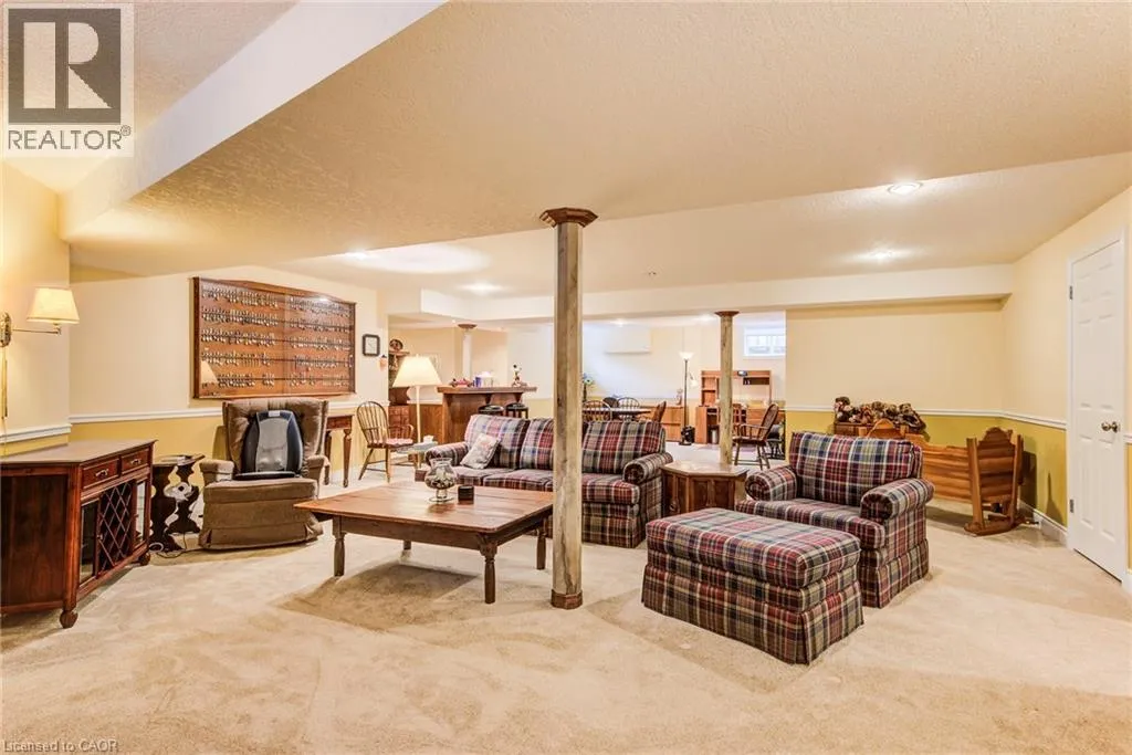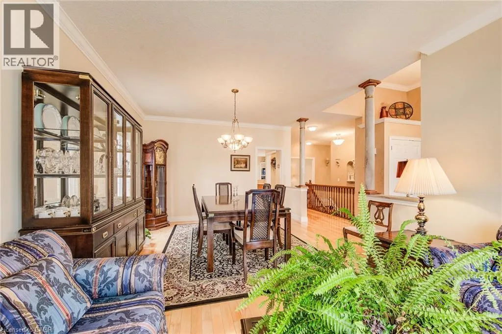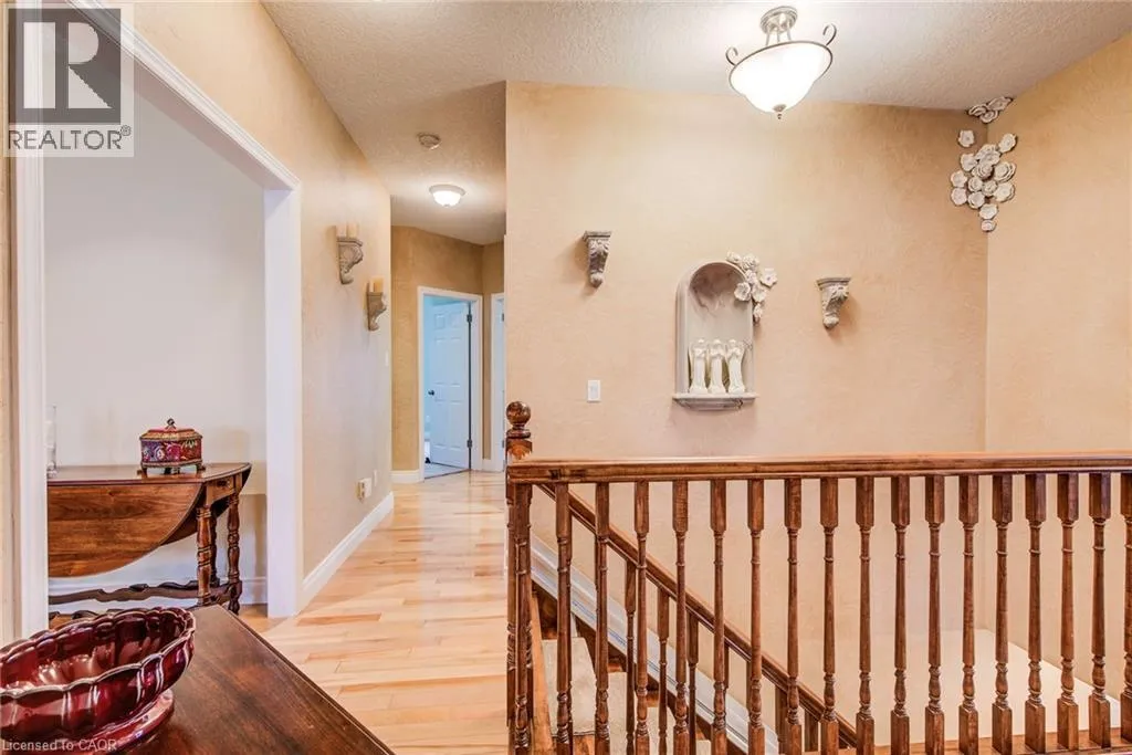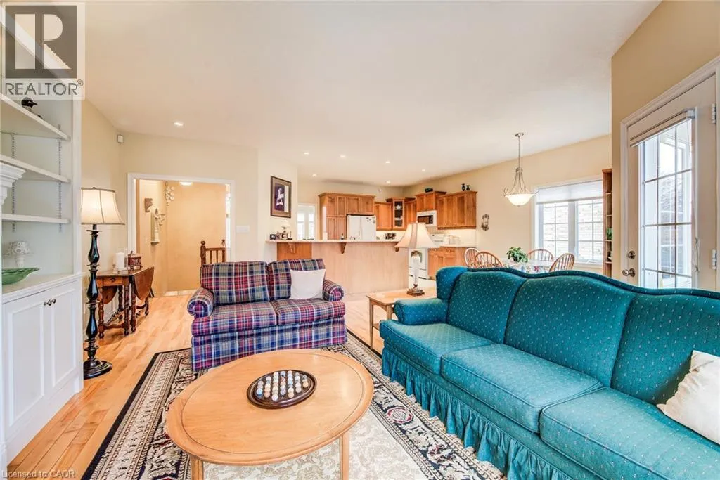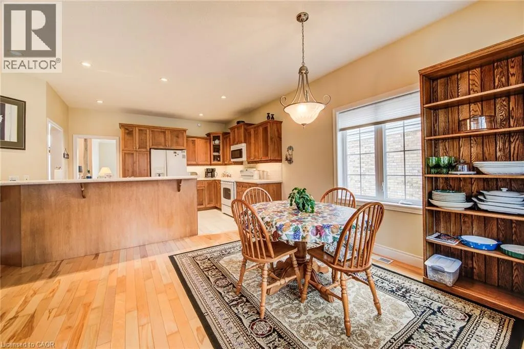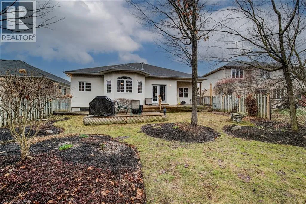 Take Waterloo Steet to Victoria Street to Laschinger Curb appeal at its finest in this custom-built 3+1 bedroom, 3 bath bungalow with double-car garage, ideally situated on a desirable tree-lined street full of character. The striking stucco exterior makes a wonderful first impression, while inside, bright maple hardwood flooring flows through the living and dining rooms and into the kitchen, dinette, and great room. Designed with both comfort and entertaining in mind, the open-concept kitchen overlooks the dinette and family room, where a cozy gas fireplace and an abundance of windows provide beautiful views of the private, fully fenced, treed backyard. Sliding doors from the dinette lead to two decks, with a covered area creating the perfect setting for outdoor enjoyment. The spacious primary bedroom is bright and inviting, complete with a walk-in closet and 4-piece ensuite. Two additional bedrooms, a 4-piece main bath with large linen closet, and main floor laundry add to the homeâs functionality. The finished basement extends the living space with a large rec room featuring a gas fireplace and bar, an additional bedroom, 3-piece bath, and cold cellar. Additional updates include a new furnace and A/C in 2024, plus a one-year-old water softener. Located in the welcoming full-service town of New Hamburg, close to the highway, trails, shopping, and restaurants, this is truly a must-see home. (id:27476)