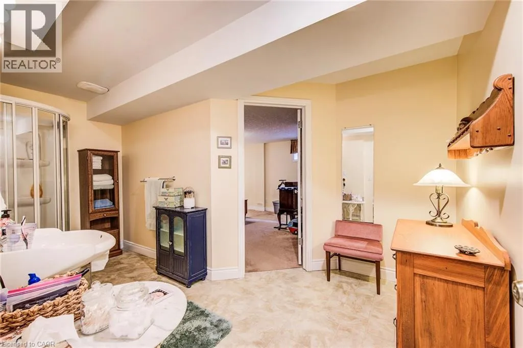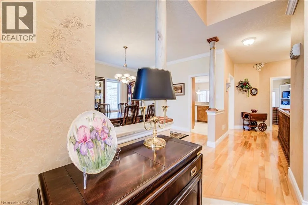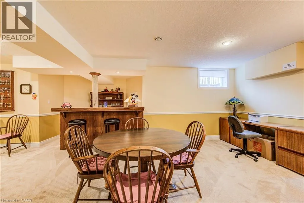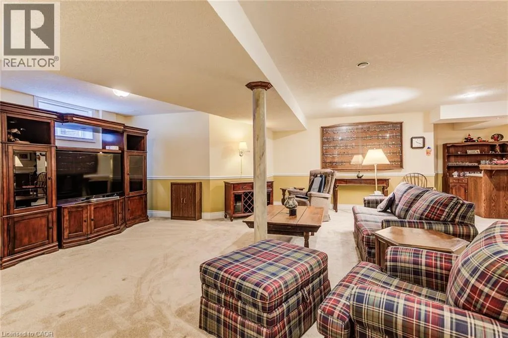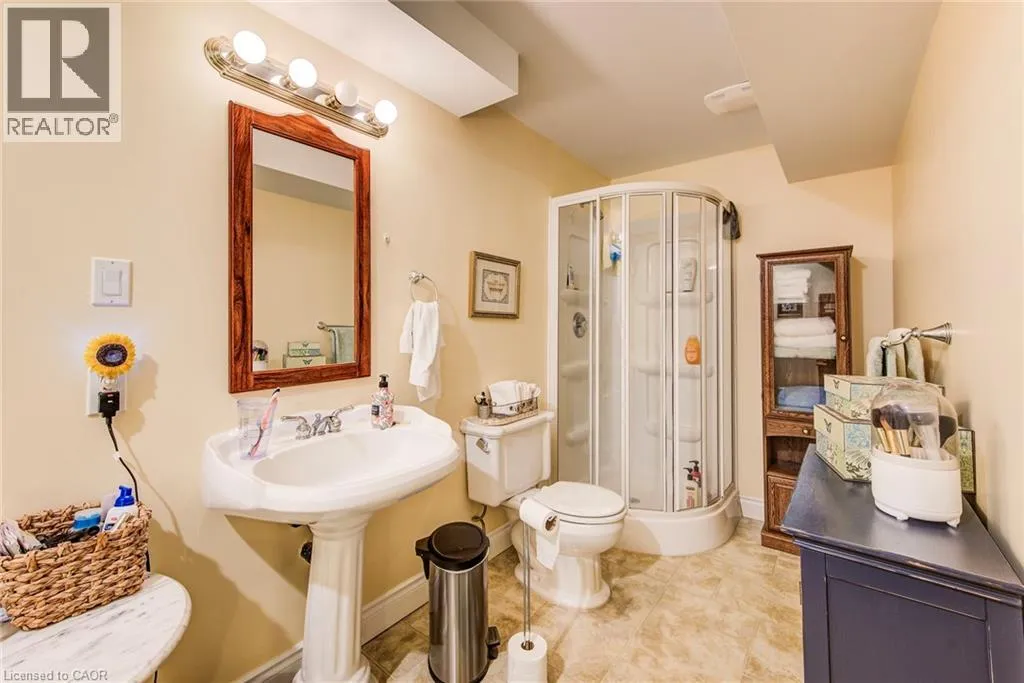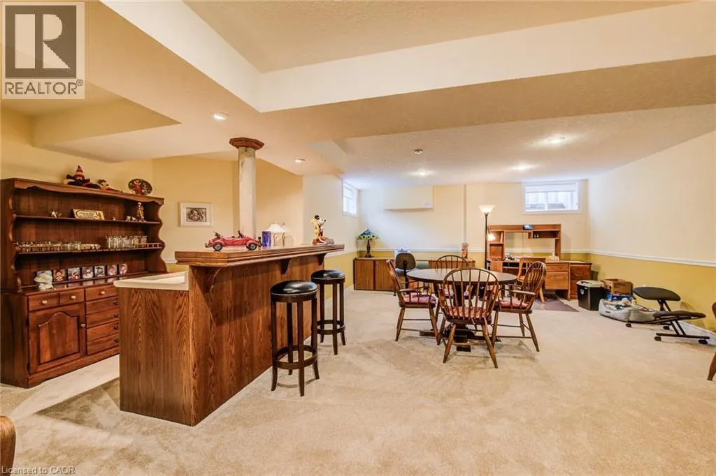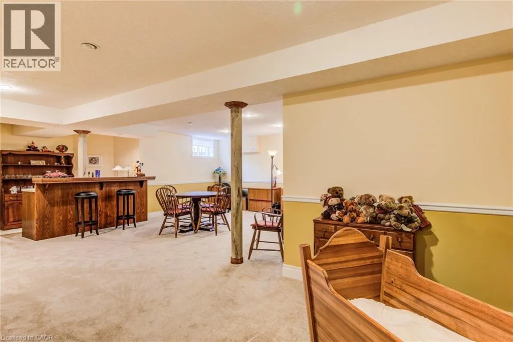 Take Waterloo Steet to Victoria Street to Laschinger Curb appeal at its finest in this custom-built 3+1 bedroom, 3 bath bungalow with double-car garage, ideally situated on a desirable tree-lined street full of character. The striking stucco exterior makes a wonderful first impression, while inside, bright maple hardwood flooring flows through the living and dining rooms and into the kitchen, dinette, and great room. Designed with both comfort and entertaining in mind, the open-concept kitchen overlooks the dinette and family room, where a cozy gas fireplace and an abundance of windows provide beautiful views of the private, fully fenced, treed backyard. Sliding doors from the dinette lead to two decks, with a covered area creating the perfect setting for outdoor enjoyment. The spacious primary bedroom is bright and inviting, complete with a walk-in closet and 4-piece ensuite. Two additional bedrooms, a 4-piece main bath with large linen closet, and main floor laundry add to the homeâs functionality. The finished basement extends the living space with a large rec room featuring a gas fireplace and bar, an additional bedroom, 3-piece bath, and cold cellar. Additional updates include a new furnace and A/C in 2024, plus a one-year-old water softener. Located in the welcoming full-service town of New Hamburg, close to the highway, trails, shopping, and restaurants, this is truly a must-see home. (id:27476)
