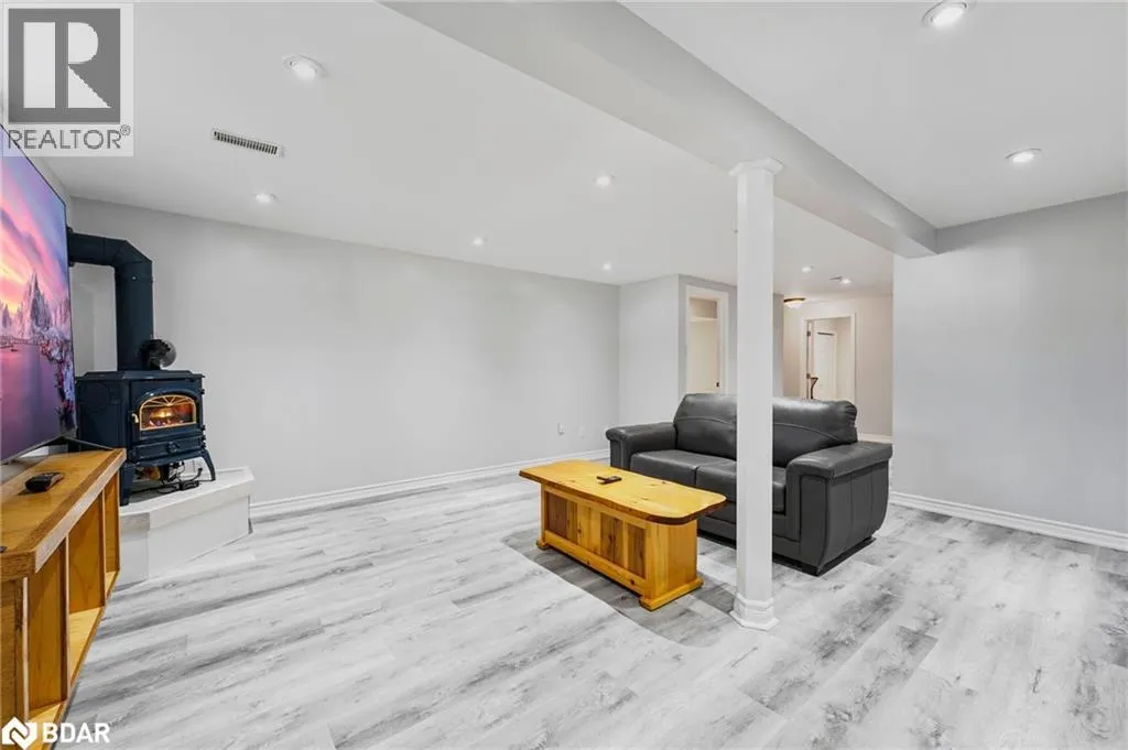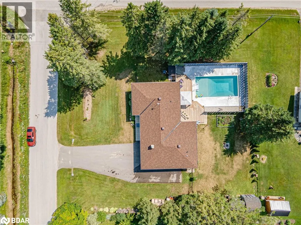 County Road 9 to Lamers Road to Lamers Crescent INCREDIBLE VALUE!! Welcome to 25 Lamers Cres, a stunning bungalow in New Lowell, offering bright, sun-filled living space with an open-concept, carpet-free design. The modern eat-in kitchen features a breakfast bar and two walkouts to the deck, perfect for indoor-outdoor living. A cozy gas fireplace warms the spacious living room, while main-level laundry adds convenience. The main floor boasts three bedrooms, including a primary suite, and two full bathrooms. Notably, the washer, along with the shower and sink in the second main-floor bathroom, are connected to a separate gray water tank. The finished basement impresses with a massive rec room with a gas fireplace, two extra bedrooms, a full bathroom, and ample storage. Outside, enjoy a large private lot with an inground pool - with new pool heater, oversized 24ft x 15ft single garage, deck, gas BBQ, and beautifully landscaped yard with mature trees. Located in a great family-friendly neighborhood, just minutes from Stayner, Collingwood, and Angus. (id:27476)