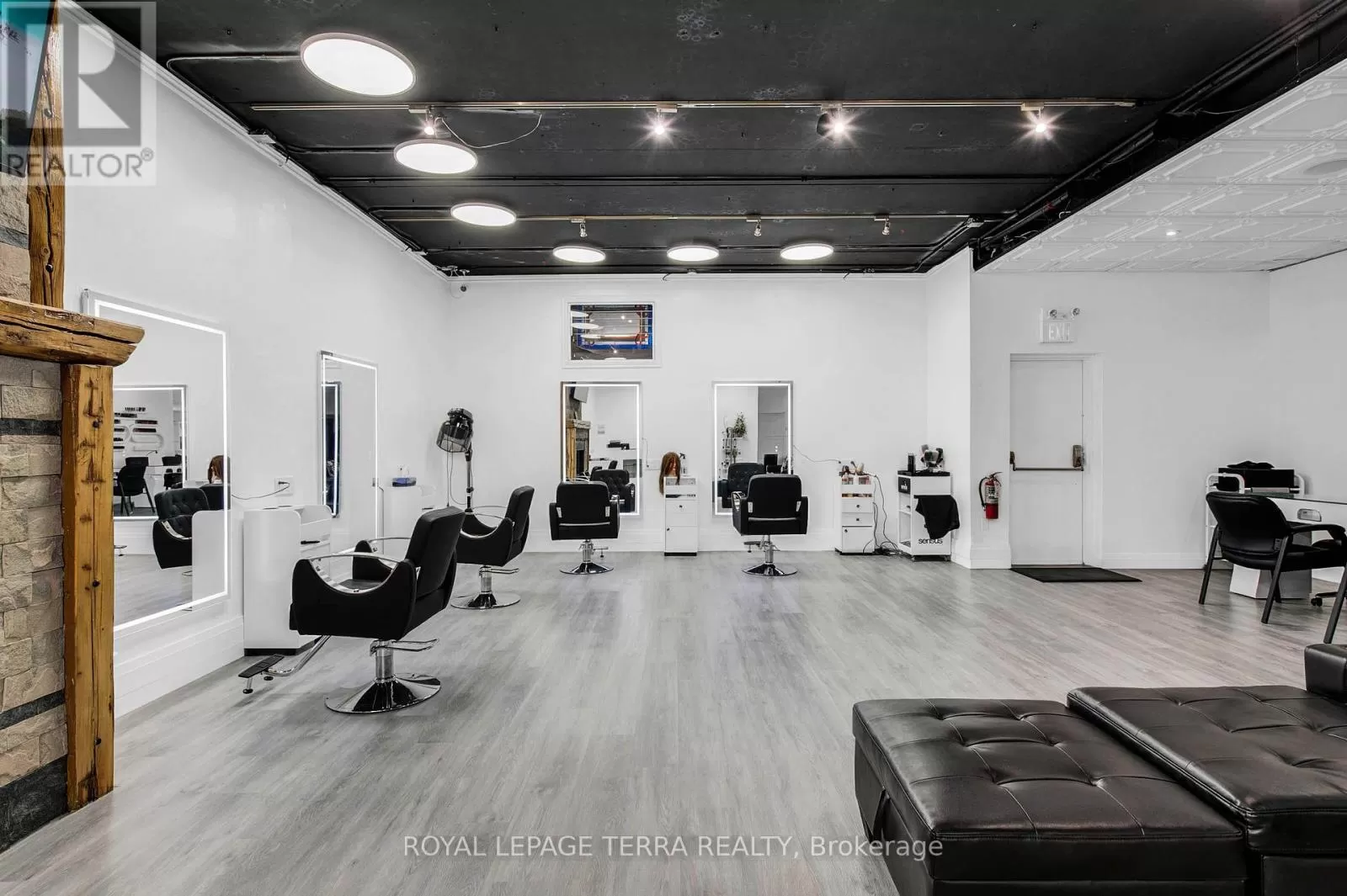 Victoria St E/Industrial Pkwy Rare Restaurant-Ready Space in Downtown Alliston! Both upper and lower levels of this 4000+ sqft commercial property are fully equipped with commercial kitchens and hoods, offering a turnkey setup for a restaurant, bar & grill, or lounge. Includes a patio for outdoor dining and sits on a high-visibility corner lot with strong foot and vehicle traffic. Flexible zoning allows for a wide range of uses. Currently operating as a barbershop and beauty salon, but easily convertible to a vibrant two-level restaurant or entertainment venue. Don't miss this unique opportunity! Don't miss this rare opportunity to own a versatile and high-potential property in the heart of Alliston! Please do not go direct and talk to any employees. (id:27476)