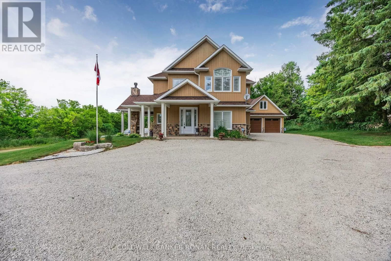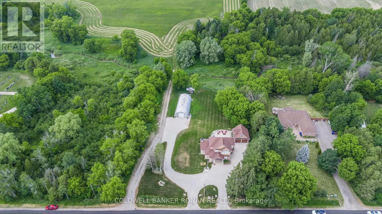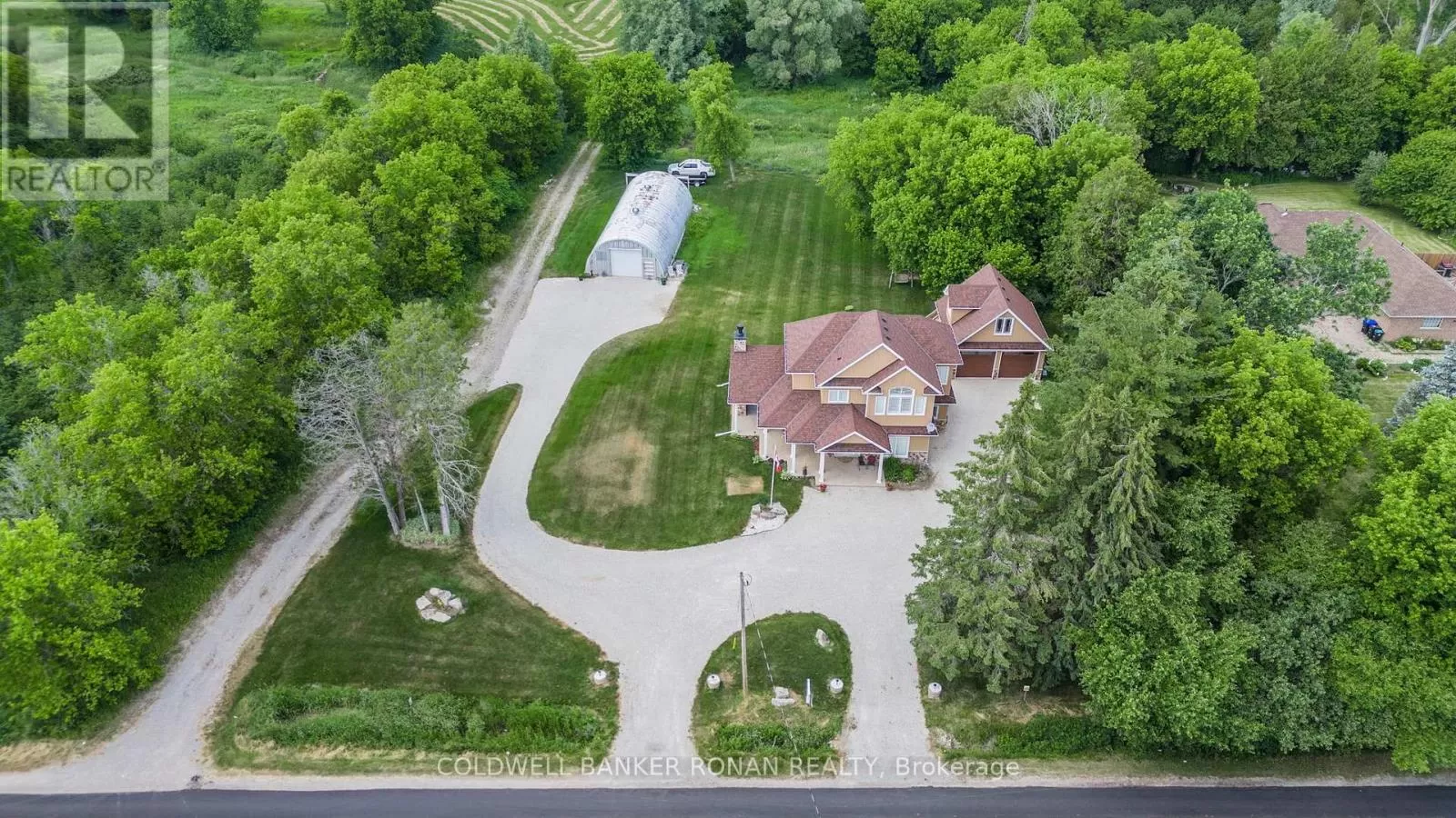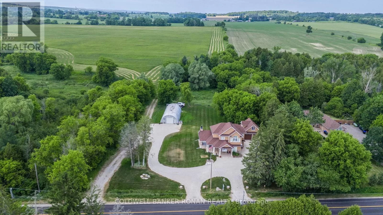 10th Sideroad - West on 4th Line Experience the best of country living just minutes from town! Set on a picturesque 2-acre lot, this custom-built two-storey home (2020) combines a functional layout with tasteful, modern finishes. Featuring 3 bedrooms and 3 bathrooms, the home is thoughtfully designed for comfort and everyday living. Enjoy peaceful outdoor living on the expansive back patio, complete with a covered seating area and wood-burning fireplace ideal for relaxing or entertaining year-round. The beautifully maintained property is surrounded by mature greenery, offering a tranquil and private setting. A 25' x 60' Quonset hut with a newly poured concrete floor provides excellent storage for tools, equipment, or recreational vehicles. The oversized detached two-car garage includes a spacious loft, offering even more storage or potential workspace. Located just a short walk or drive to the shops, schools, and amenities of Tottenham this property offers the perfect blend of rural charm and urban convenience. (id:27476)