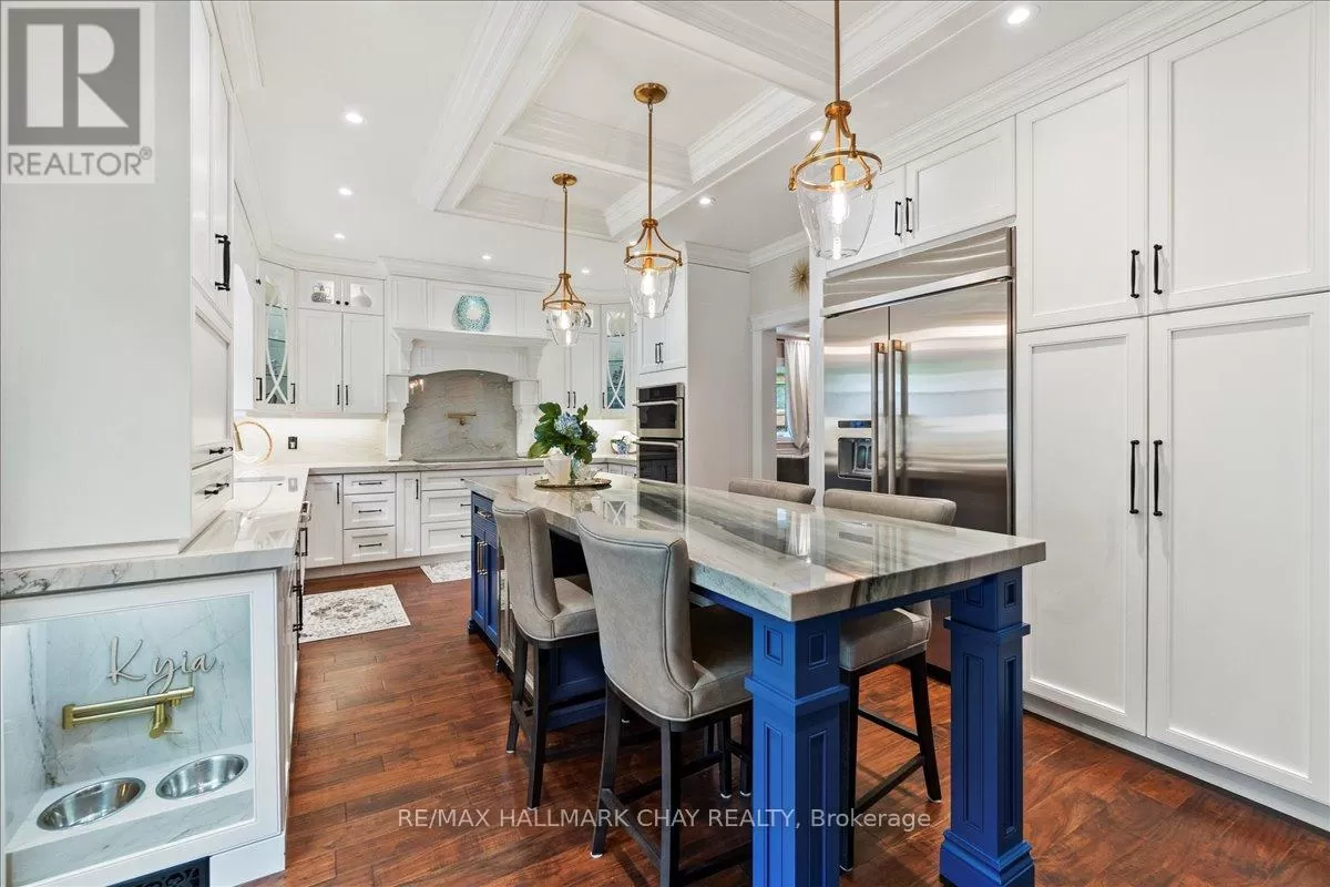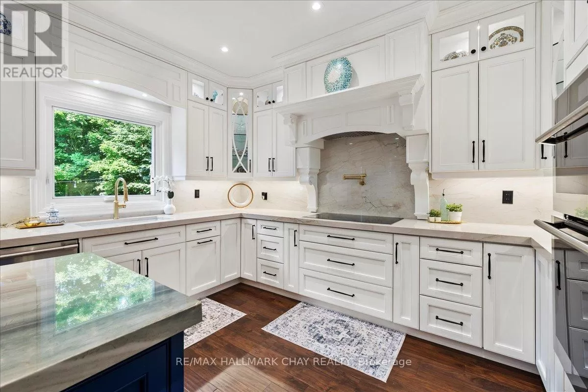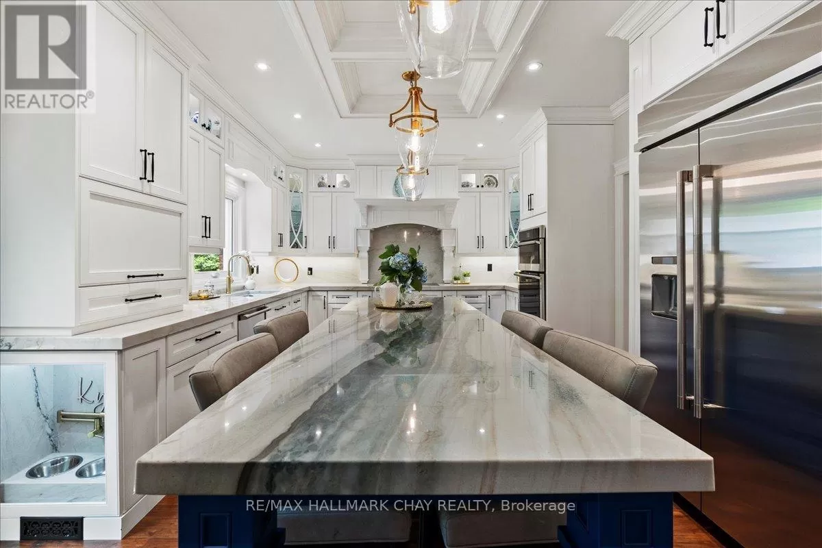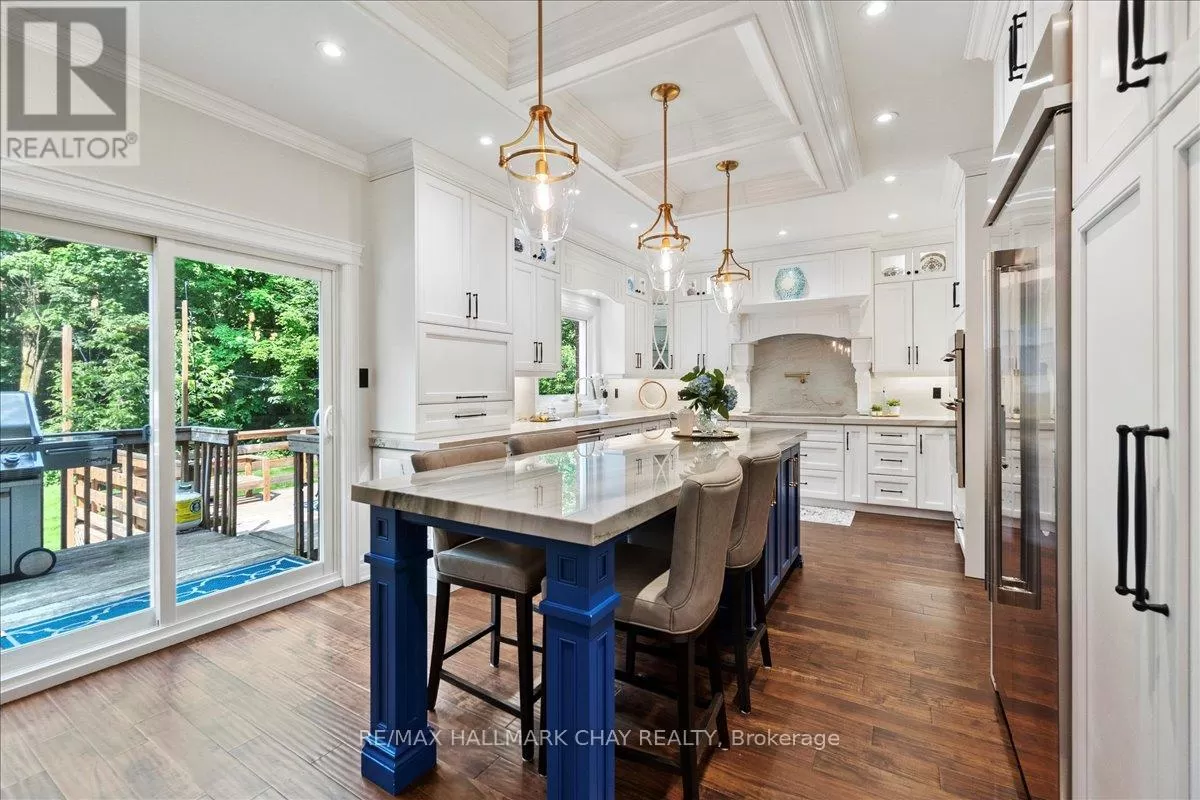 Cross Streets: Bowerman/Previn. ** Directions: KING TO BOWERMAN TO PREVING. Its Fall and time to Fall into a Fresh Start at 34 Previn Court .This newly priced, one-of-a-kind home is the perfect place to embrace new beginnings, ideal for multigenerational living and set in one of Alliston's most desirable streets. Tucked away at the end of a quiet cul-de-sac, this showstopping home sits on a nearly half-acre pie-shaped ravine lot, offering rare privacy and the feel of a wooded retreat, yet its just minutes from top schools, parks, shopping, dining, and commuter routes.With over $200K in renovations and more than 4,000 sq ft of finished living space, theres room for the whole family, and then some. The full walkout basement features a second kitchen, bedroom, and bathroom, making it perfect for in-laws or extended family. The redesigned exterior boasts fresh, modern curb appeal with many new windows and doors, elegant refacing, ambient soffit lighting, and updated garage doors. A 3-car garage plus parking for 6 ensures comfort and convenience for large families and guests alike.Step inside to discover refined finishes throughout, wainscoting, coffered ceilings, crown moulding, new main-floor flooring, pot lights, and a beautifully refinished staircase. The gourmet kitchen shines with rare Brazilian quartzite counters and flows into formal living and dining spaces built for everyday living and elegant entertaining. A main-floor office adds flexibility as a workspace or extra bedroom. Upstairs, the spacious layout offers the potential to add a 5th bedroom, allowing for up to 7 bedrooms in total.The primary suite is a serene escape with a spa-like ensuite, and the backyard is a peaceful haven with expansive decks overlooking the tranquil ravine.This fall, make 34 Previn Court your new beginning. Homes like this don't come around often don't miss your chance. (id:27476)