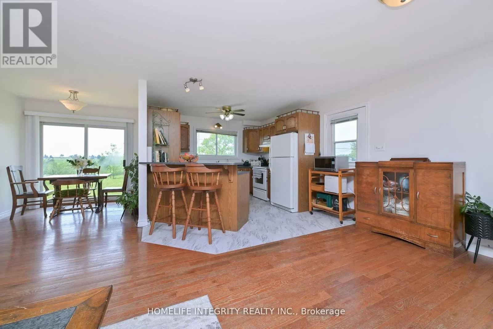 Cross Streets: 4th Line and Town Line. ** Directions: North on Tottenham Rd, West on Fourth Line. The best of both worlds with this country Bungalow set on lovely rolling hills yet only 2 mins drive into town. It does no harm to be across the road from the prestigious Woodington Lakes Golf Course either! The 1 acre mature lot of fruit trees, grapevines and berries, has great views in every direction, gorgeous sunrise & sunsets can be enjoyed relaxing on the upper level balcony or multiple walkouts throughout the house. Built in 1990, the always desirable, raised bungalow design is all open concept with windows everywhere for a lovely light and bright interior on both the upper and lower levels . Inside we have hardwood floors in the combined living dining and kitchen areas and Berber in the bedrooms with the master bedroom having a walk in closet . The fully finished basement again open concept and the added bonus of 9 ft ceilings and large above grade windows feels spacious and welcoming. The lower level having a good sized eat In kitchen, living Room, 4th bedroom and 3 Pc bathroom . Bell fiber is being laid to the roadside . The water system includes a a UV and reverse osmosis set up with a new water softener . Town is the family friendly community of Tottenham with all your needs for schools, shops, parks, eating out and recreation. (id:27476)