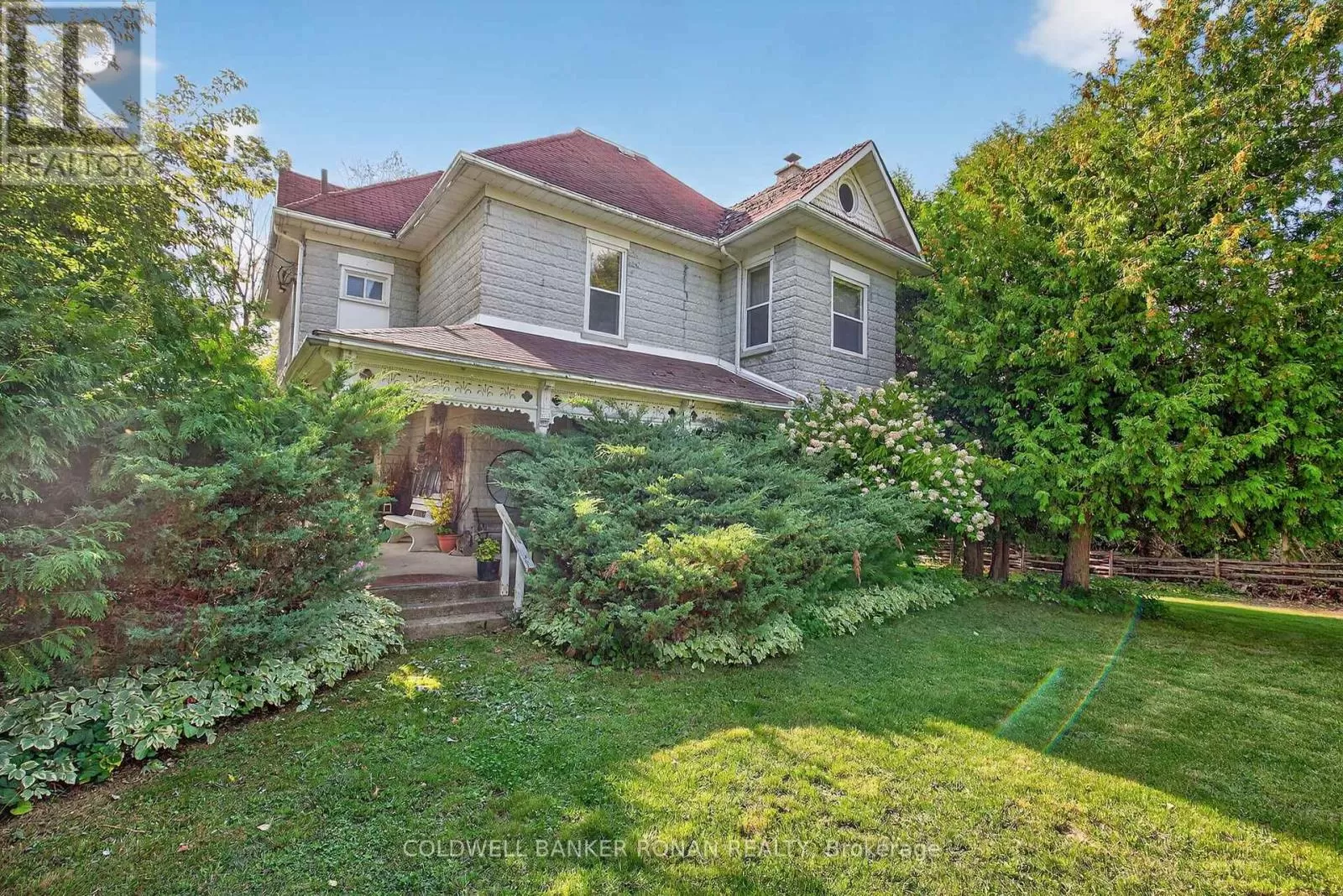 17th between 2nd & 3rd Line Nestled among rolling farmland, this picturesque 1.17-acre property offers a storybook setting full of charm and character. This Century home is ready to be someone's dream restoration & features a welcoming front veranda, flagstone walkways, and a covered front porch, a spacious back deck and detached garage/workshop. Surrounded by mature trees and lush perennial gardens, the property provides a tranquil, park-like atmosphere. A separate back entrance to the office area with floor to ceiling window with west views & stunning sunsets also makes it a great flexible workspace. Offering approximately 2,600 sq. ft. of living space, the home boasts large principal rooms, Primary Bedroom w/Walk-in Closet & 5pc Ensuite Bath, Large Country Kitchen w/Walk-in Pantry, Walk-in Closet/Mud Room w/entrance to back deck, original stained-glass windows. The third floor features a spacious games room/attic that could easily serve as a games room or creative retreat with an oversized 5 paned window with south facing views. The detached garage (23.6 x 21.10) includes an attached workshop (19.10 x 43.3) with a separate driveway/parking and oversized garage door ideal for a home-based business. This property is fully fenced & gated. Conveniently located just north of Hwy 9 with quick access to Highways 27 and 400, this unique property combines country living with commuter convenience. (id:27476)