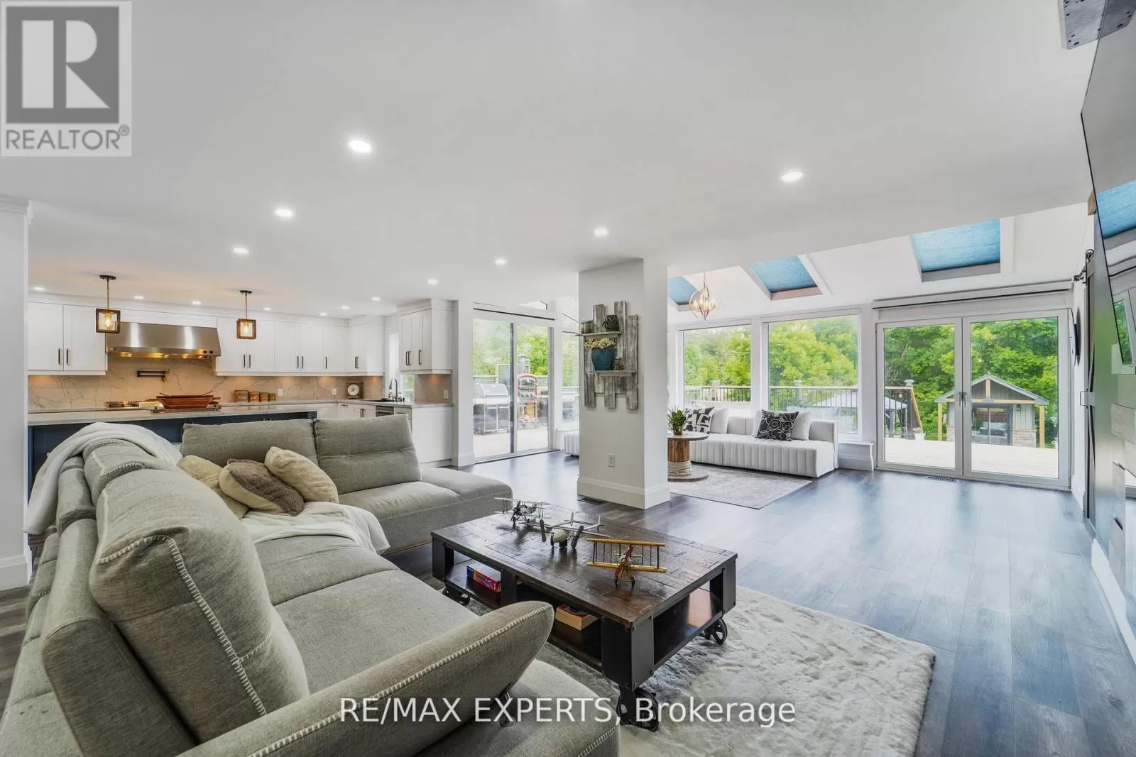 13th Line and Adjala Tecumseth Townline Welcome to this stunning 5 bed, 3.5 bath luxury oasis in Alliston, showcasing over 4,200 sq ft of beautifully designed living space. From the newly paved driveway and elegant interlocking stone steps to the impeccable interior finishes, every detail of this home exudes quality. Inside, you're welcomed by natural light, striking feature walls, pot lights, and skylights throughout. The dining room includes custom built-ins and large sliding doors that open to afront deck. The heart of the home is the sun-filled custom kitchen featuring a large island, quartz countertops and backsplash, high-end appliances, oversized double-door fridge/freezer,6-burner range with griddle and 1.5 oven, pot filler, industrial LED range hood with food warmer, pullout spice racks, built-in pantry, and a coffee bar with wine fridge and sink. The open-concept layout flows seamlessly. The family room boasts a beautiful feature wall and electric fireplace, while the living room includes large windows with remote blinds. Walk out to an oversized wraparound deck with solar floor and railing lighting, double propane BBQ hookups, and generator hookup. Step down to a fully interlocked backyard featuring a pergola, stone firepit, stone garden bed, and a finished shed/office. The primary suite is a serene retreat. offering a seating area with remote blinds. skylights. Built-in TV unit, ceiling speakers, spa-style ensuite with heated floors, soaker tub, large shower, and a walk-in closet with laundry. Enjoy the attached sunroom/gym with separate entrance. Upstairs offers a spacious office, three bedrooms with remote-controlled fan lights, a stylish bath with heated floors and glass shower, and a large laundry room with walk-in closet. Home includes 5 Murphy beds for added versatility. The finished basement with separate entrance features a large kitchen with stovetop, counter vent, built-in Miele fridge/freezer, rec room, one bedroom, bathroom, and laundry. This home is a must-see. (id:27476)