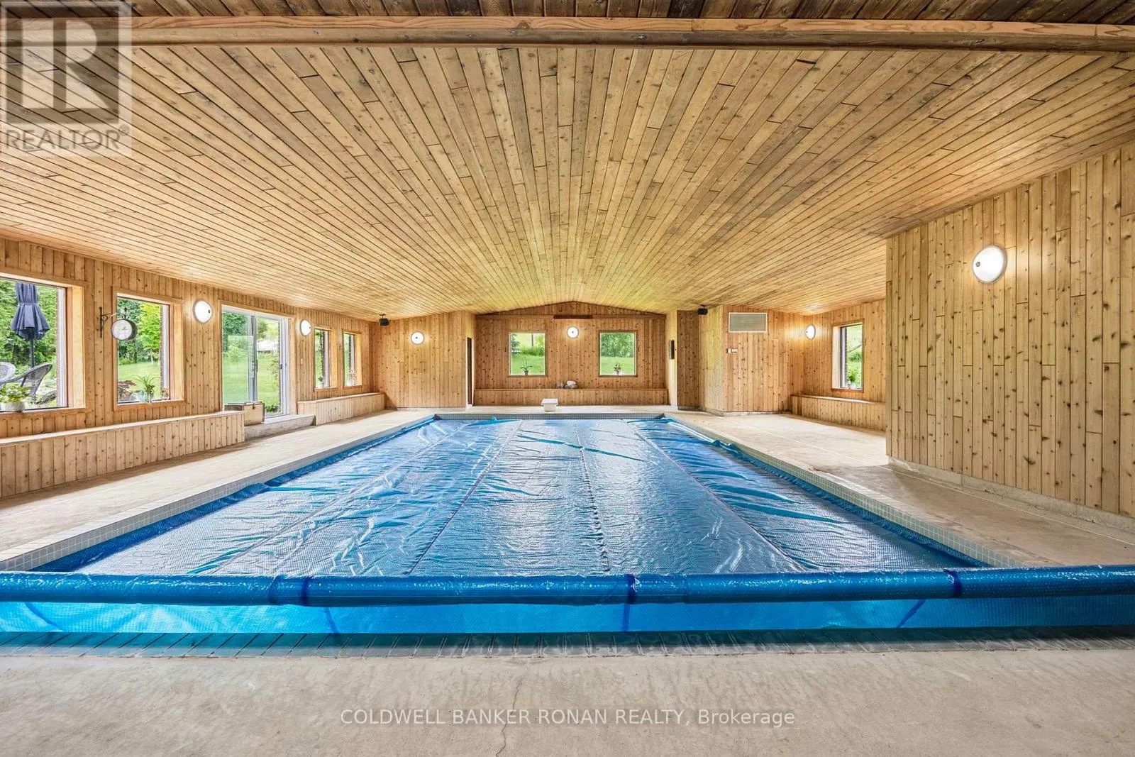 Highway 9 & 10th Sideroad West on 3rd Line Stunning All-Brick 5-Bedroom Home with Indoor Heated Pool. Enjoy country living with city convenience in this spacious all-brick home featuring 5 bedrooms and 3 bathrooms. Highlights include hardwood floors, a formal dining room with French doors, a cozy family room with stone fireplace, and a bright kitchen with stainless steel appliances, butcherblock counters, and walkout to a large deck. The showpiece is the private indoor heated pool, complete with patio access and versatile storage rooms that could double as change rooms or an extra bath. The primary suite offers a walk-in closet and 3-piece ensuite. Additional features include a home office, double garage, outdoor workshop/storage, and a finished lower level with storage/workshop space. Located minutes from Hwy 9, Hwy 400, shopping, and this rare property blends comfort, privacy, and convenience. (id:27476)