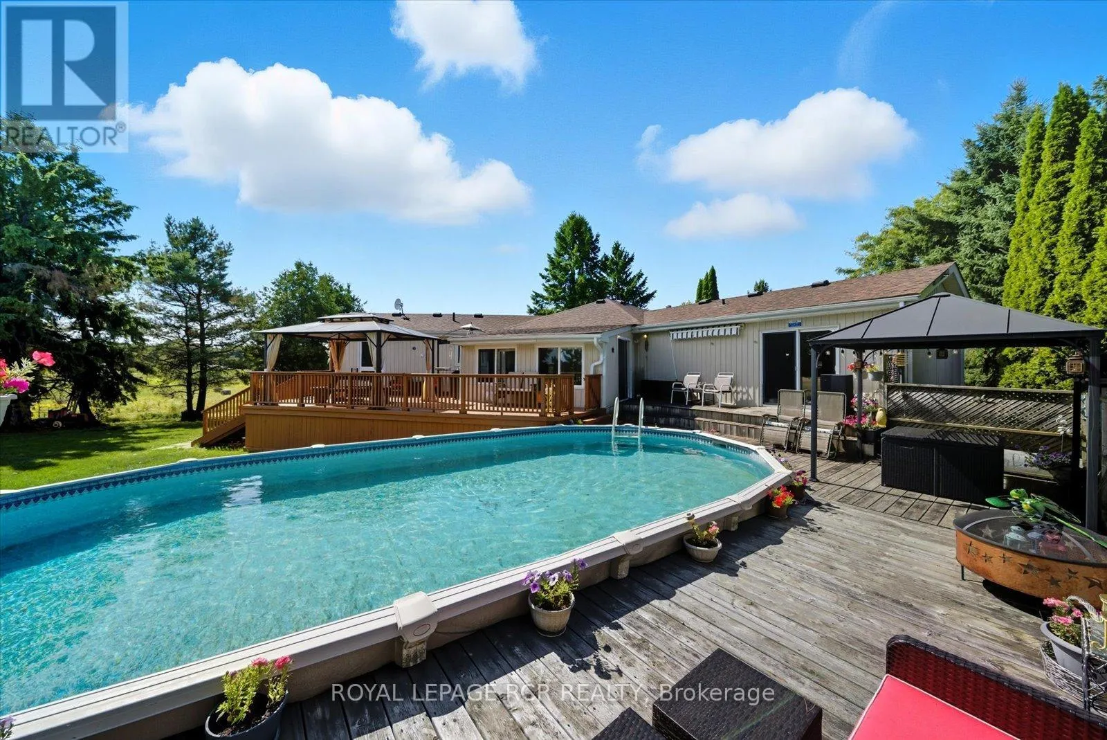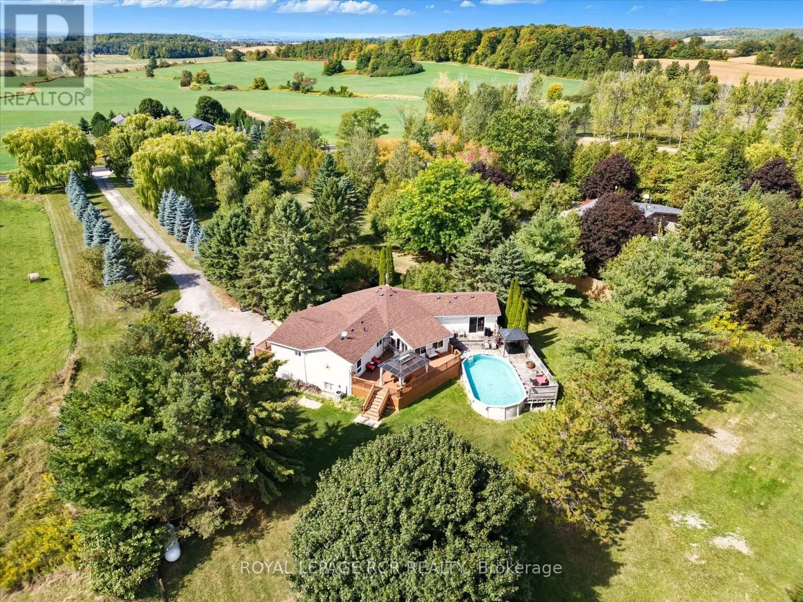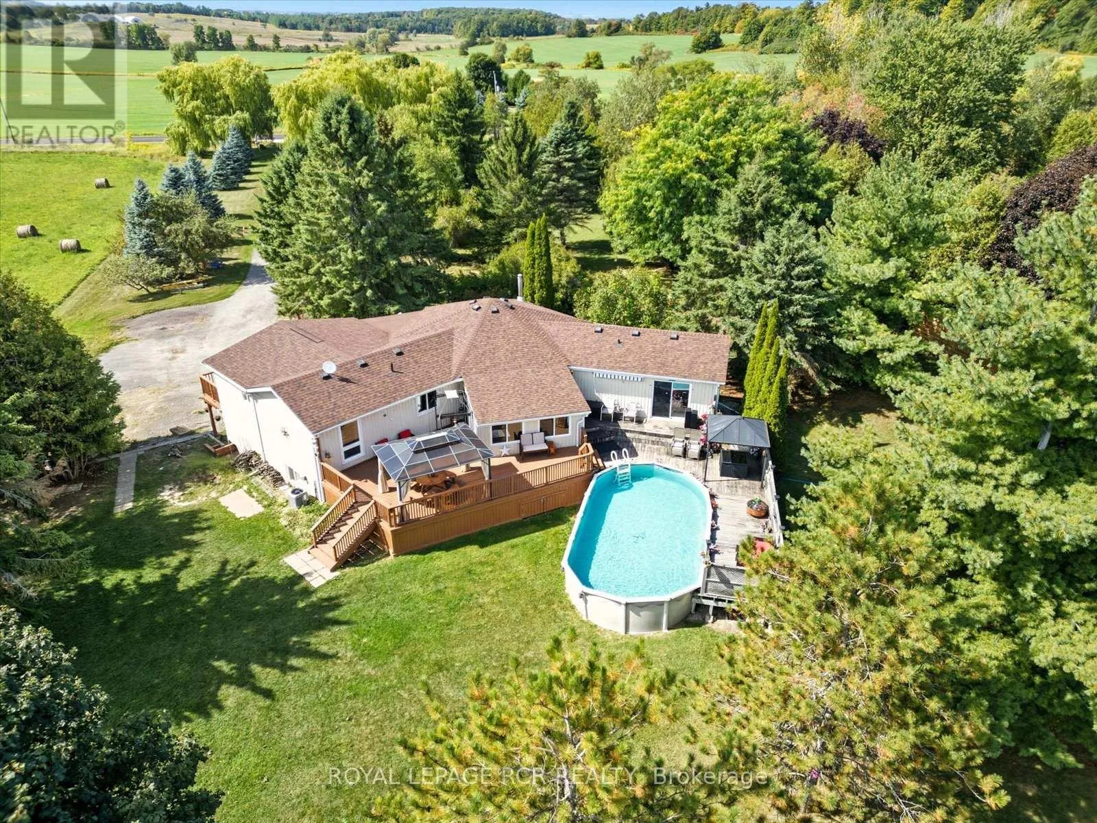 15th Sideroad & 3rd Line Welcome to your private paradise - an extraordinary 5-acre country retreat in rural New Tecumseth offering breathtaking panoramic views of open fields, mature trees, and the serenity of nature, all just minutes north of Highway 9. Enjoy the perfect blend of peaceful country living with convenient access to major routes just 10 minutes to Hwy 400, 7 minutes to Hwy 27, & only 30 minutes to both Toronto & Barrie. As you drive down the long, tree-lined driveway, you'll immediately feel the sense of peace & tranquility. The impressive frontage provides a grand entrance to your custom-built raised bungalow, surrounded by lush greenery and fresh air. Inside, the home boasts a massive, character-filled living room with soaring ceilings, hardwood floors, a large bay window, and a cozy wood stove that adds stunning ambiance. Walkout to the beautiful sunroom the perfect spot to soak in the natural surroundings. The open-concept kitchen features ample cabinetry and a center island, ideal for entertaining & family gatherings. The main level offers three spacious bedrooms, including two with 4-piece ensuites and private walkouts to decksone ideal for sunrise coffees, the other perfectly positioned for stunning sunset views. A versatile den adds even more flexibility to the layout. Downstairs, a separate entrance leads to a bright, above-grade basement apartment ideal for multi-generational living or rental income. It features large windows, a full kitchen, and plenty of living space. The deep, two-car garage with direct interior access adds functionality & easy access to vehicles away from the elements. The entire home has been professionally cleaned, offering a fresh, move-in-ready environment for its next owners. Step outside to your expansive entertainers deck with direct access to a sizeable above-ground pool perfect for summer BBQs under the stars. Surrounded by wide-open skies and natural beauty, this outdoor space invites you to unwind, host, and enjoy life in the country. (id:27476)