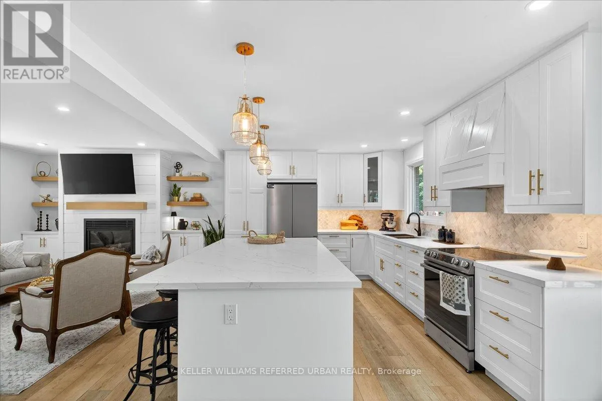 Mill St./Tottenham Road Stunning, Light-Filled Home on a Quiet Cul-de-Sac in Quaint Tottenham. Welcome to the perfect blend of modern living and small-town charm. Nestled at the end of a mature, tree-lined cul-de-sac, this beautifully updated home offers spacious, open-concept living on an exceptional lot.The newly redesigned front façade features an oversized porch with pot lights an inviting extension of your living space. Inside, natural light pours into the bright living room, complete with a custom media wall, built-in shelving, and a cozy gas fireplace.The show-stopping kitchen is a dream for any home chef, boasting a large island, premium appliances, quartz countertops, marble backsplash, pot drawers, a built-in beverage fridge, pendant lighting, and abundant storage. Step out from the kitchen onto a 12 x 24 wraparound deck ideal for outdoor dining and entertaining, with easy access to the garage. The backyard features new sod, partial fencing, and gates. Upstairs, the serene primary suite offers built-in closets and a rare full ensuite with a sliding barn door, double vanity, curbless shower, and added storage. The finished basement includes a 3-piece bathroom, a flexible bedroom/guest space, and a cozy rec room perfect for movie nights or visiting family. Notable Upgrades: New windows, patio door, garage door, furnace, A/C, flooring, flat ceilings, interior doors, and hardware no detail has been overlooked. This is turnkey luxury living with thoughtful design throughout. Come see it for yourself! Walking distance to town with shops and restaurants, close to schools and a short drive to highways, making Toronto, Caledon, Brampton and Mississauga easily accessible. (id:27476)