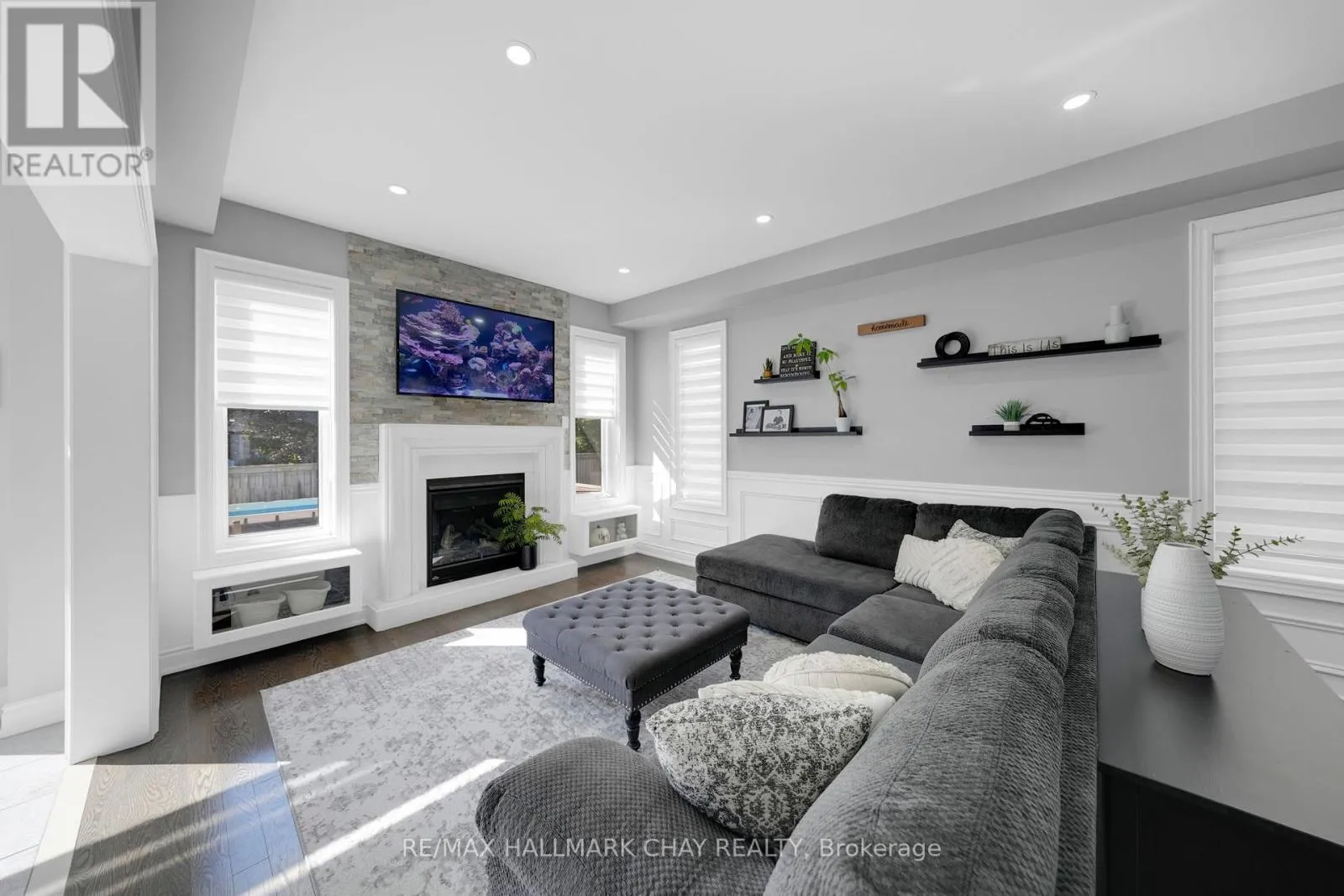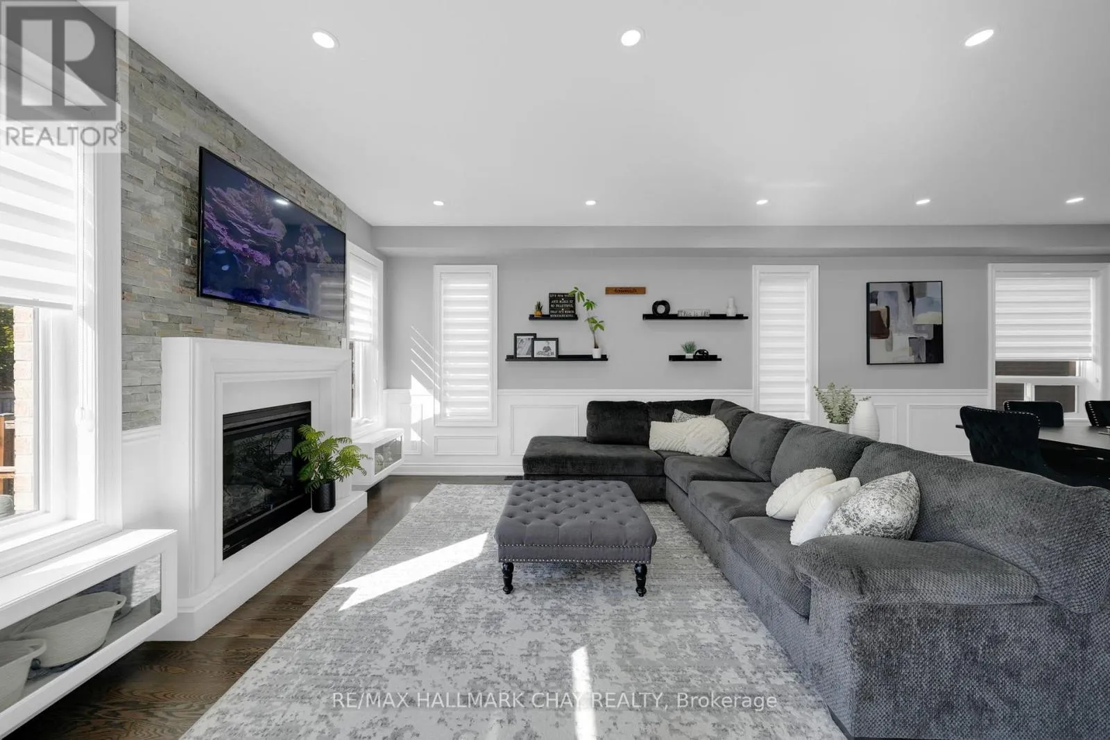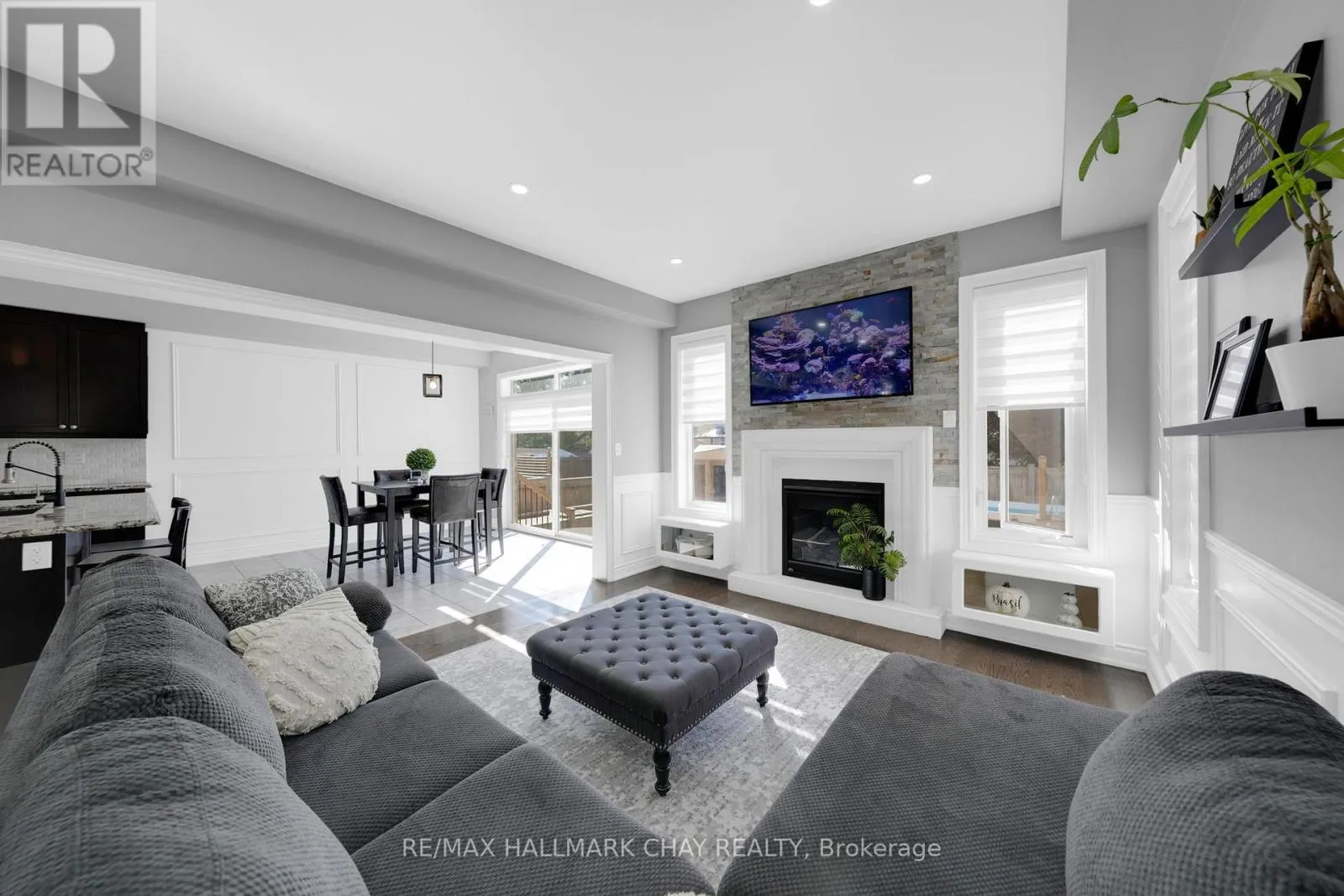 4th Line & Tottenham Rd. Welcome to this beautifully maintained and thoughtfully upgraded home nestled in the heart of Tottenham. Step inside to an open-concept layout, ideal for entertaining. The main floor boasts gleaming hardwood floors, elegant wainscoting, pot lights, and upgraded zebra window coverings that add a touch of sophistication. The cozy gas fireplace in the living room creates a warm and inviting space for family gatherings. The chef-inspired kitchen is a showstopper, featuring granite countertops, modern backsplash, stainless steel appliances -- with plenty of space to gather, prep and host with ease. The bright, upper-level family room provides additional living space ideal for movie nights, a playroom, or home office. Primary bedroom features W/I Closet and 4 Piece Ensuite w/ Jacuzzi Tub. The finished basement includes a 4th bedroom, bathroom rough-in, and a separate garage entrance, offering excellent potential for an in-law suite or rental opportunity. Step outside to your backyard oasis an entertainers dream with a large deck, interlocking patio, above-ground pool, and a stylish bar/shed area. The interlocked and widened driveway adds convenience and curb appeal. Located in a quiet, family-friendly neighbourhood close to schools, parks, shops, and everything Tottenham has to offer. (id:27476)