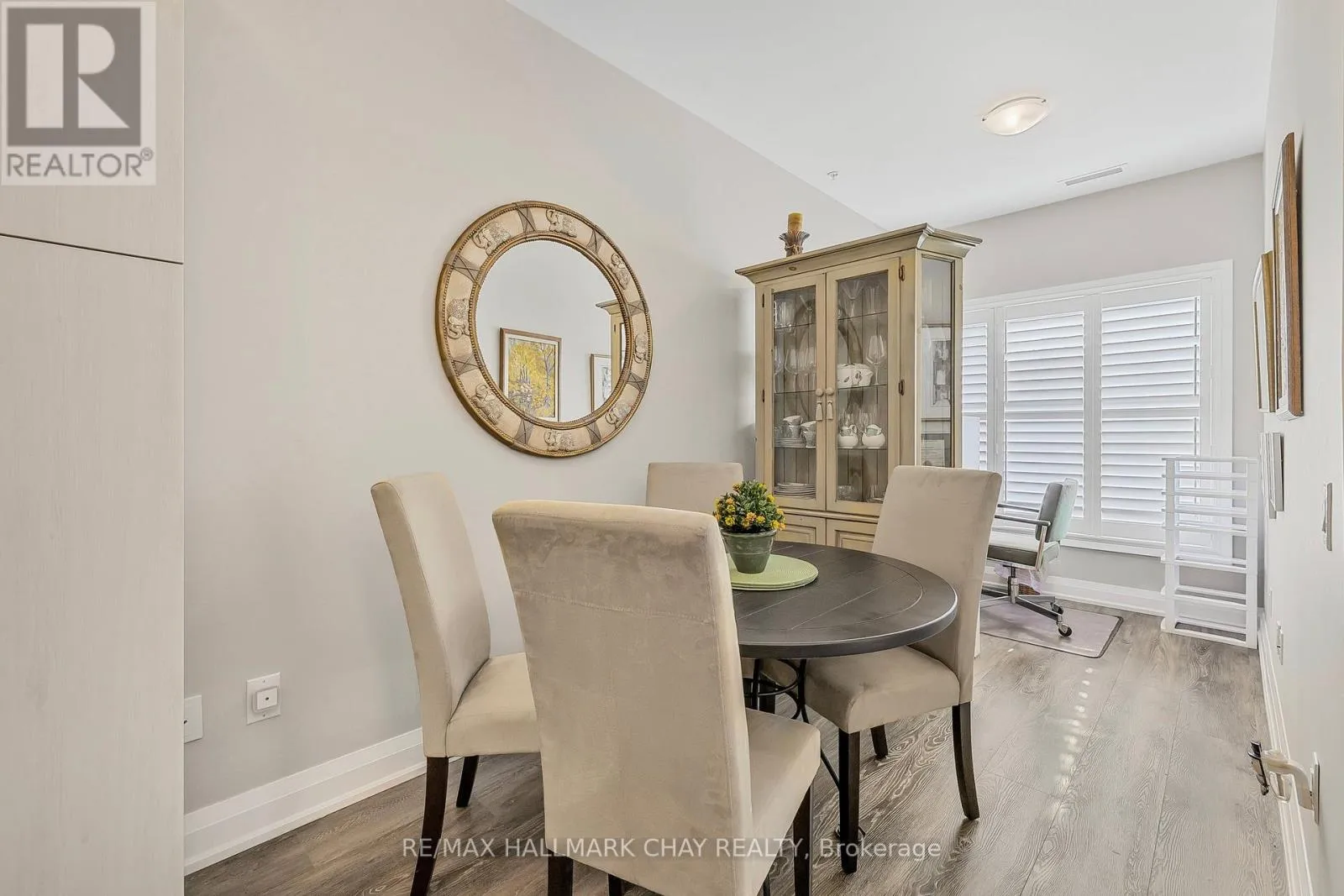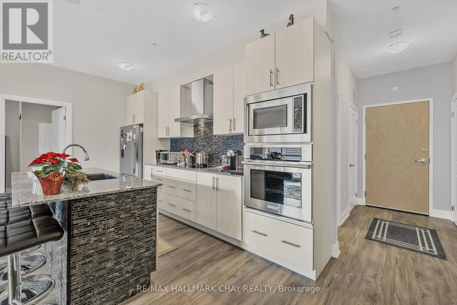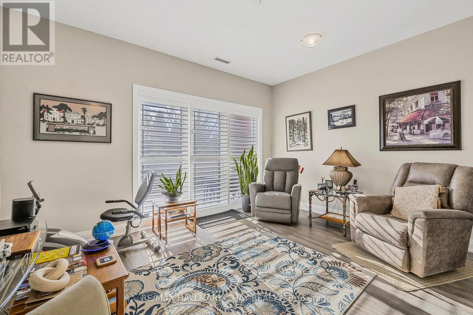 Cross Streets: Queen St S & Dillane St W. ** Directions: Queen St S. Step into the perfect blend of convenience and comfort with this impressive first floor one bedroom plus den condo. Enjoy the ease of bringing in groceries or taking pets for a walk with no need for elevator use. The large 12X27 ft terrace offers direct access to outdoor spaces unique to ground floor living. Vista Blue Condo Building built in 2020 is perfectly situated steps away from shopping, dining and everyday conveniences. Admire the beauty of the Trans Canada Trail and the Conservation area just outside your door. Designed to impress, the kitchen features tasteful upgrades and is equipped with professional grade appliances (barely used), granite counter tops and an upgraded centre island. The primary bedroom includes a 4 pc ensuite bath with double sinks and an oversized walk in shower. This south facing suite is also enhanced by an open concept design, 9 foot ceilings, a 2 pc guest washroom, in suite laundry and California Shutters. The underground parking brings an extra level of comfort while keeping your car protected from the elements. This unit and the entire building exemplify clean, well kept spaces. Host gatherings in the spacious party/games room, featuring a well appointed kitchen and views of the conservation area. The building also offers guest parking and front entry handicapped accessible spaces for added convenience. (id:27476)