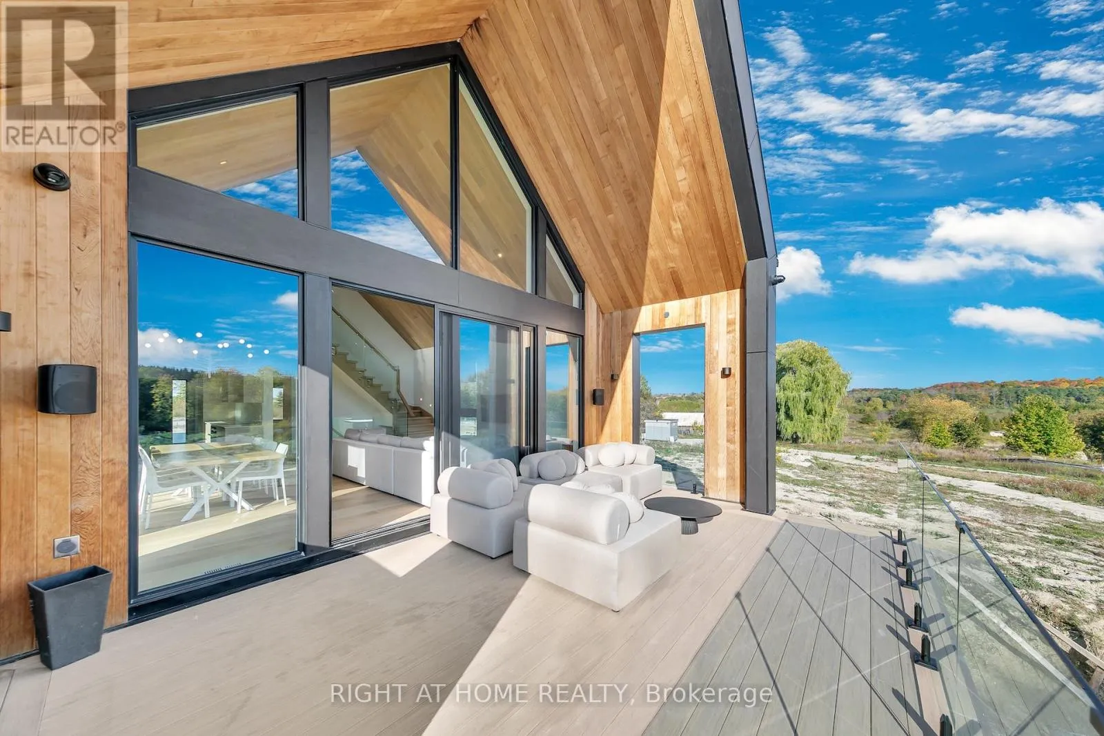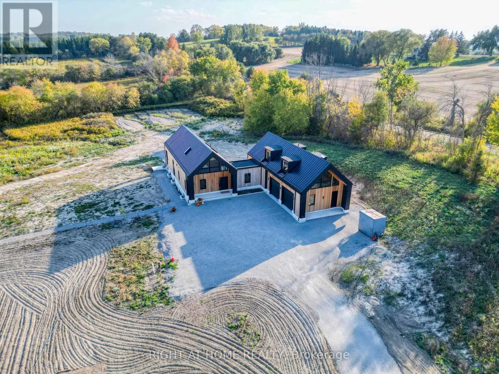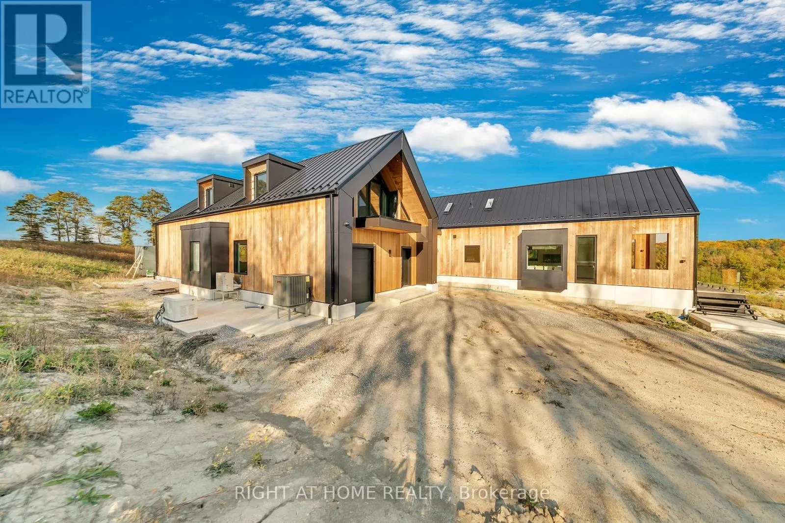 Cross Streets: 10th Line / 20th Sdrd. ** Directions: 581510003. Over 65 acres of picturesque agricultural land. Discover the perfect blend of modern design and country serenity in this new A-frame cedar farmhouse. This thoughtfully designed new custom built home balances warmth and sophistication through tasteful neutrals, elevated finishes and exceptional craftsmanship. See attached schedule for complete list of premium inclusions. Expansive windows flood the open living spaces with natural light and frame sweeping views of the surrounding fields and woodlands. The sleek custom galley kitchen is equipped with built-in high-end appliances and leads seamlessly to a dining area with walkout access to a stunning glass-railed balcony complete with a covered section for year-round enjoyment.The property is bordered by open pastures, stretches of farmland, and the tranquil flow of Penville Creek meandering through the landscape. Beyond the nearly 3,400 sq. ft. of living space you will find an impressive three-door insulated garage. With heated concrete floors this workspace provides ample storage, plus an additional 1,100 sq. ft. partially finished loft above ideal for a studio, office, or guest suite. The permit and brand new services (well, spetic, hydro) can accomodate for a second dwelling, offering incredible potential for multi-generational living or future investment. This is countryside living reimagined modern, peaceful, and built for those who value quality, beauty, and space to breathe. See schedule attached for the list of custom incliusions and finishes. (id:27476)