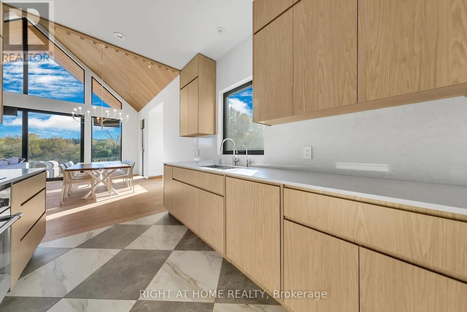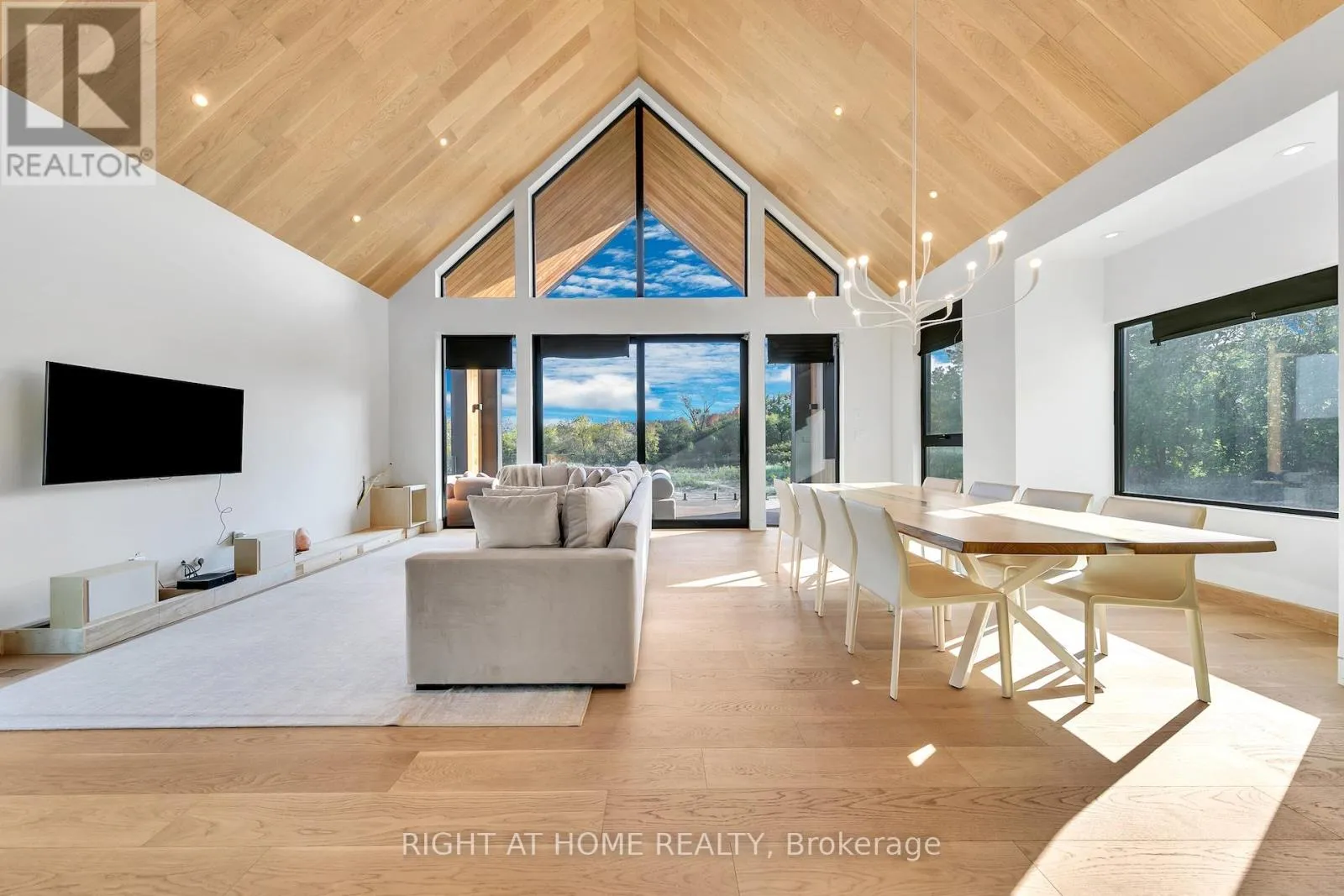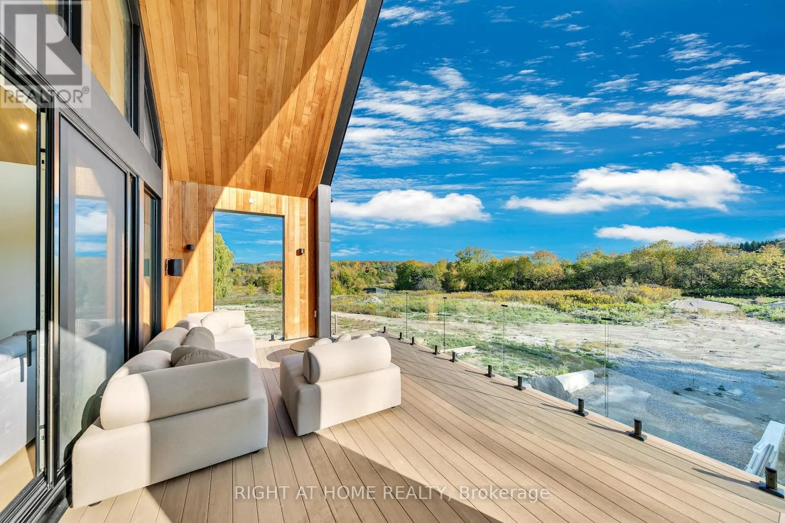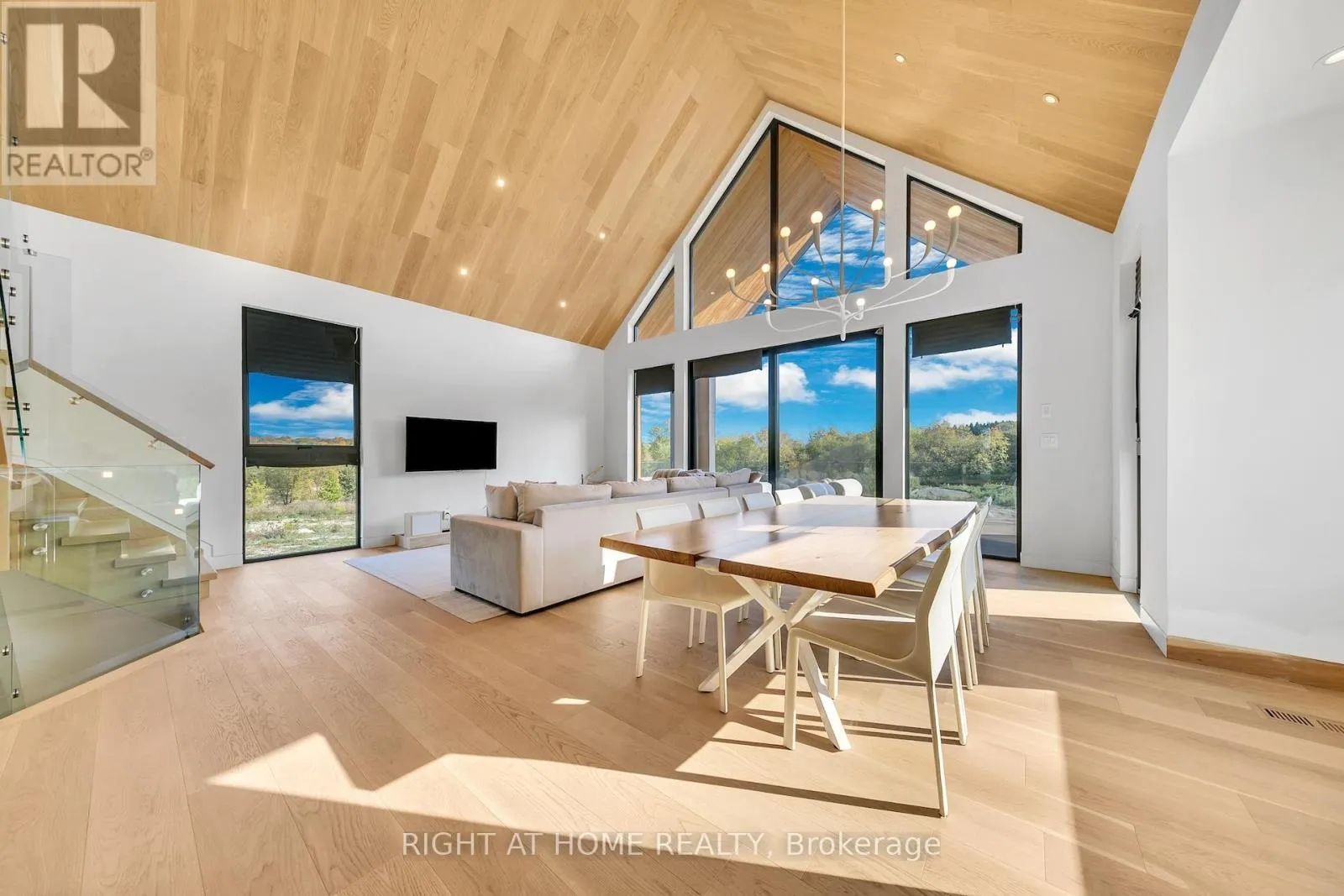 Cross Streets: 10th Line / 20th Sdrd. ** Directions: 581510003. Over 65 acres of picturesque agricultural land. Discover the perfect blend of modern design and country serenity in this new A-frame cedar farmhouse. This thoughtfully designed new custom built home balances warmth and sophistication through tasteful neutrals, elevated finishes and exceptional craftsmanship. See attached schedule for complete list of premium inclusions. Expansive windows flood the open living spaces with natural light and frame sweeping views of the surrounding fields and woodlands. The sleek custom galley kitchen is equipped with built-in high-end appliances and leads seamlessly to a dining area with walkout access to a stunning glass-railed balcony complete with a covered section for year-round enjoyment.The property is bordered by open pastures, stretches of farmland, and the tranquil flow of Penville Creek meandering through the landscape. Beyond the nearly 3,400 sq. ft. of living space you will find an impressive three-door insulated garage. With heated concrete floors this workspace provides ample storage, plus an additional 1,100 sq. ft. partially finished loft above ideal for a studio, office, or guest suite. The permit and brand new services (well, spetic, hydro) can accomodate for a second dwelling, offering incredible potential for multi-generational living or future investment. This is countryside living reimagined modern, peaceful, and built for those who value quality, beauty, and space to breathe. See schedule attached for the list of custom incliusions and finishes. (id:27476)