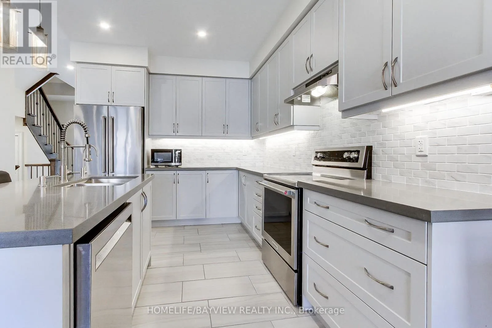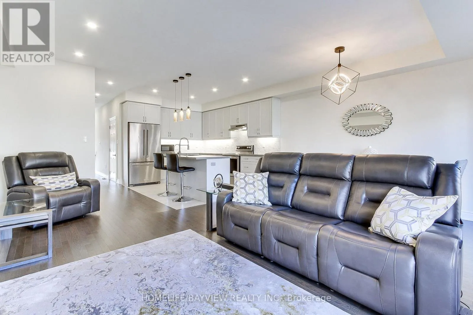 Cross Streets: Peacock Trail / Willoughby Way. ** Directions: #89 and 10th Side Rd. Stunning Freehold Townhouse located in family oriented neighbourhood . Featuring 3 bedrooms and 2.5 baths, modern home with open-concept layout, abundant natural light, and thoughtful upgrades. Large windows in the living area, upgraded kitchen flooring, backsplash, and cabinet hardware. Hardwood floor on the first floor, hardwood staircase, smooth 9' ceilings on the first floor with pot lights. Interior garage access, cold cellar. Property is conveniently located just minutes from Highway 400 with easy access to shopping centers, golf course, and a beautiful park. (id:27476)