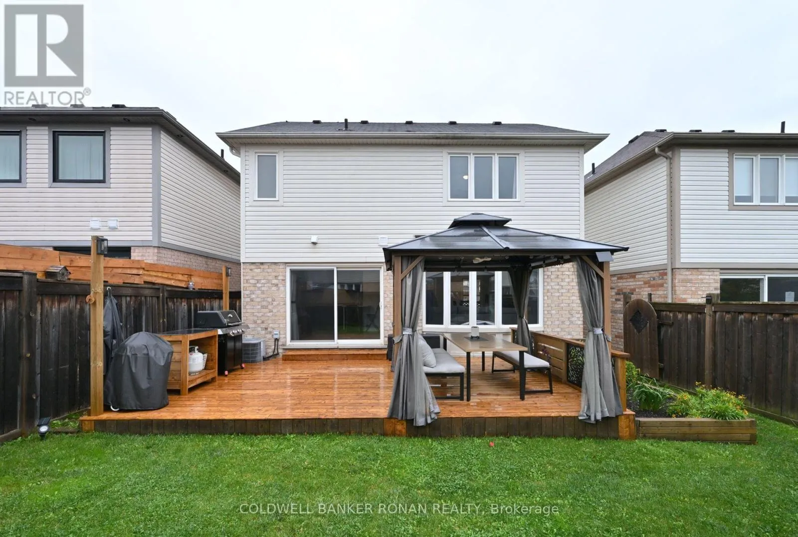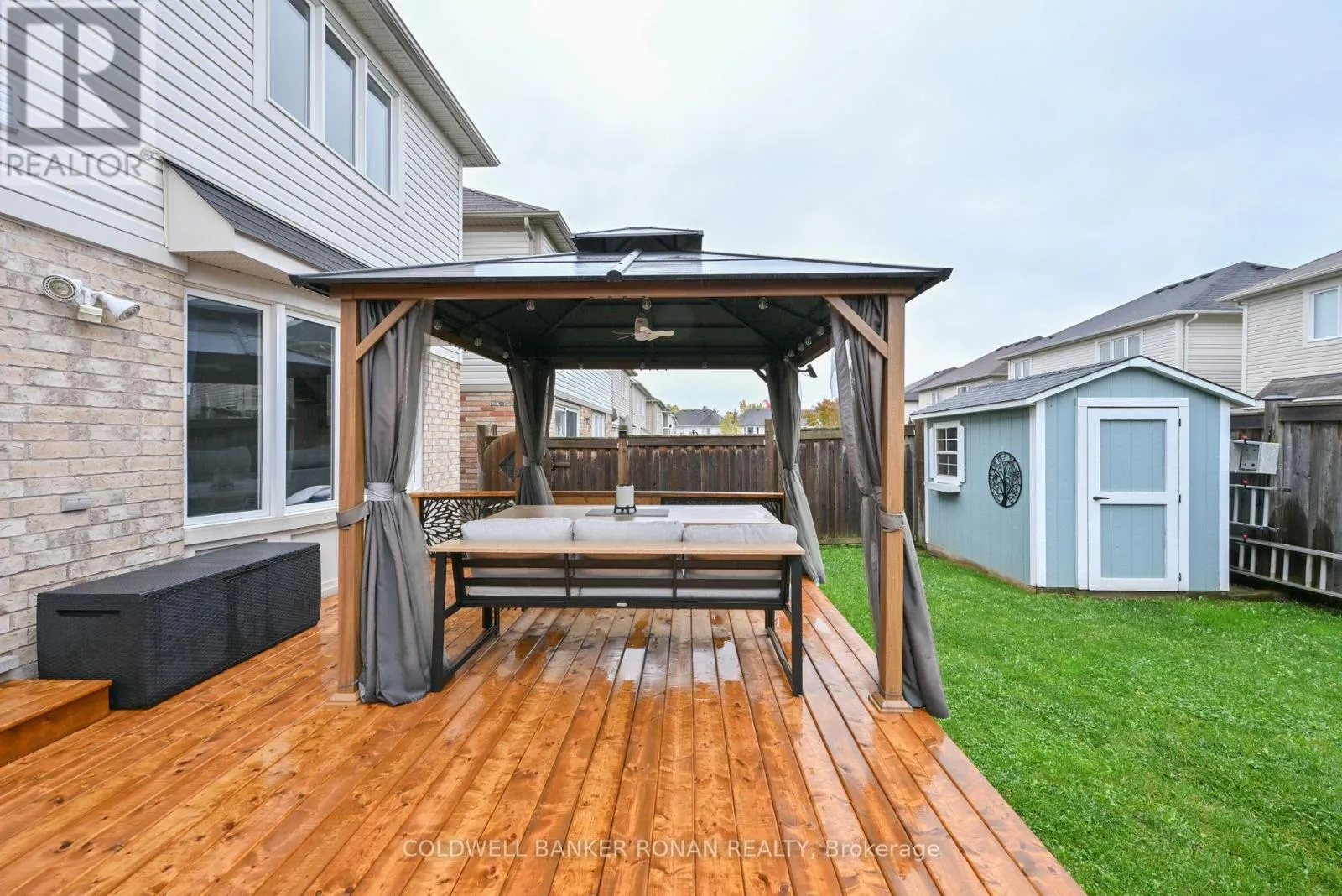 Cross Streets: John W Taylor & Ferris Lane. ** Directions: Boyne St N or Sir Fredrick Banting N to John W Taylor to Ferris Lane. Welcome to this meticulously cared-for 3-bedroom, 3-bathroom, fully finished home, ideally located on a quiet, family-friendly street. This bright and functional layout features hardwood flooring, a spacious primary suite with walk-in closet and 4-piece ensuite, and the convenience of second-floor laundry. The main floor offers a separate formal dining room, an open-concept living area, and inside access from the garage for everyday ease. The finished basement provides versatile space for a family room, home office, or gym, along with ample storage and a cold cellar with built-in shelving-perfect for organizing seasonal items or extra pantry storage. Enjoy outdoor living in the fully fenced backyard, complete with a large entertainer's deck, garden shed, and a covered front porch ideal for relaxing or greeting guests. Additional features of this Mattamy "Borden" Model | 1,387 Sq Ft + Finished Basement include stainless steel appliances, front-load washer and dryer, central air conditioning, central vacuum, and a garage door opener. Conveniently located within walking distance to schools, parks, shopping, and downtown amenities. This home is turnkey and move-in ready! (id:27476)