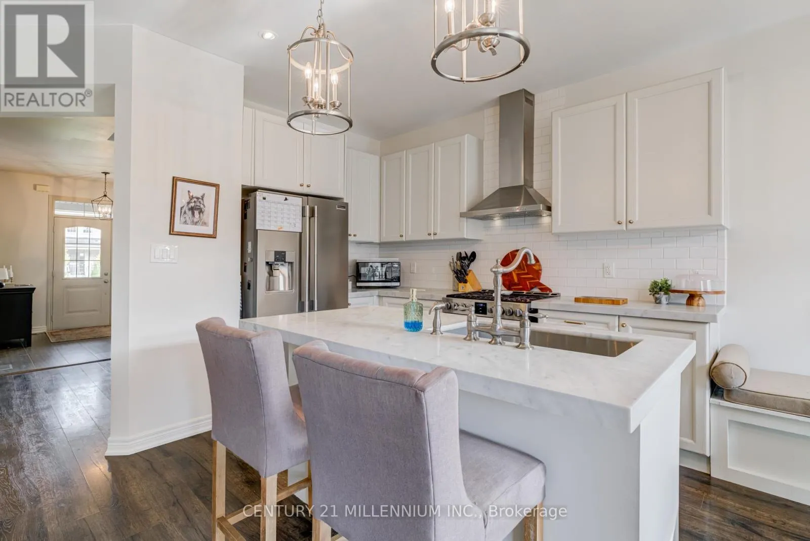 4th Line & Turner Here it is the total package in the family friendly town of Tottenham. This fully renovated home is linked only at the garage giving you the privacy and functionality of a detached home. Solid red brick exterior, single garage, 2 driveway parking spaces no side walk. Front veranda & Dbl door entry welcomes you to spacious foyer & soaring 9ft ceilings throughout the m/f. Updated bold powder room feat classic finishes, features & gold hardware. Gorgeous XL living & kitchen area feat smooth ceilings, custom wall moulding, laminate floors, designer lighting. Dream kitchen w/ marble counters, High end s/s appliances, deep sink with Victorian style faucet, subway backsplash that flows in the DR with custom banquet bench seating. Sliding doors w/o to private backyard feat modern interlocking patio/walkway w/ solid gazebo & metal roof, kids play gym & durable shed. Hw staircase to 2nd level feat convenient well designed laundry room. King Size master bedroom with custom wall moulding, XL W/I closet & 3pcspa like ensuite w/sep deep soaker tub & stand up shower. 2 bdrms share a modern 4pc bath. Big bonus w/ the recent professionally finished Bsmt. Hw staircase to the fully open concept Rec room area, pt lights, smooth ceilings, vinyl flrs, Modern 2pc powder rm, Separate finished room for storage or can be used as a den/ office & a cool custom finished kids hang out areaunder the staircase that will be a big hit. Tottenham offers the perfect blend of small-town charm and modern convenience. This welcoming community is surrounded by rolling countryside, scenic trails, and peaceful ponds-ideal for families, retirees, and professionals looking for a relaxed pace without sacrificing accessibility. Commuters benefit from easy access to Highways 9, 27,and 400, offering quick connections to Bolton, Orangeville, and the Greater Toronto Area. Enjoy the Historical South Simcoe railway, Conservation park, Woodington Lake Golf Club & many other local amenities with the family. (id:27476)