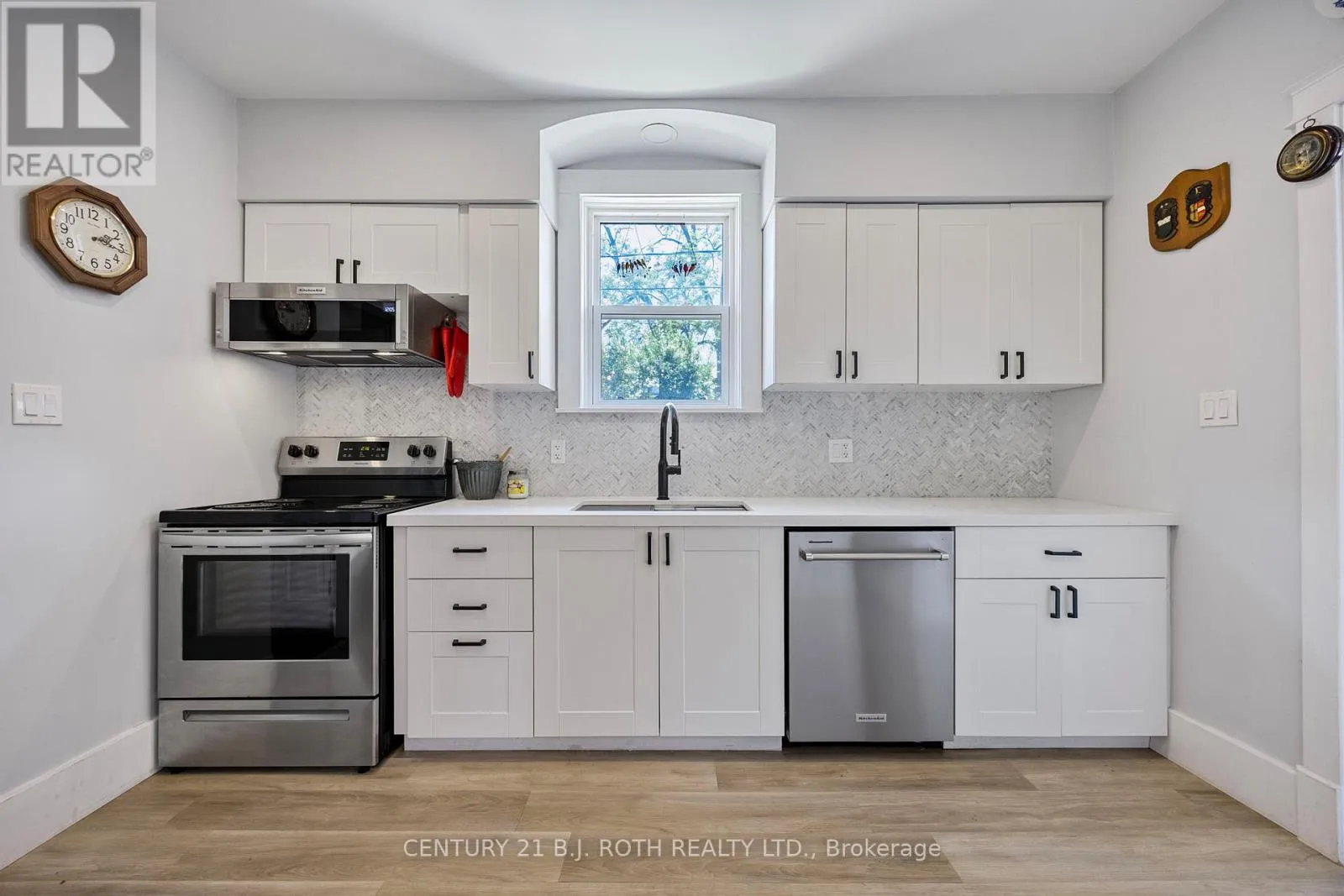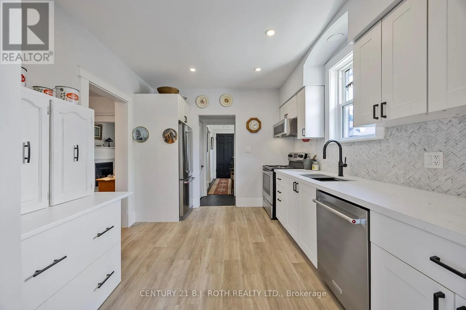 Cross Streets: Church / Nelson. ** Directions: the corner of Church St and Nelson, 2 blocks south of Victoria. Welcome to this stunningly renovated 3-bedroom, 1.5-bath home where timeless character meets contemporary style. Perfectly located just minutes from shopping, dining, and with quick access to Hwy 400, this property is an ideal fit for families and commuters alike. Step through the bright, insulated, and heated mudroom that doubles as a convenient main-floor laundry area-complete with a brand-new washer and dryer. The carpet-free main level showcases a spacious, open layout featuring a stylish kitchen with quartz countertops, a modern backsplash, and plenty of cabinetry. Relax by the cozy gas fireplace in the inviting living room, or gather with loved ones in the generous dining area designed for effortless entertaining.Upstairs, discover two comfortable bedrooms plus a versatile third room-perfect for a nursery, home office, or creative space. The beautifully updated 4-piece bathroom offers a touch of spa-like luxury.The unfinished basement provides abundant storage options, including a cold cellar. Outside, the large detached garage with dual doors is ideal for a mechanic, hobbyist, or anyone in need of extra workspace or storage. (id:27476)