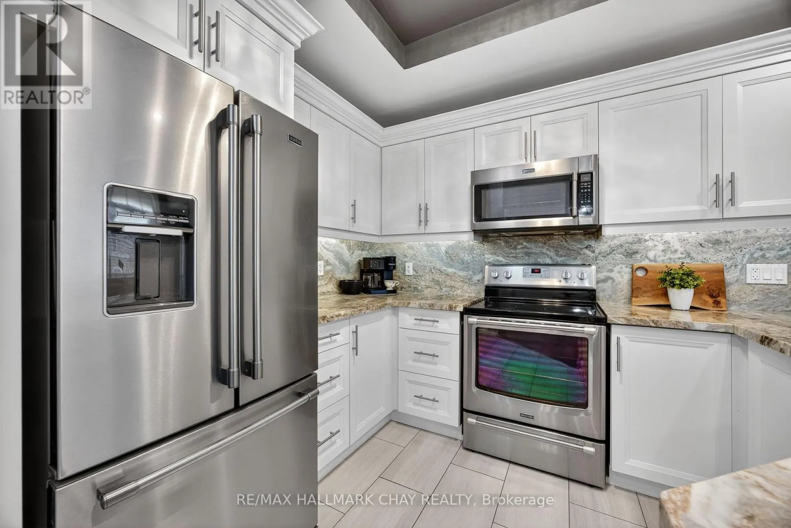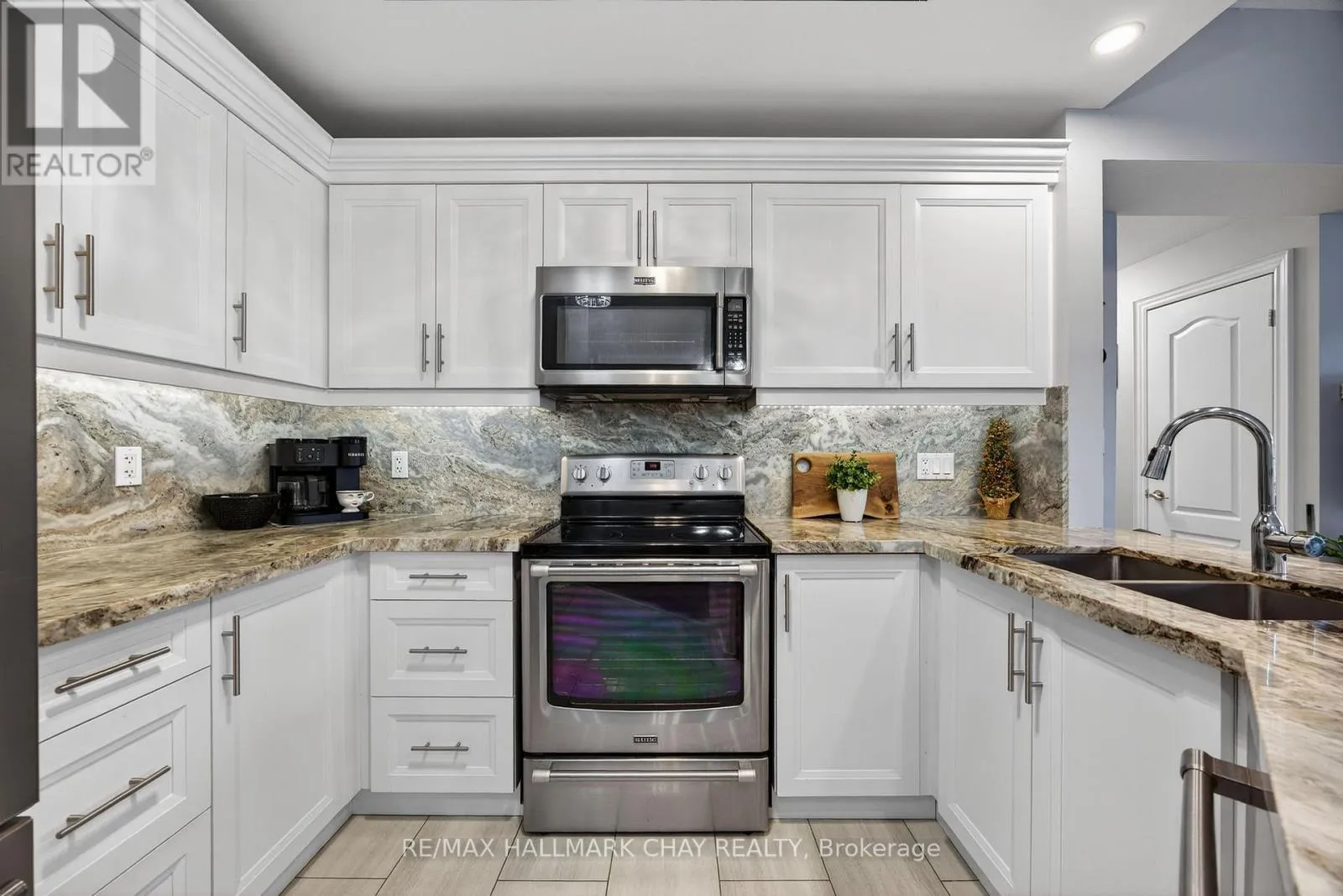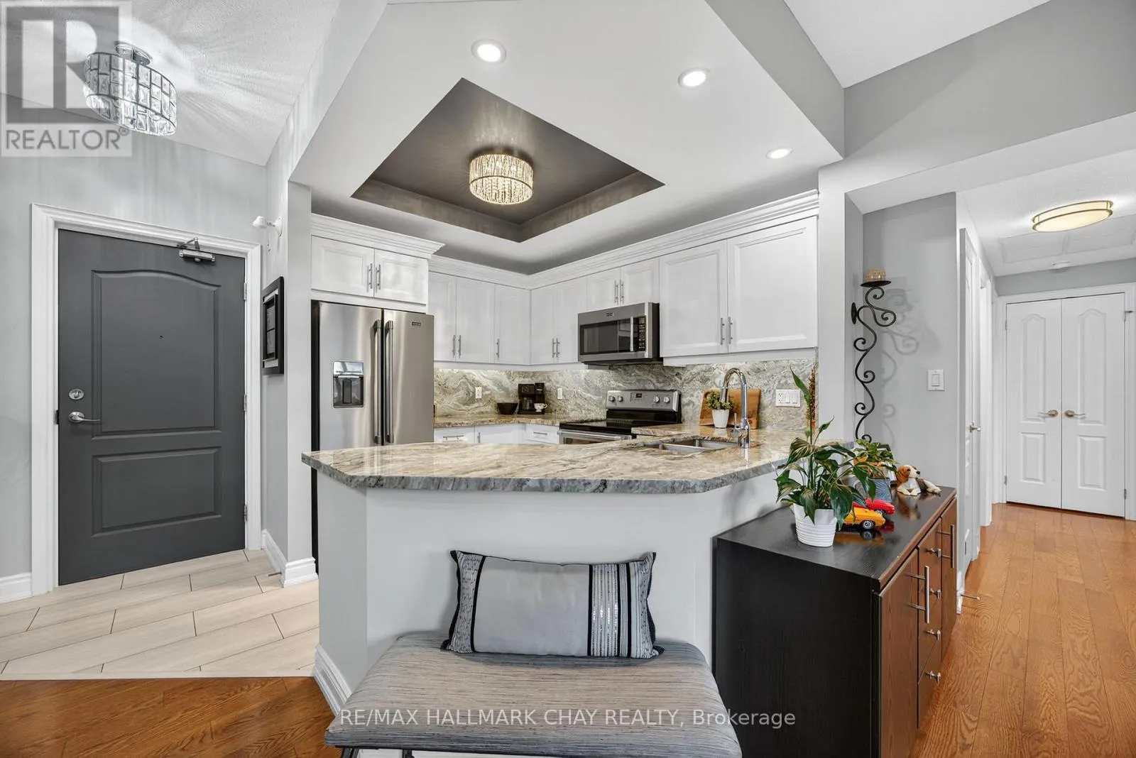 Cross Streets: Mackenzie/Sunset. ** Directions: HWY 89/CW Leach/Mackenzie to Sunset. BEAUTIFULLY RENOVATED TWO BED, TWO BATH CONDO IN BRIAR HILL WITH 2 OWNED PARKING SPOTS, GARAGE PLUS SURFACE SPOT IN FRONT OF THE DOOR! Adult Community, secure, safe and friendly and sound proof!!*Completely renovated kitchen with stunning granite counter top/backsplash, new cabinet fronts and flooring, Maytag stainless appliances*warm hardwood flooring in main spaces*spacious balcony*Primary Suite has beautifully design with new broadloom, five piece washroom with gorgeous tile work in the separate shower, soaker tub and double sinks plus a large walk in closet*Good size second bedroom with another renovated bathroom across from it*Ensuite, newer LG stacked washer/dryer (Dryer is ventless)*Storage locker in the back of garage*Community Centre with many activities to enjoy*Golfing, Discounts at Nottawasaga Gym/Swimming/Restaurants*Close to Timmies, Walmart, Liquor/Wine plus Alliston shops, churches, theatres*Quick access to HWY 27 & 400 or 50. (id:27476)