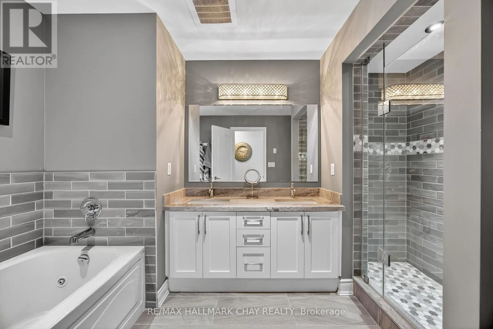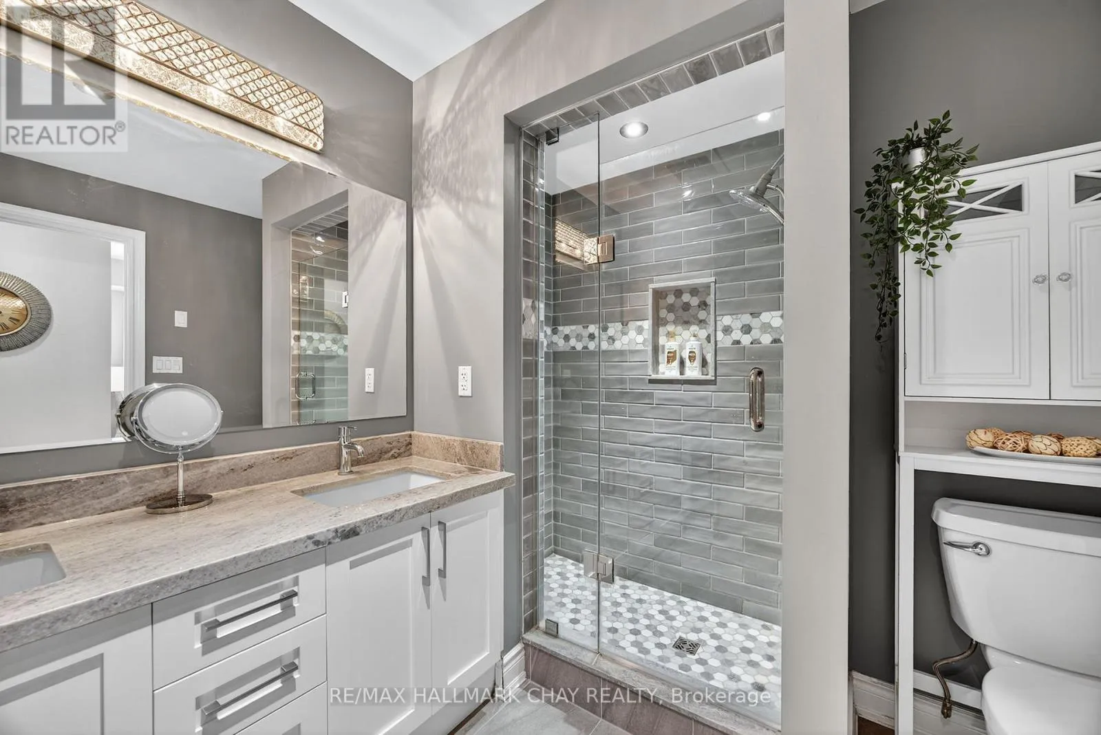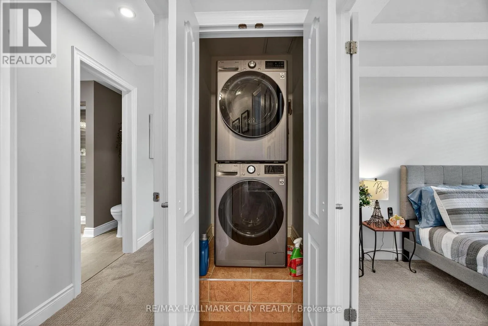 Cross Streets: Mackenzie/Sunset. ** Directions: HWY 89/CW Leach/Mackenzie to Sunset. BEAUTIFULLY RENOVATED TWO BED, TWO BATH CONDO IN BRIAR HILL WITH 2 OWNED PARKING SPOTS, GARAGE PLUS SURFACE SPOT IN FRONT OF THE DOOR! Adult Community, secure, safe and friendly and sound proof!!*Completely renovated kitchen with stunning granite counter top/backsplash, new cabinet fronts and flooring, Maytag stainless appliances*warm hardwood flooring in main spaces*spacious balcony*Primary Suite has beautifully design with new broadloom, five piece washroom with gorgeous tile work in the separate shower, soaker tub and double sinks plus a large walk in closet*Good size second bedroom with another renovated bathroom across from it*Ensuite, newer LG stacked washer/dryer (Dryer is ventless)*Storage locker in the back of garage*Community Centre with many activities to enjoy*Golfing, Discounts at Nottawasaga Gym/Swimming/Restaurants*Close to Timmies, Walmart, Liquor/Wine plus Alliston shops, churches, theatres*Quick access to HWY 27 & 400 or 50. (id:27476)