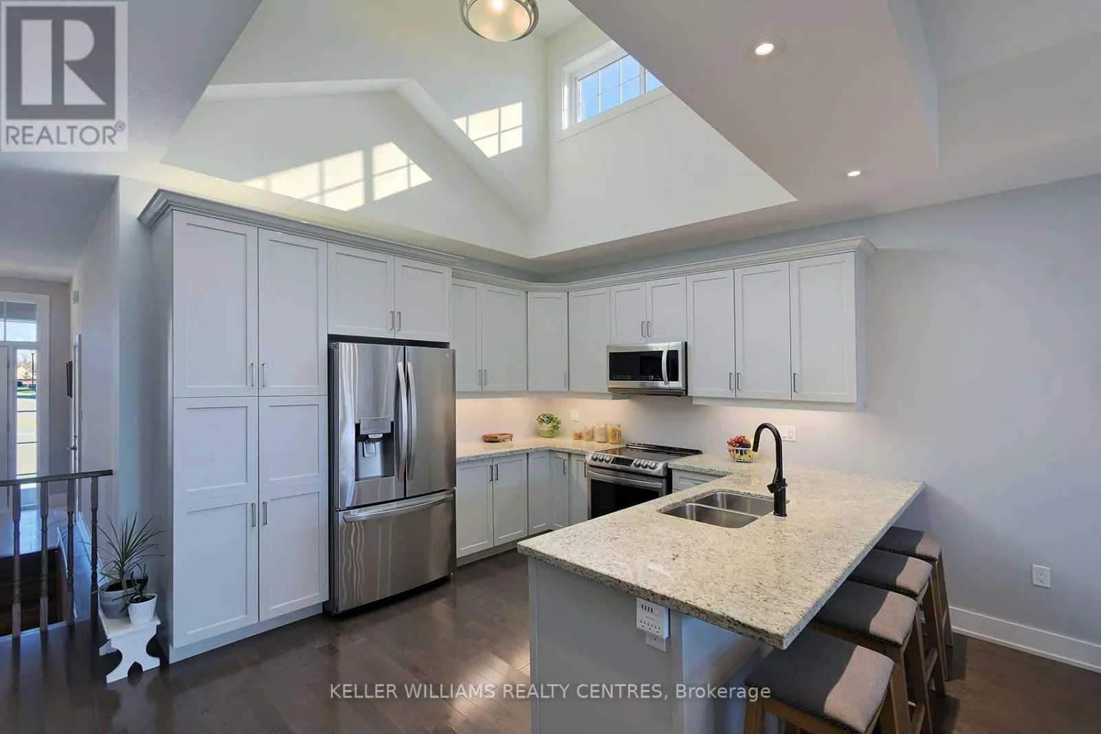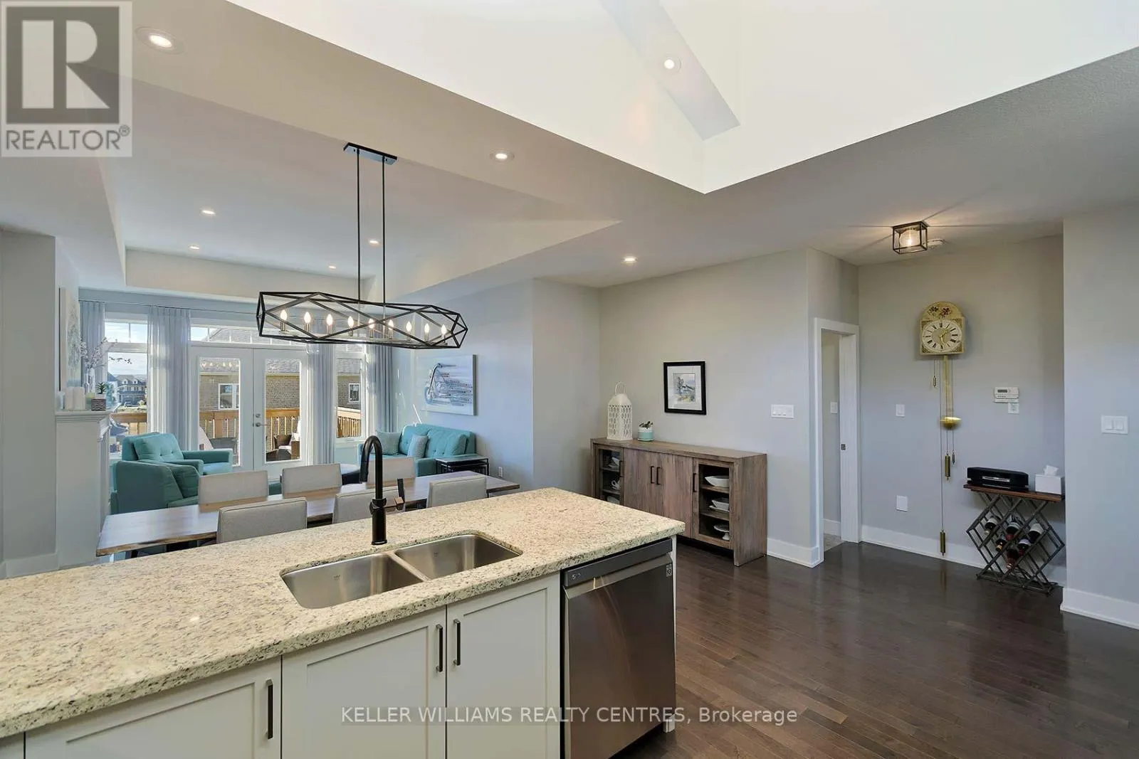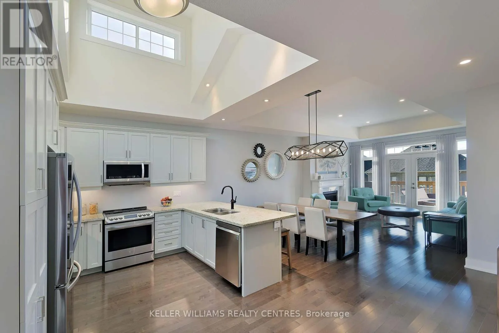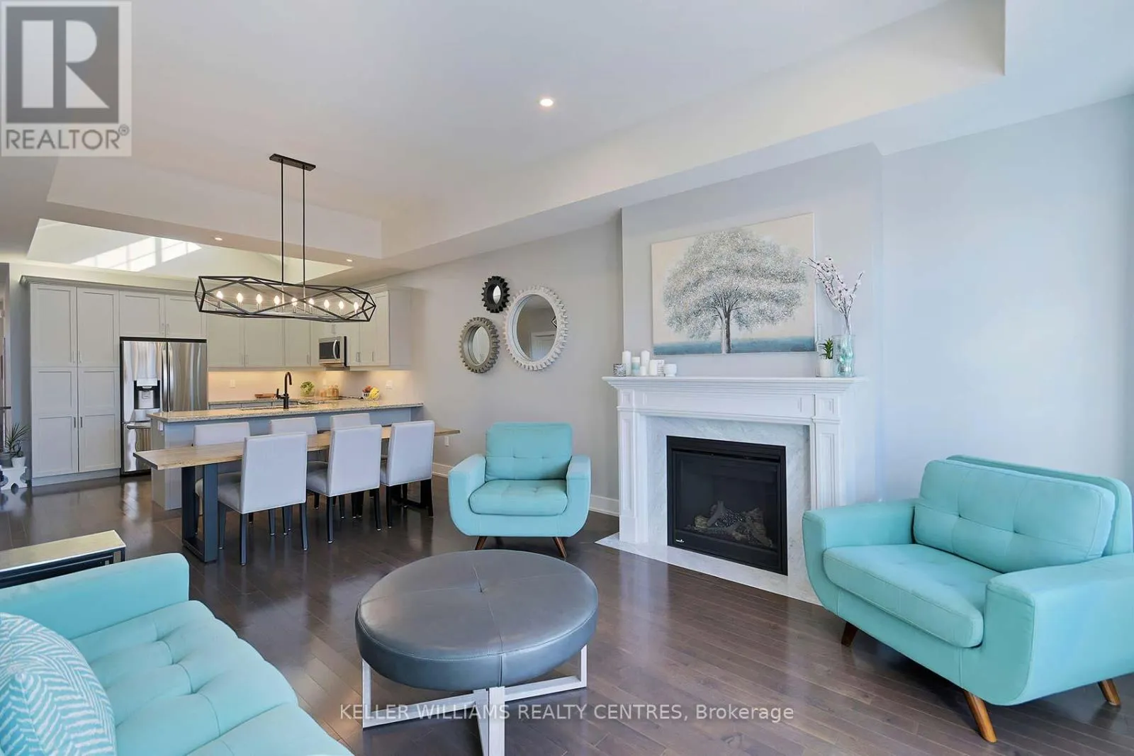 Cross Streets: 10th Side Rd and 14 Line. ** Directions: 10th Side Rd to 14 Line, Ponte Vecchio Ln to Summerhill Dr. Bright and spacious 4-year-old home with a fantastic floor plan, 9' ceilings on the main floor, walk-out basement, and parking for four vehicles. Units are joined at the garage for added privacy. Enjoy your morning coffee on the sunny front porch, then step inside the welcoming foyer, or use the convenient entry from the garage.The kitchen is filled with natural light from a soaring vaulted ceiling and dormer window, featuring a huge granite peninsula, perfect for entertaining. There's room for a large dining table and an open-concept living room with a gas fireplace and walkout to the west-facing deck, complete with BBQ gas hookup. A convenient powder room is available for guests.The primary bedroom shares the same west view and includes a 3-pc ensuite with a walk-in shower.The fully finished basement offers a bright second bedroom, huge recreation room with fireplace, ample storage and a walkout to a private west-facing patio-ideal for relaxing outdoors. There's also a den area perfect for a home office, a full 4-pc bathroom, and a fully finished laundry room with extra storage. Garage access to the back yard and patio adds convenience.Enjoy easy living in Briar Hill, where lawn care, window cleaning, and exterior maintenance are handled for you. A vibrant community offering golf, arts, music, and social events-everything you need for an active, carefree lifestyle! The possibilities for connection and enjoyment are endless. (id:27476)