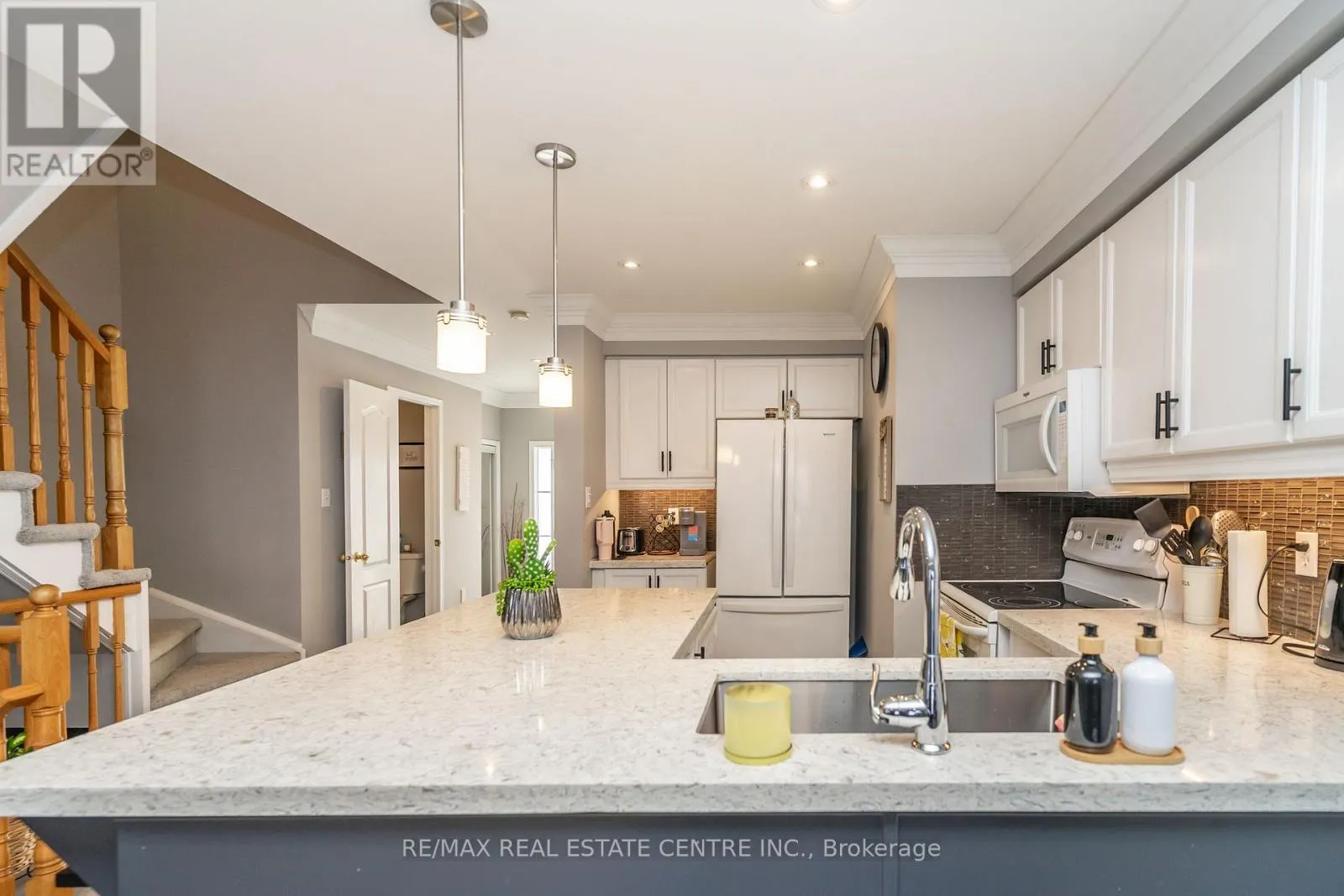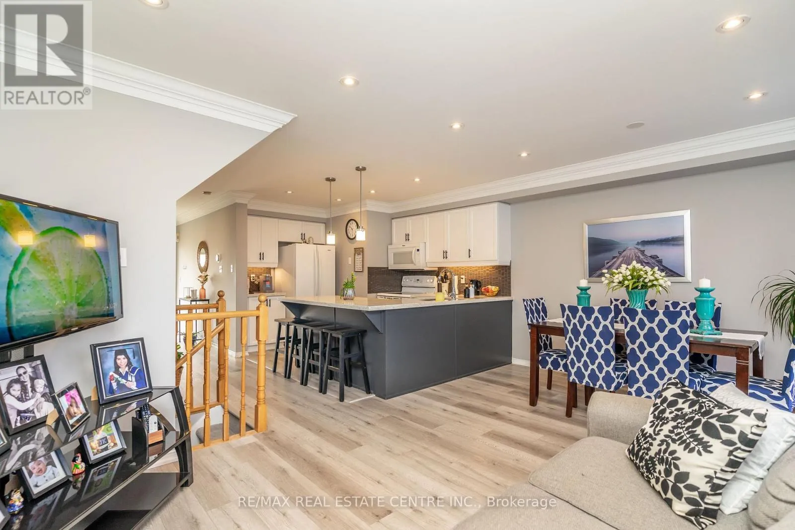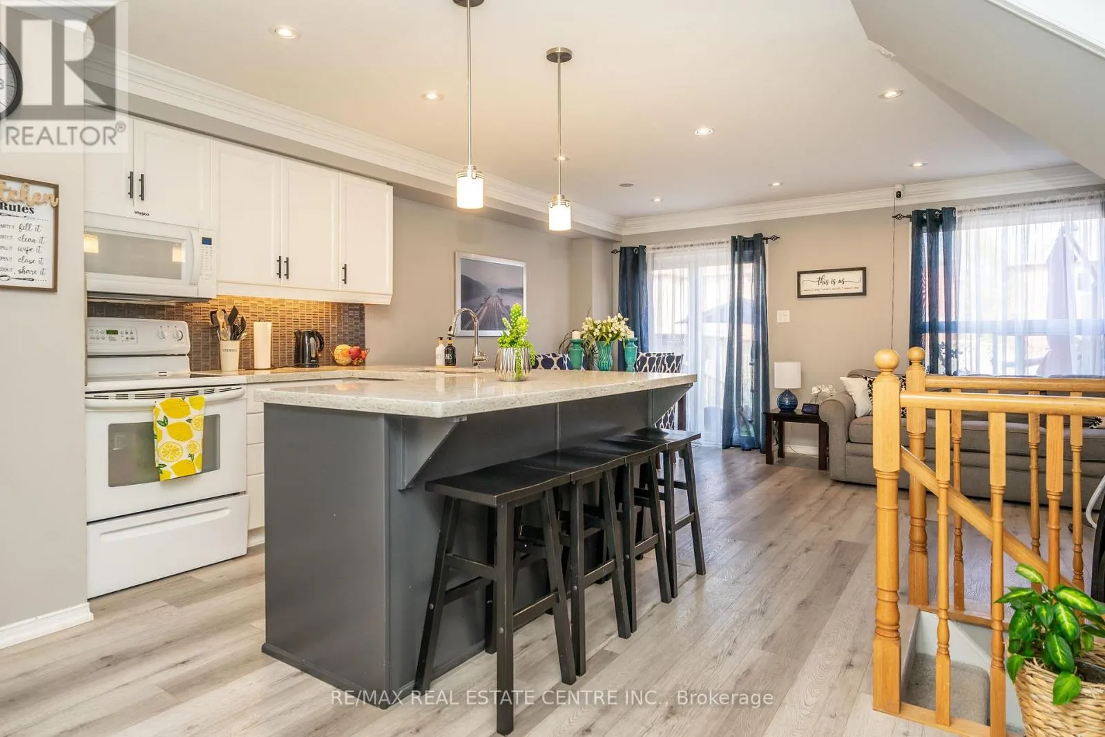 Cross Streets: 8th Ave & Henderson. ** Directions: Hwy89/Young St & 8th Ave South to Henderson Cres. Well Maintained & Upgraded All Brick Freehold Townhouse. Bright Open Concept Main Floor Living Area with Large Foyer & Double Coat Closet. Kitchen with Island Breakfast Bar, Pendant Lighting & Quartz Counter. Living & Dining Area with Large Window and Sliding Doors that Walk Out to Fenced Yard with Patio. Upper Level Offers Primary Bedroom with Semi Ensuite 4pc Bath. Plus Two More Good Size Bedrooms each with Dbl Closet & Large Window. Partially Finished Basement Rec Room, Playroom/Office, Laundry Rm & Storage. Good Size Backyard with Patio, Great Space to Unwind with the Family. Excellent Location, Easy Walk to Park, School & Downtown with All Amenities. New Laminate Flooring, Crown Molding, LED Light Fixtures & Paint 2023. New Furnace with Eco Thermostat, Central Air, Washer & Dryer in 2022. New Stove & Quartz Counter 2020. (id:27476)