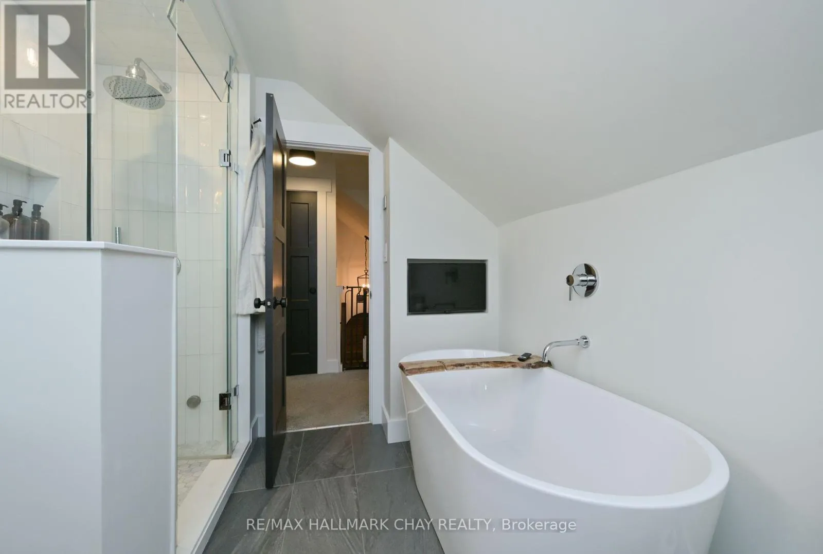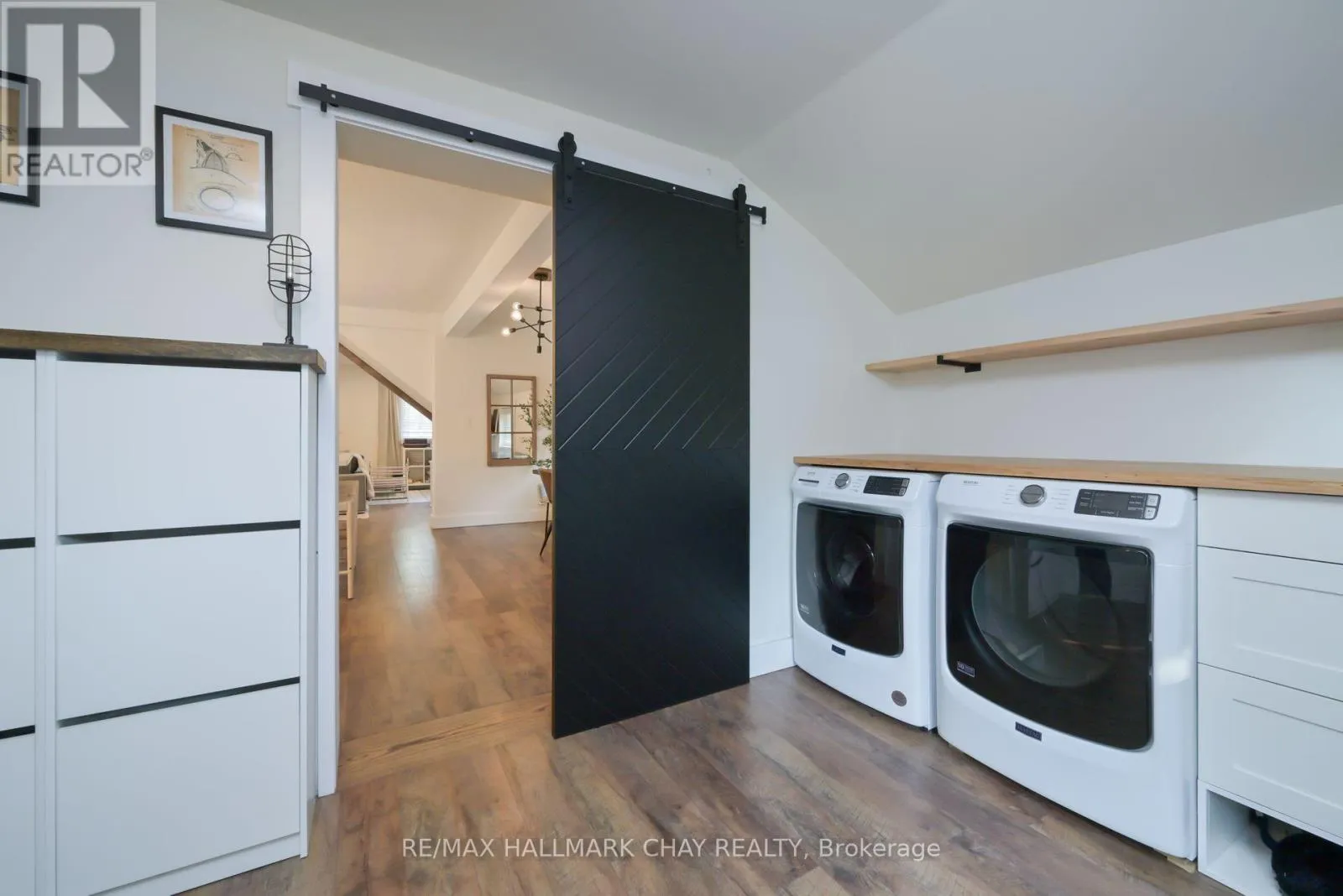 Cross Streets: Church & Albert. ** Directions: Church and Albert. Welcome to this stunning, move-in ready detached century home located right in the vibrant heart of Alliston! Double Wide Lot with Potential to Sever! Fully renovated from top to bottom with no detail overlooked, this home combines modern design, quality craftsmanship, and a prime location. Step inside to discover a bright and airy open-concept layout featuring brand new flooring, pot lights, and stylish finishes throughout. The custom kitchen is a chefs dream, boasting quartz countertops, High end stainless steel appliances, gas stove, sleek cabinetry, and a spacious island perfect for entertaining. Spacious living room with built in napoleon gas fireplace, built in storage and pot lights.Gorgeous Main floor laundry/mudroom with custom sliding door and 2pc powder room.Upstairs, you'll find generously sized bedrooms with closets and beautifully updated bathroom with freestanding tub and glass steam shower, towel warmer and Tv.Outside, enjoy a private backyard perfect for summer gatherings or cozy evening fires. Fully fenced yard with 2 side gates, and new rear deck and pergola . Fully finished, heated and insulated detached garage currently used as a private home gym. All major systems have been updated including Furnace, AC, 200amp panel, siding/soffits, windows, doors, napoleon gas fireplace and more, giving you peace of mind for years to come. 2 separate newly paved driveways with extra parking for trucks, trailers and toys. Located within walking distance to downtown , shops, restaurants, schools, and parks! (id:27476)