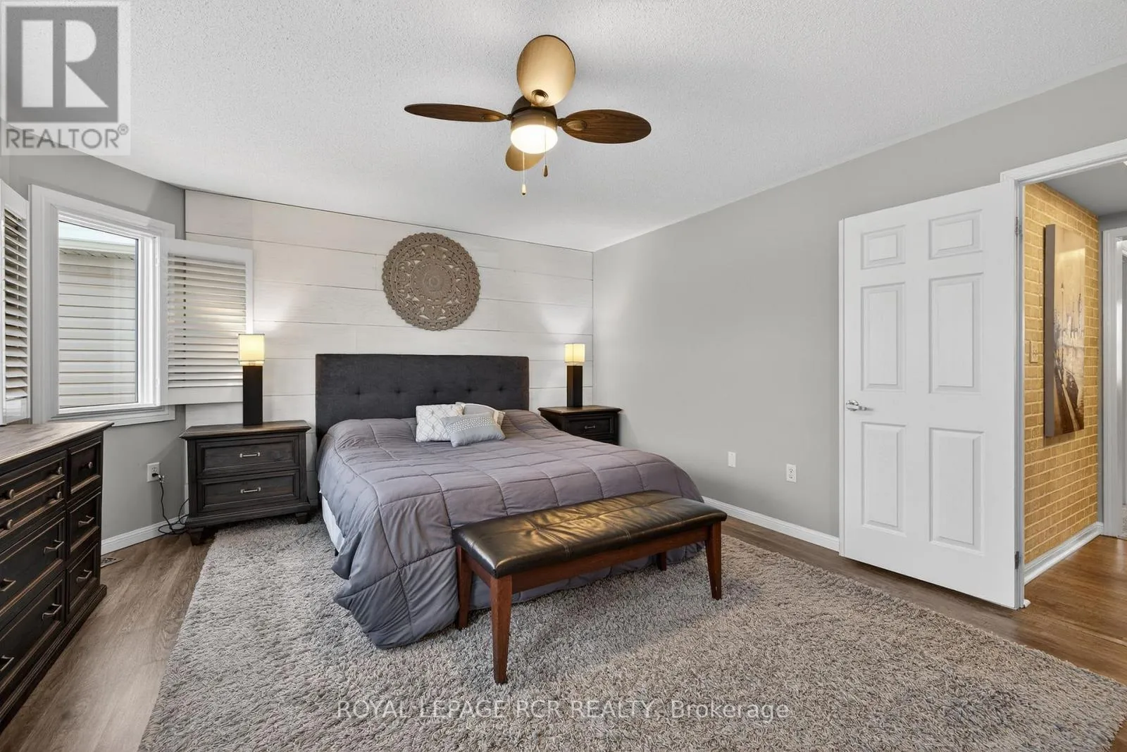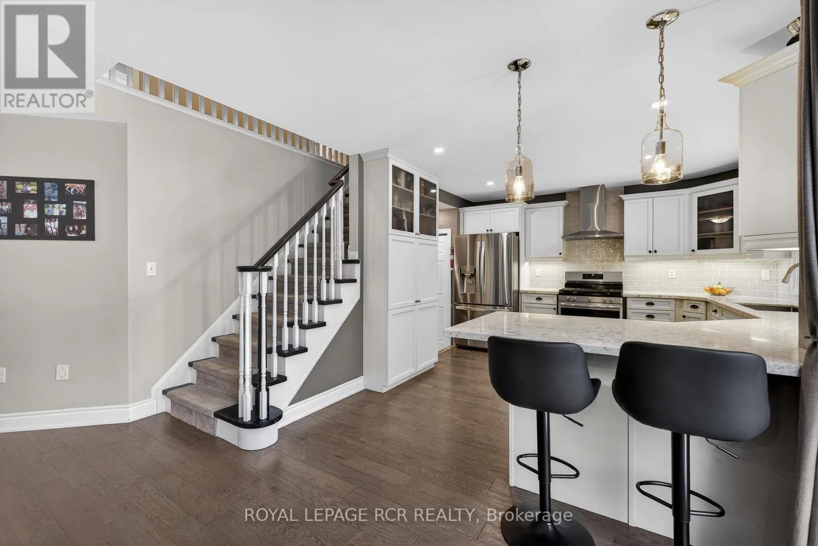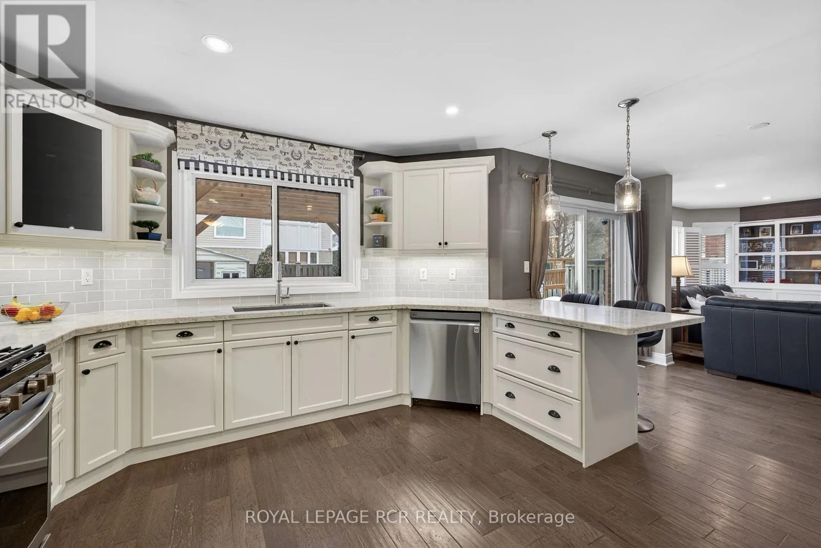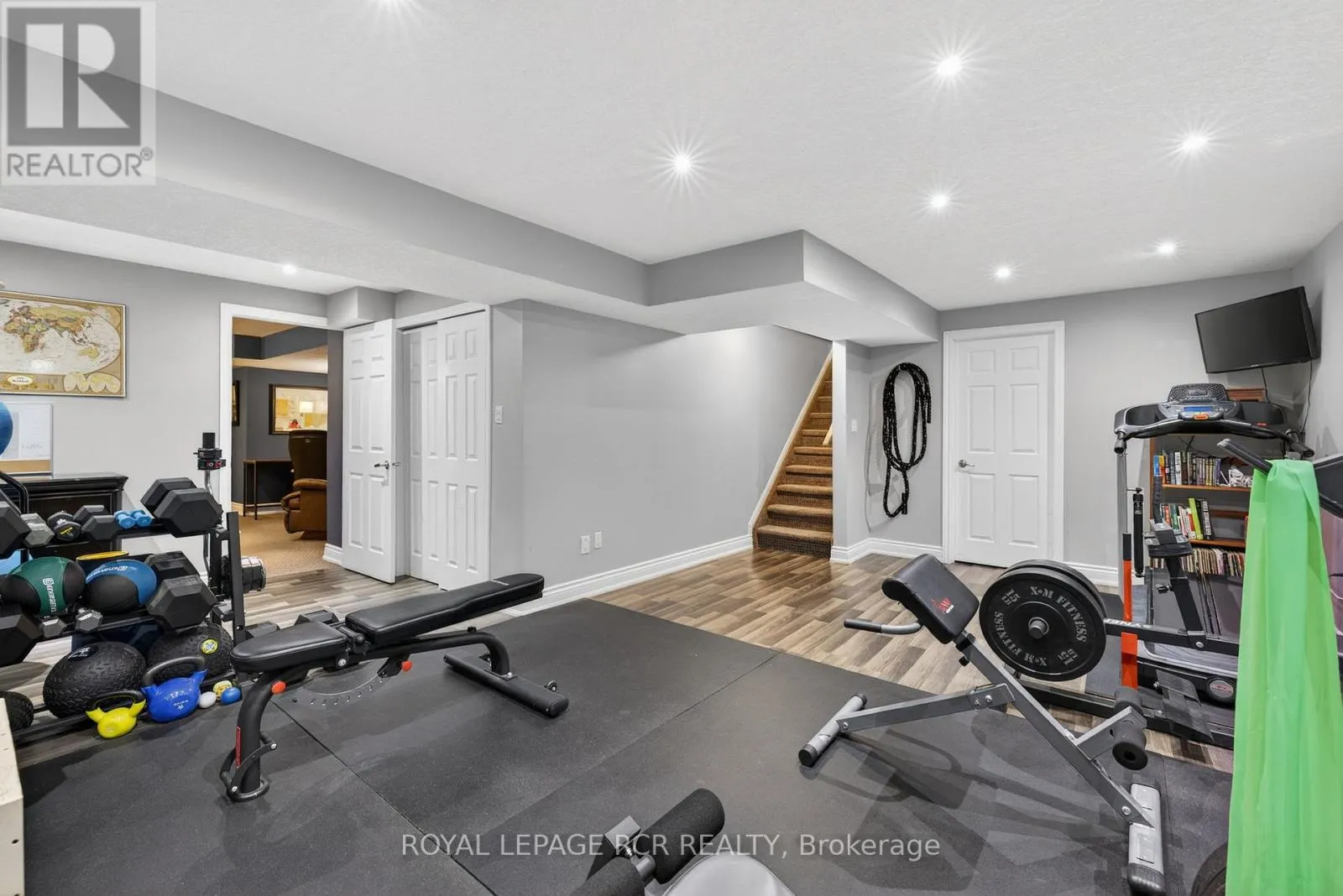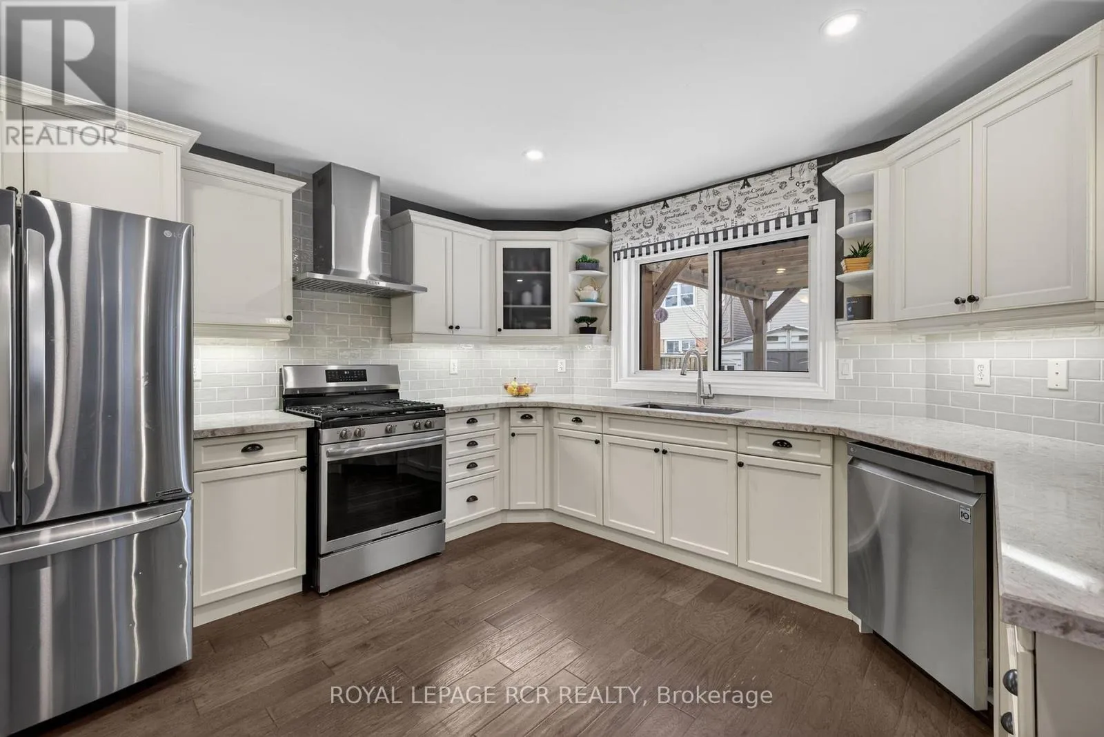 Cross Streets: Victoria & Boyne. ** Directions: John W Taylor Ave & Kidd Cres. Splendid Mattamy 4 bedroom, 3 bathroom "Inverness" model home, 2403 sq ft and finished basement. Renovated family home with spacious open concept design, upgraded stylish kitchen with quartz countertops and filled with natural light. Primary bedroom with walk-in closet, changing bench and 4pc ensuite. Convenient 2nd floor laundry. Large living room with gas fireplace. Lower level features a full gym and private movie theatre room. Immaculate lawn/gardens with new patio and pergola for outdoor enjoyment and entertaining. Close to walking trails, Boyne River. **Shingles (2022), Furnace (2024), new windows & doors (2021), newer appliances. (id:27476)