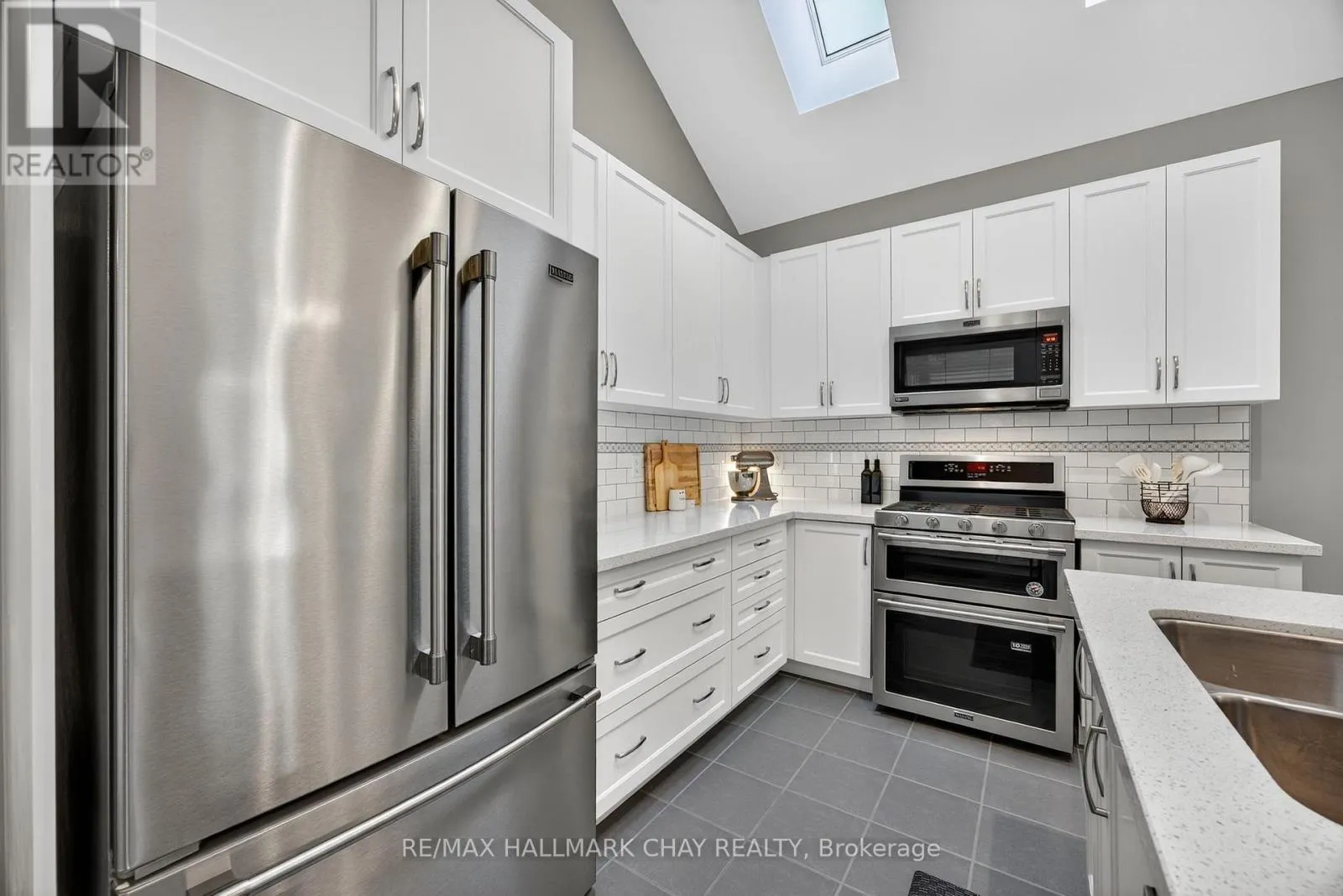 14th Line / Ponte Vecchio Ln Stunning Bungalow Townhome in the luxurious adult lifestyle community of Briar Hill! This "like new" home has been immaculately maintained and updated by the original owner. The bright, open-concept main floor features soaring vaulted ceilings, two skylights, and an oversized patio door that fills the space with natural light. Enjoy hardwood floors and an upgraded trim package throughout the main level, including the spacious primary bedroom. The modern white kitchen boasts quartz countertops, a large island, and an upgraded pantry wall offering ample storage. The primary suite includes two closets and a private ensuite bathroom. A versatile front den provides flexibility to suit your lifestyle-perfect as an office, gym, sitting room, or second bedroom. The garage offers both inside access and direct backyard access for maximum convenience. The peaceful, private backyard features a raised deck and lower interlocked patio, ideal for entertaining or relaxing. Fully finished basement includes oversized above grade windows, guest room retreat, a spa-inspired bathroom with an upgraded Jacuzzi tub, a cozy rec room with a gas fireplace, a full-sized laundry room with a sink, and a massive storage area. Nat Gas BBQ Hook Up. Custom Window Coverings. Garage Door Opener. Professionally Painted. Located in a scenic, quiet community surrounded by golf courses and rolling hills, this property combines comfort, convenience, and an active lifestyle. Condo fees cover exterior maintenance including windows, roof, driveway, snow removal, and lawn care. (id:27476)