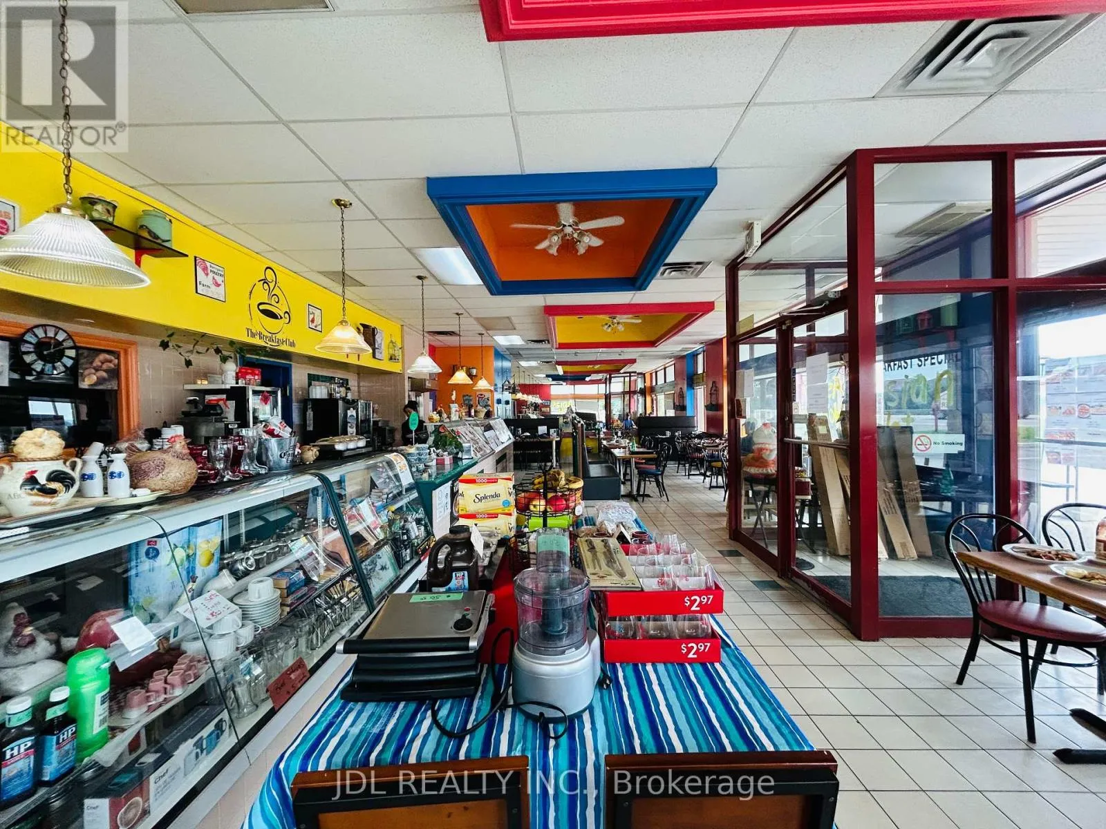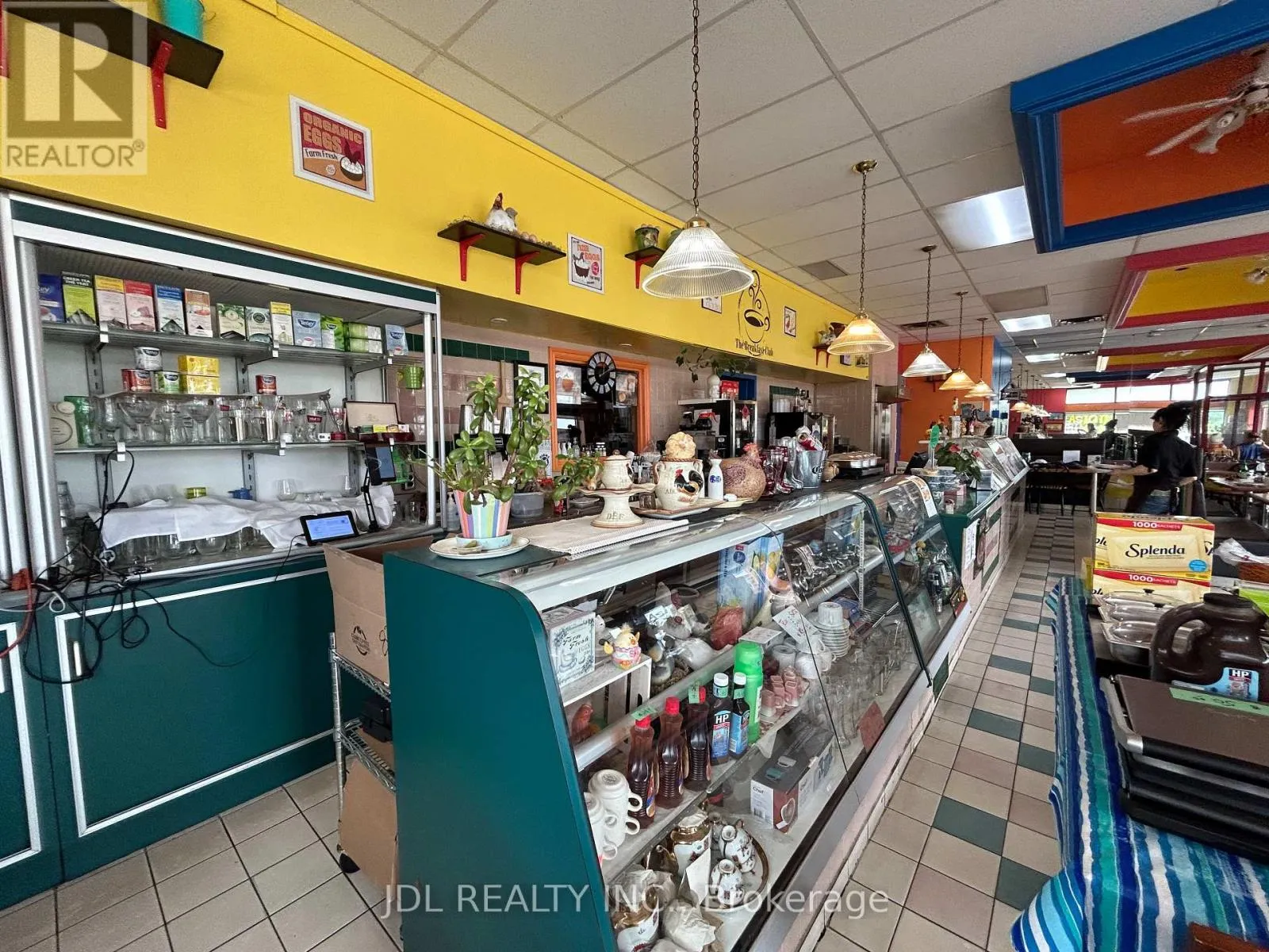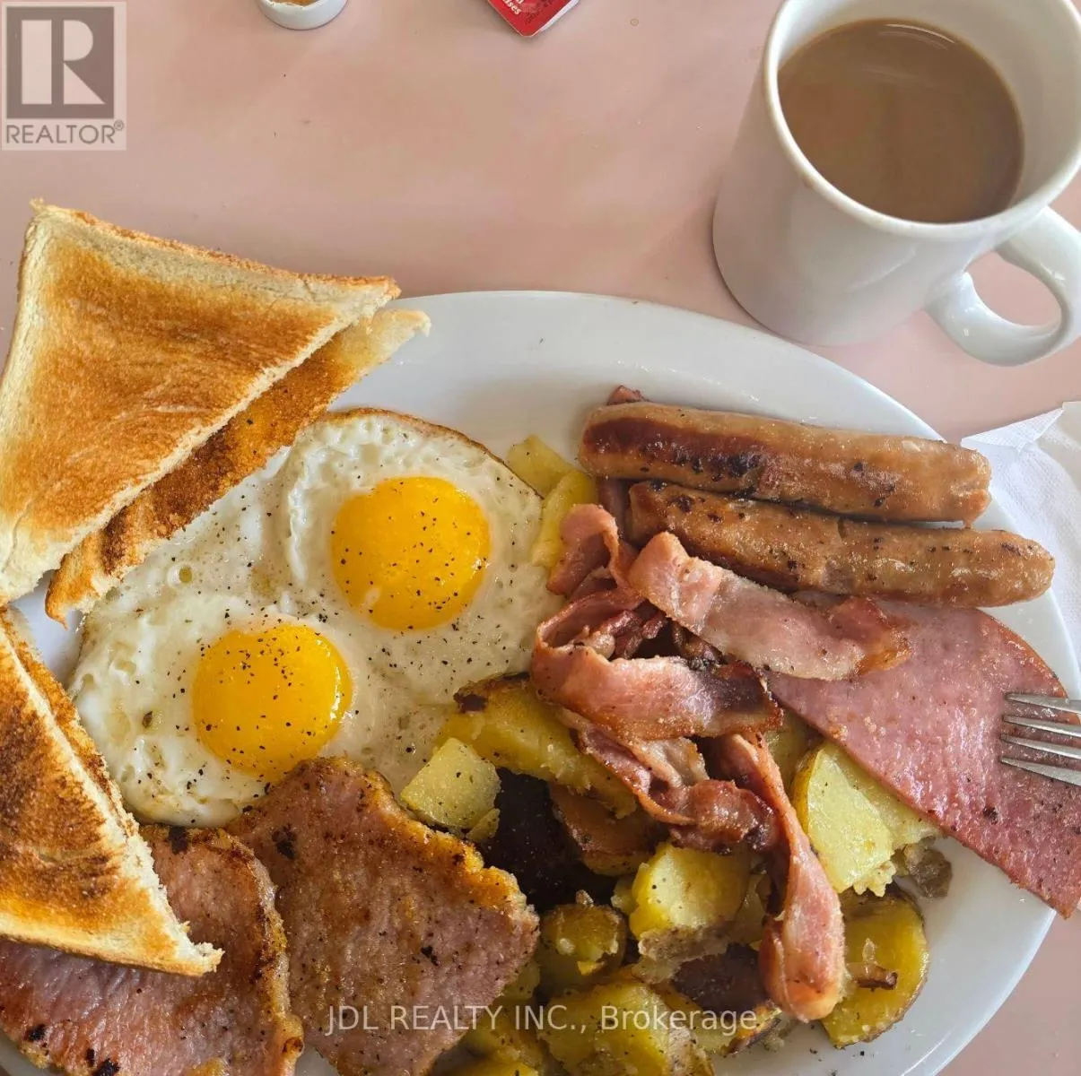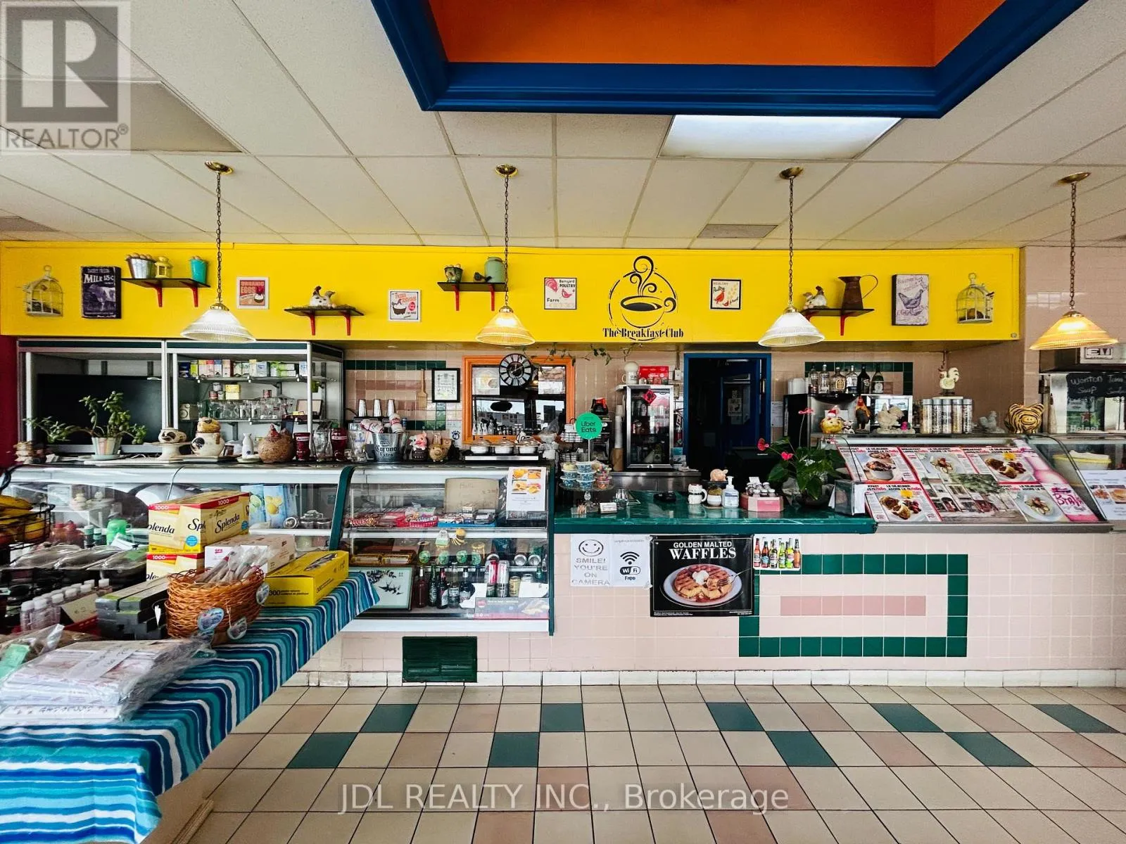 Cross Streets: Hwy 27 / Hwy 9. ** Directions: Lockbox. HIGH-EXPOSURE RESTAURANT OPPORTUNITY AT A MAJOR HIGHWAY INTERSECTION. Acquire The Breakfast Club, strategically positioned at the Extremely Busy intersection of Hwy 27 & Hwy 9 in the King City / New Tecumseth corridor, one of the region's strongest traffic nodes. This location benefits from constant vehicular flow, exceptional visibility, and immediate proximity to established residential communities, drawing customers from surrounding neighbourhoods and daily commuters alike. The restaurant features 54 seats and supports a highly flexible menu concept, including all-day breakfast and hot Asian cuisine, allowing operators to maximize revenue across multiple dayparts. Gross rent is approximately $4,800 per month, a compelling figure for such a prime intersection, with a 5-year renewal lease agreement available, providing long-term security and affordable occupancy costs. Ideal for investors or experienced operators seeking a high-traffic, value-priced lease with strong upside potential. Suitable to continue the current operation, enhance marketing, extend hours, or rebrand into a high-volume concept. Rare opportunity to secure a corner-location restaurant with highway exposure at an attractive rent level. (id:27476)