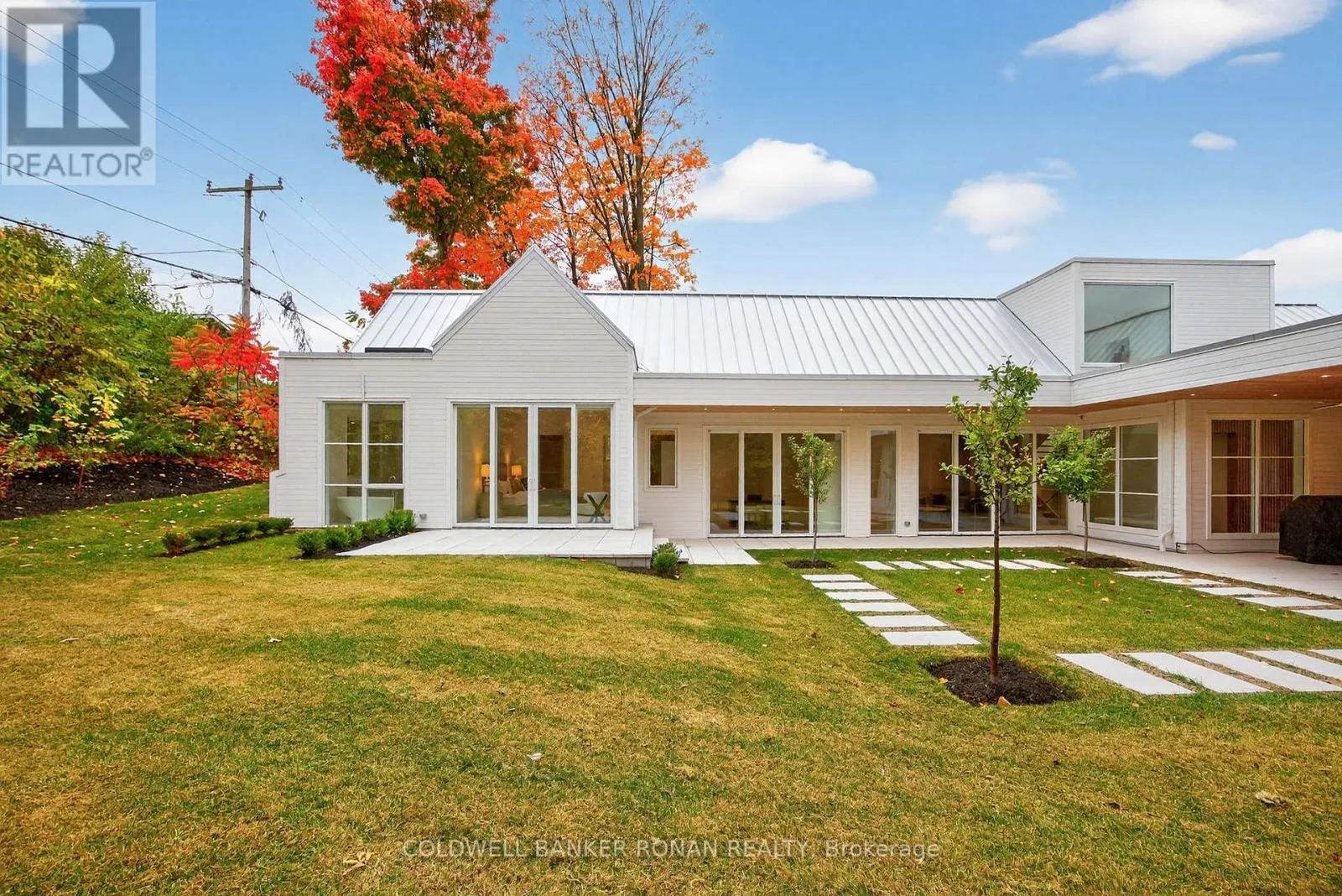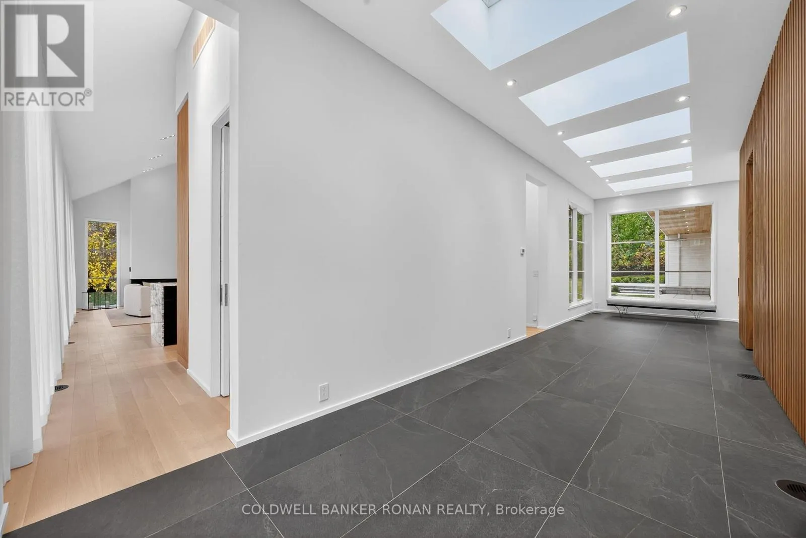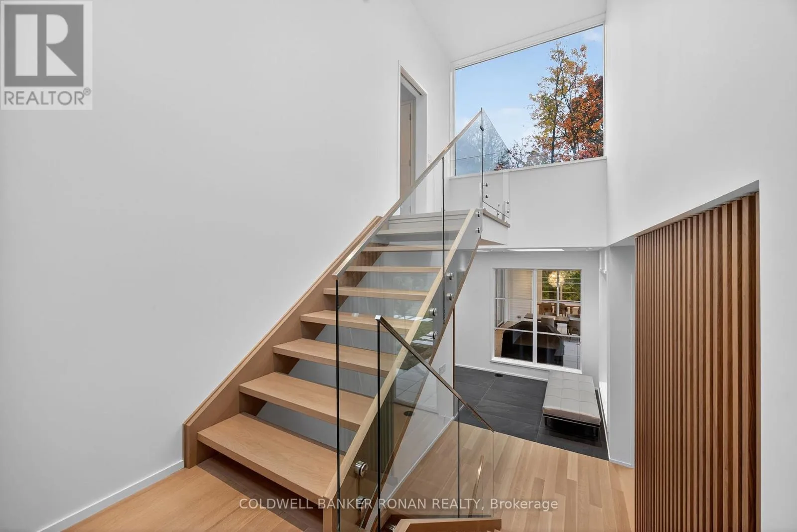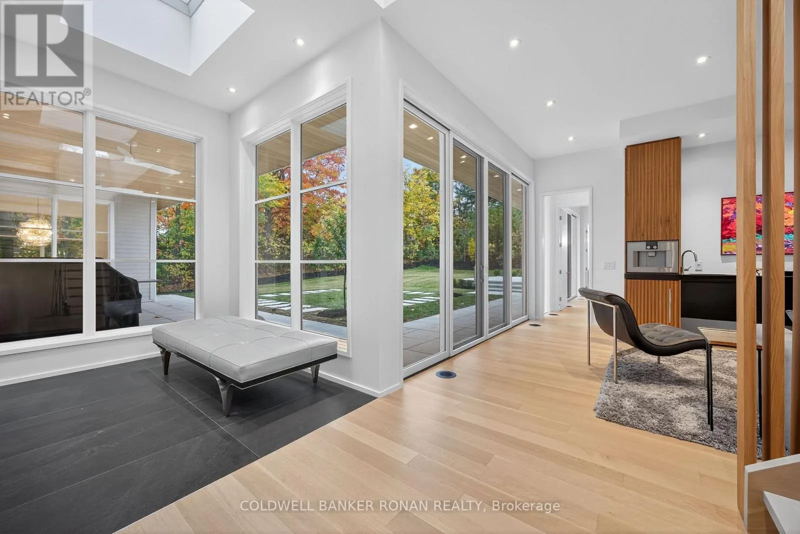 Banting Dr - Gray Ave Modern luxury living in this breathtaking Forest View Home, crafted by Georgio Lolos Designs w/ interiors curated by ABella Design Inc. This stunning property is built with an eye for elegance & functionality. Step into the home through a custom wood slatted wall foyer. Six skylights flood the space with natural light. Open riser, Hollywood stairs w/ sleek glass railings lead to a private bedroom retreat over the garage. Specialty lighting highlights the grandeur of the 18-foot A-frame vaulted ceiling in the main living area, creating an inviting ambiance around the 50" gas fireplace clad in black soapstone. The home showcases 6' White Oak flooring throughout for a seamless & warm finish. The powder room impresses w/ a Starck wall-hung toilet, integrated marble sink & an exquisite book-matched Bianco Lasa marble wall. The heart of the home features a dream kitchen, equipped w/ walnut cabinetry, an impressive 14-foot waterfall island & a handcrafted 50' Julien sink. Grey Lilac marble adorns the kitchen & pantry, complemented by full-slab backsplashes. Cooking is elevated w/ a 36' Gaggenau induction cooktop, 30' Gaggenau wall oven, fully integrated 36' Thermidor fridge & Bosch dishwasher. The custom range hood & gold fixtures adds an elegant touch while a wine fridge in the pantry & a wall mounted pot filler over the stove round out the space's luxury. The TV lounge features a built-in Gaggenau coffee maker & beverage fridge, elegantly integrated into custom cabinetry & a sophisticated walnut accent wall. Each bedroom offers an ensuite bathroom & custom closets. Primary ensuite is a private oasis w/ custom wall hung vanity, a luxurious Knief, K-Stone tub, a wall-mounted AeT DOT 20 Italia toilet, an oversized shower towel warmer. Laundry room is carefully designed, with beautiful cabinetry, clothes drying area & a custom dog wash station. A must see property for those seeking a refined yet comfortable living experience. (id:27476)