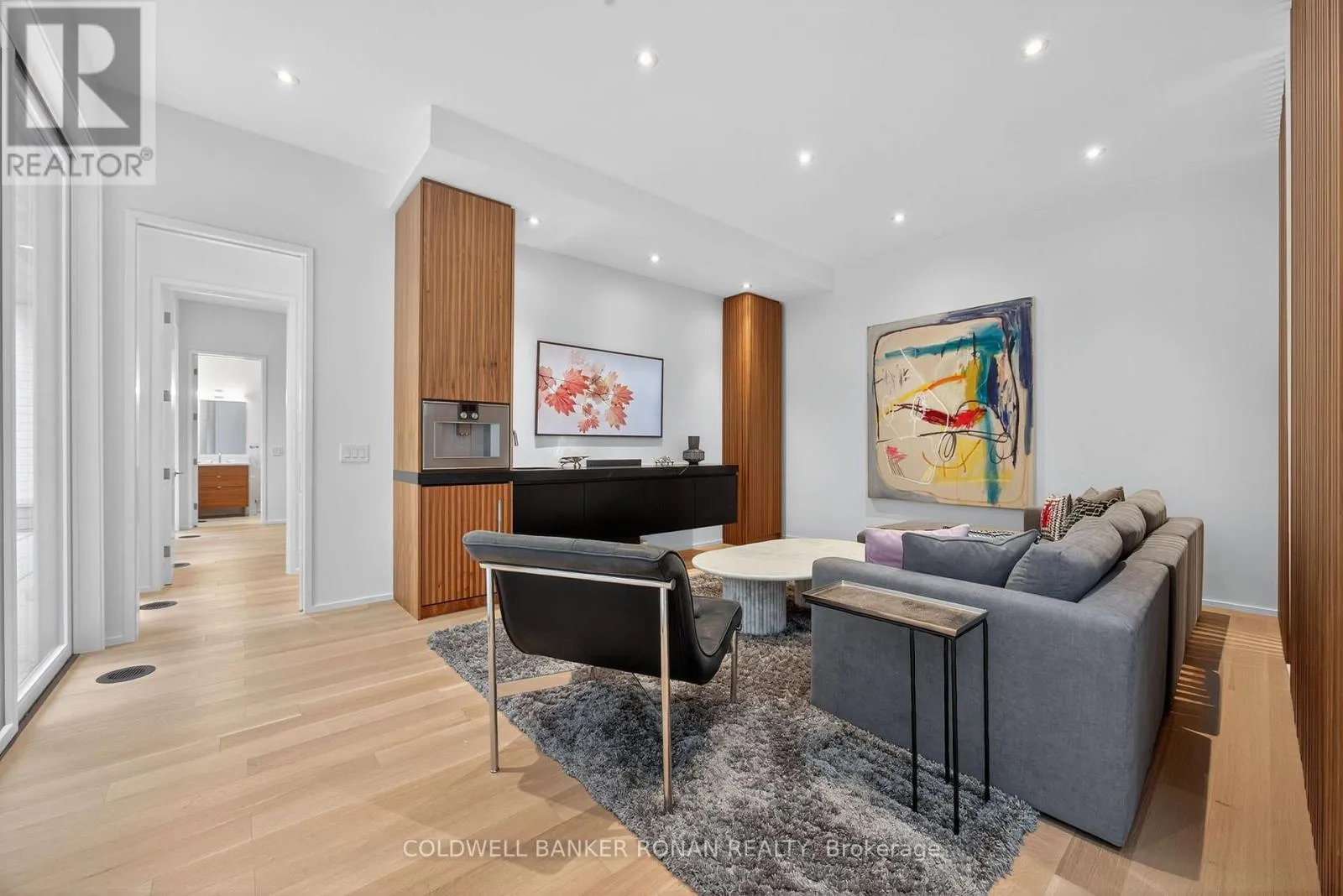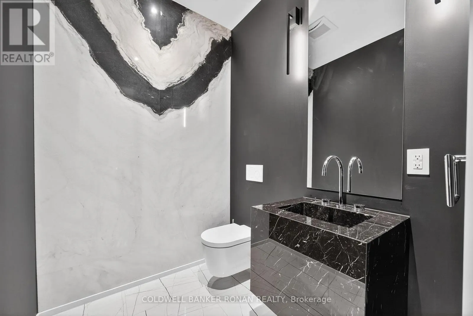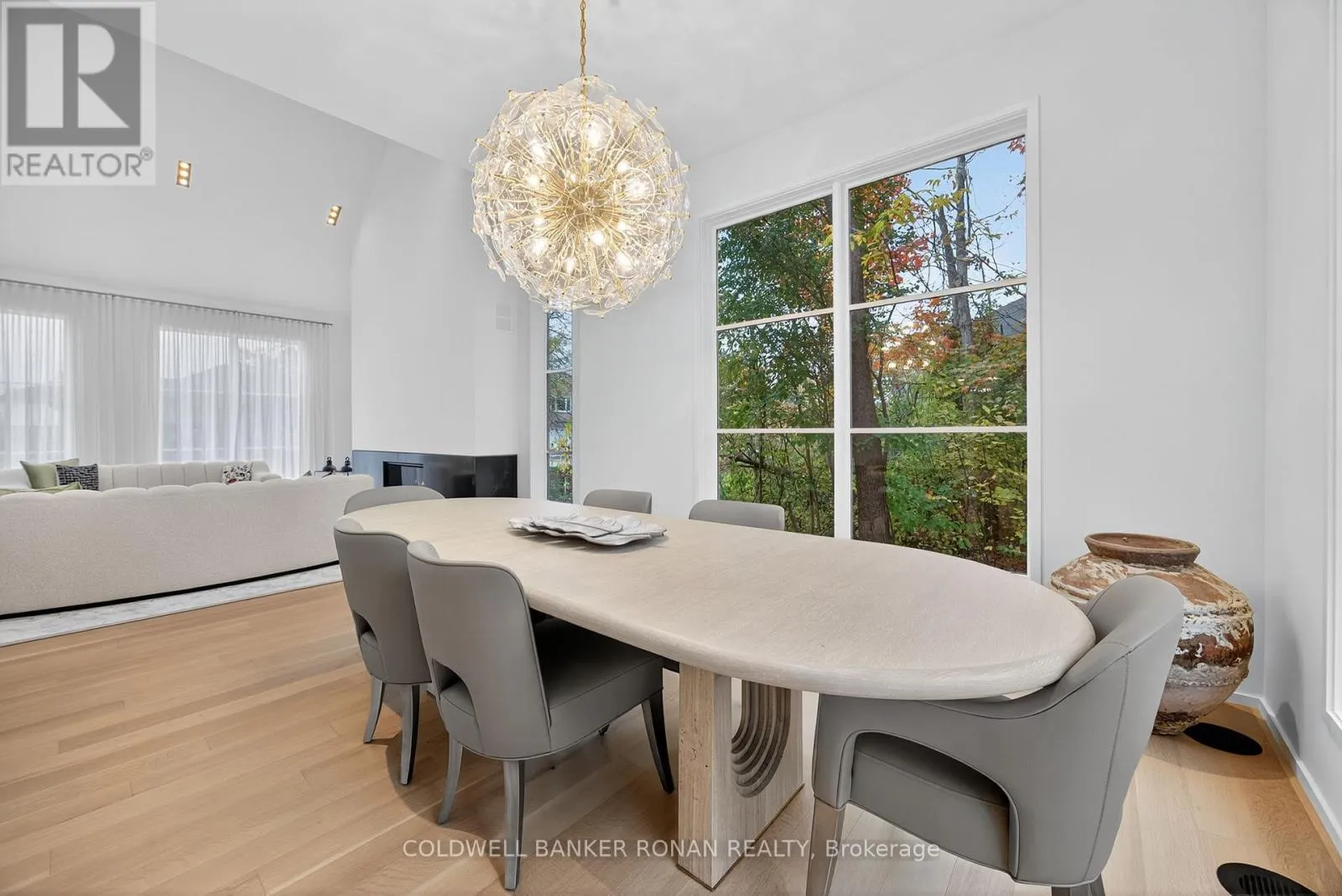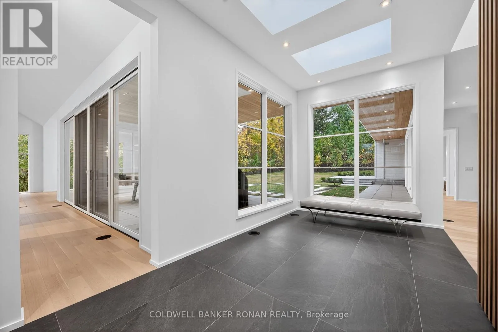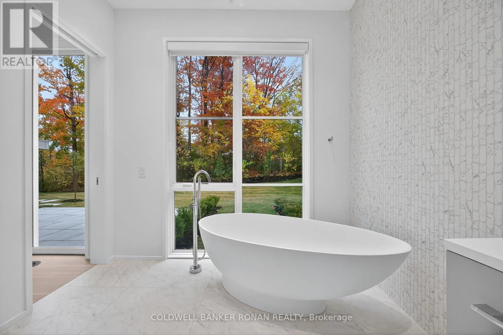 Banting Dr - Gray Ave Modern luxury living in this breathtaking Forest View Home, crafted by Georgio Lolos Designs w/ interiors curated by ABella Design Inc. This stunning property is built with an eye for elegance & functionality. Step into the home through a custom wood slatted wall foyer. Six skylights flood the space with natural light. Open riser, Hollywood stairs w/ sleek glass railings lead to a private bedroom retreat over the garage. Specialty lighting highlights the grandeur of the 18-foot A-frame vaulted ceiling in the main living area, creating an inviting ambiance around the 50" gas fireplace clad in black soapstone. The home showcases 6' White Oak flooring throughout for a seamless & warm finish. The powder room impresses w/ a Starck wall-hung toilet, integrated marble sink & an exquisite book-matched Bianco Lasa marble wall. The heart of the home features a dream kitchen, equipped w/ walnut cabinetry, an impressive 14-foot waterfall island & a handcrafted 50' Julien sink. Grey Lilac marble adorns the kitchen & pantry, complemented by full-slab backsplashes. Cooking is elevated w/ a 36' Gaggenau induction cooktop, 30' Gaggenau wall oven, fully integrated 36' Thermidor fridge & Bosch dishwasher. The custom range hood & gold fixtures adds an elegant touch while a wine fridge in the pantry & a wall mounted pot filler over the stove round out the space's luxury. The TV lounge features a built-in Gaggenau coffee maker & beverage fridge, elegantly integrated into custom cabinetry & a sophisticated walnut accent wall. Each bedroom offers an ensuite bathroom & custom closets. Primary ensuite is a private oasis w/ custom wall hung vanity, a luxurious Knief, K-Stone tub, a wall-mounted AeT DOT 20 Italia toilet, an oversized shower towel warmer. Laundry room is carefully designed, with beautiful cabinetry, clothes drying area & a custom dog wash station. A must see property for those seeking a refined yet comfortable living experience. (id:27476)