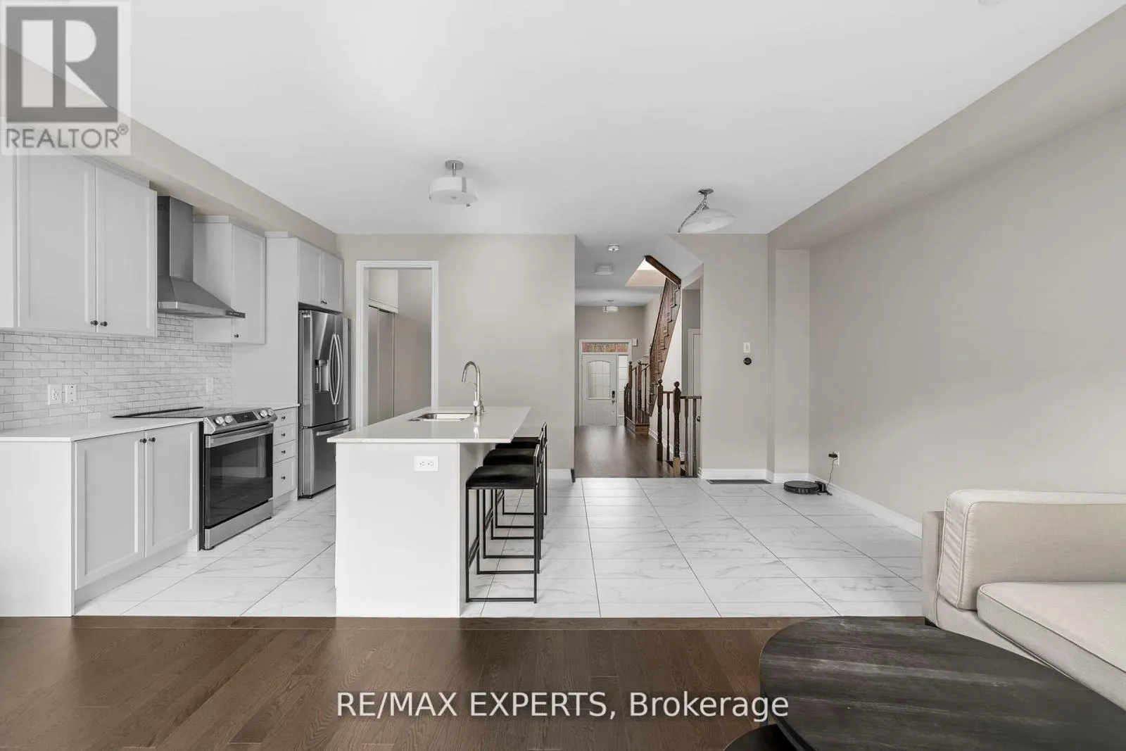 Clifford and Turner Beautifully maintained and move-in ready, this spacious open-concept 3 bedroom, 3 bathroom townhome offers both style and functionality. The main floor features 9-foot ceilings, a modern kitchen with an oversized island and stainless steel appliances, along with a bright living and dining area complete with hardwood floors and a walkout to a private fenced yard. Upstairs, the large primary bedroom includes an oversized walk-in closet and a 4-piece ensuite, while the second floor also offers a convenient laundry room with an oversized linen closet. a monthly POTL fee of $291.65 applies. Steps to local amenities, schools, parks, and major highways, this home is an excellent choice for first-time buyers or those looking to downsize. Tottenham is a welcoming community with a small-town feel, excellent schools, parks, and family-friendly amenities, making it a wonderful place to grow and raise a family while still enjoying easy access to the GTA. (id:27476)