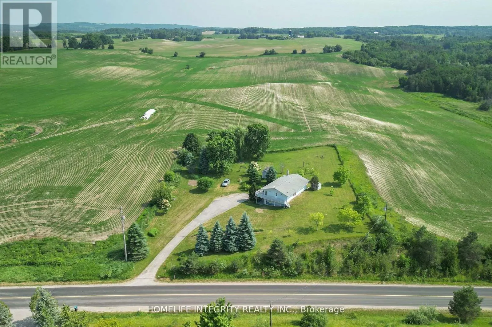 Cross Streets: 4th Line and Town Line. ** Directions: North on Tottenham Rd, West on Fourth Line. The best of both worlds with this country Bungalow set on lovely rolling hills yet only 2 mins drive into town. It does no harm to be across the road from the prestigious Woodington Lakes Golf Course either! The 1 acre mature lot of fruit trees, grapevines and berries, has great views in every direction, gorgeous sunrise & sunsets can be enjoyed relaxing on the upper level balcony or multiple walkouts throughout the house. Built in 1990, the always desirable, raised bungalow design is all open concept with windows everywhere for a lovely light and bright interior on both the upper and lower levels . Inside we have hardwood floors in the combined living dining and kitchen areas and Berber in the bedrooms with the master bedroom having a walk in closet . The fully finished basement again open concept and the added bonus of 9 ft ceilings and large above grade windows feels spacious and welcoming. The lower level having a good sized eat In kitchen, living Room, 4th bedroom and 3 Pc bathroom . Bell fiber is being laid to the roadside . The water system includes a UV and reverse osmosis set up with a new water softener . Town is the family friendly community of Tottenham with all your needs for schools, shops, parks, eating out and recreation. (id:27476)