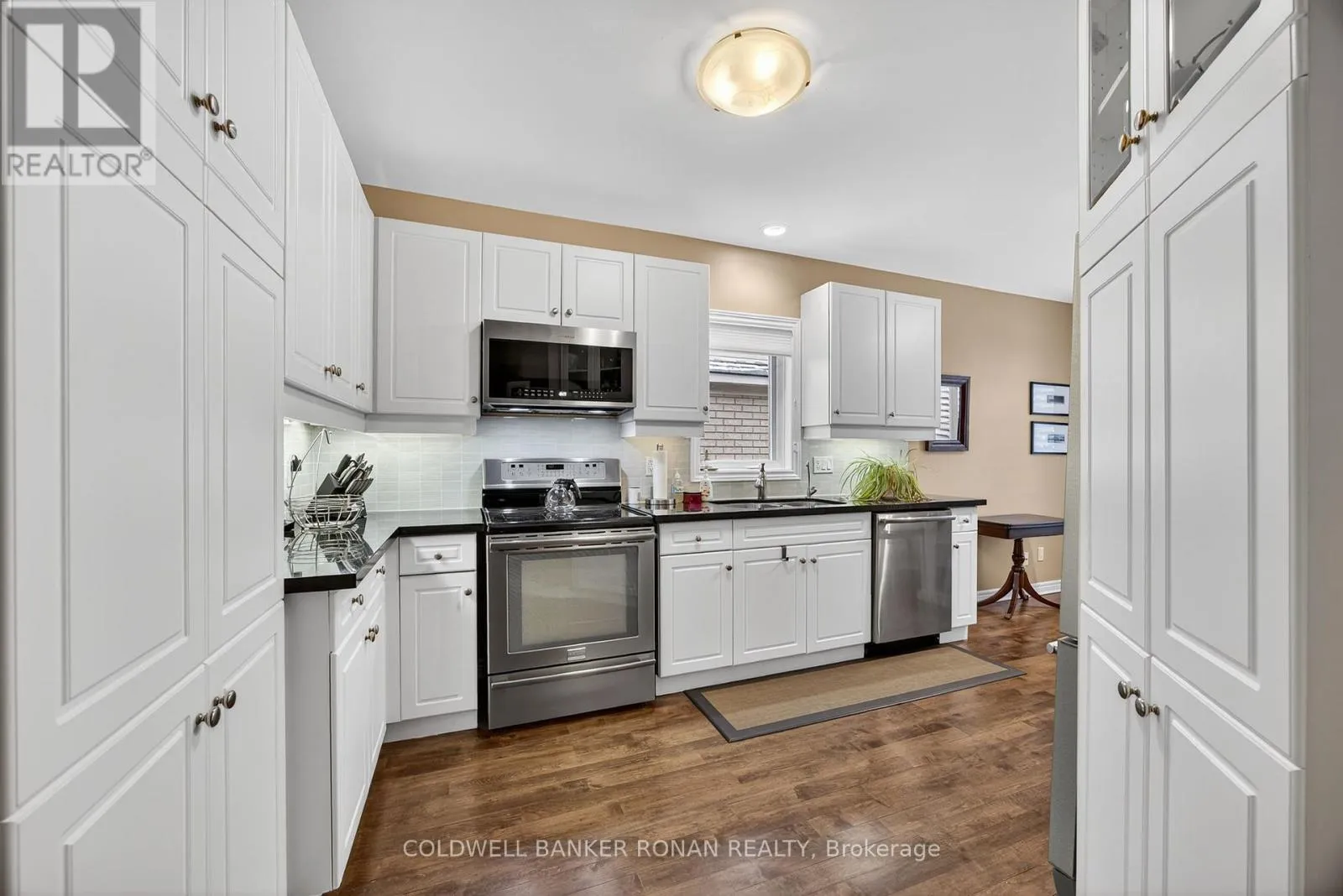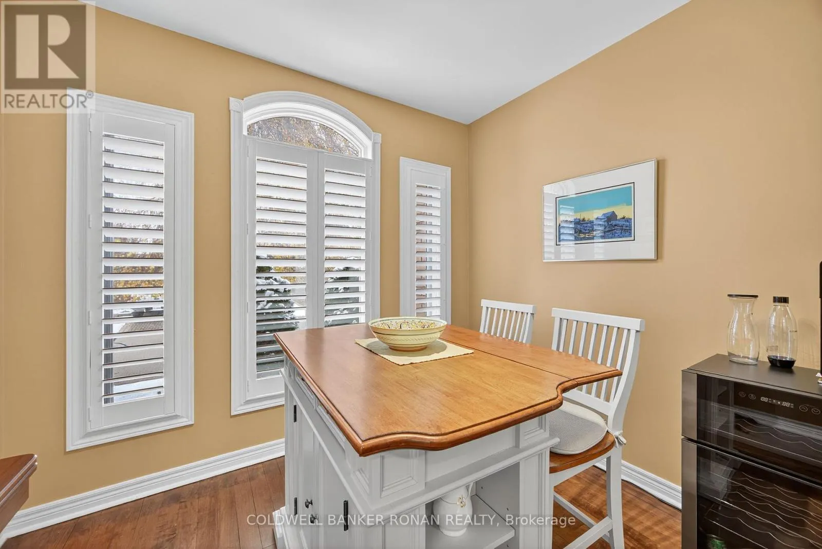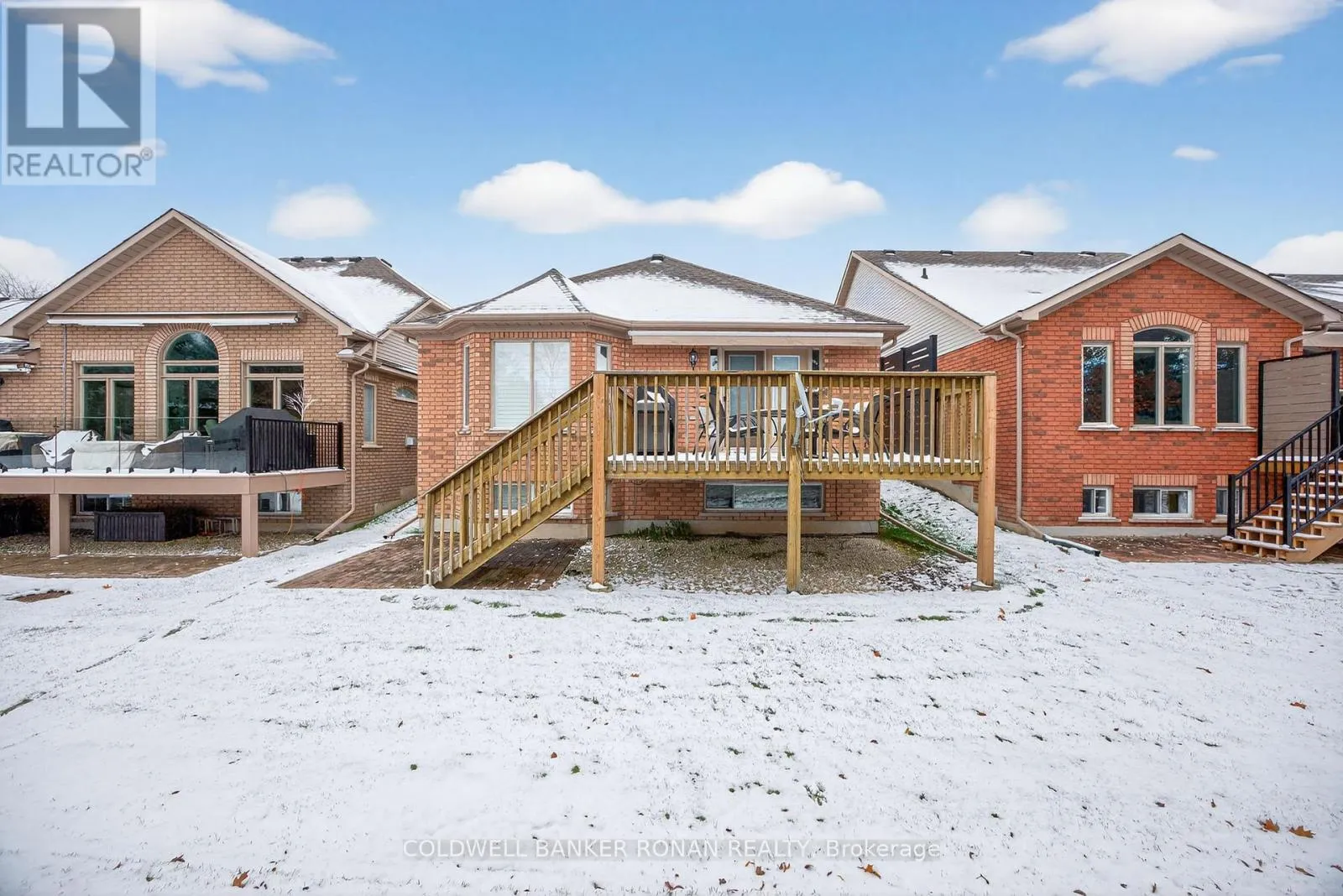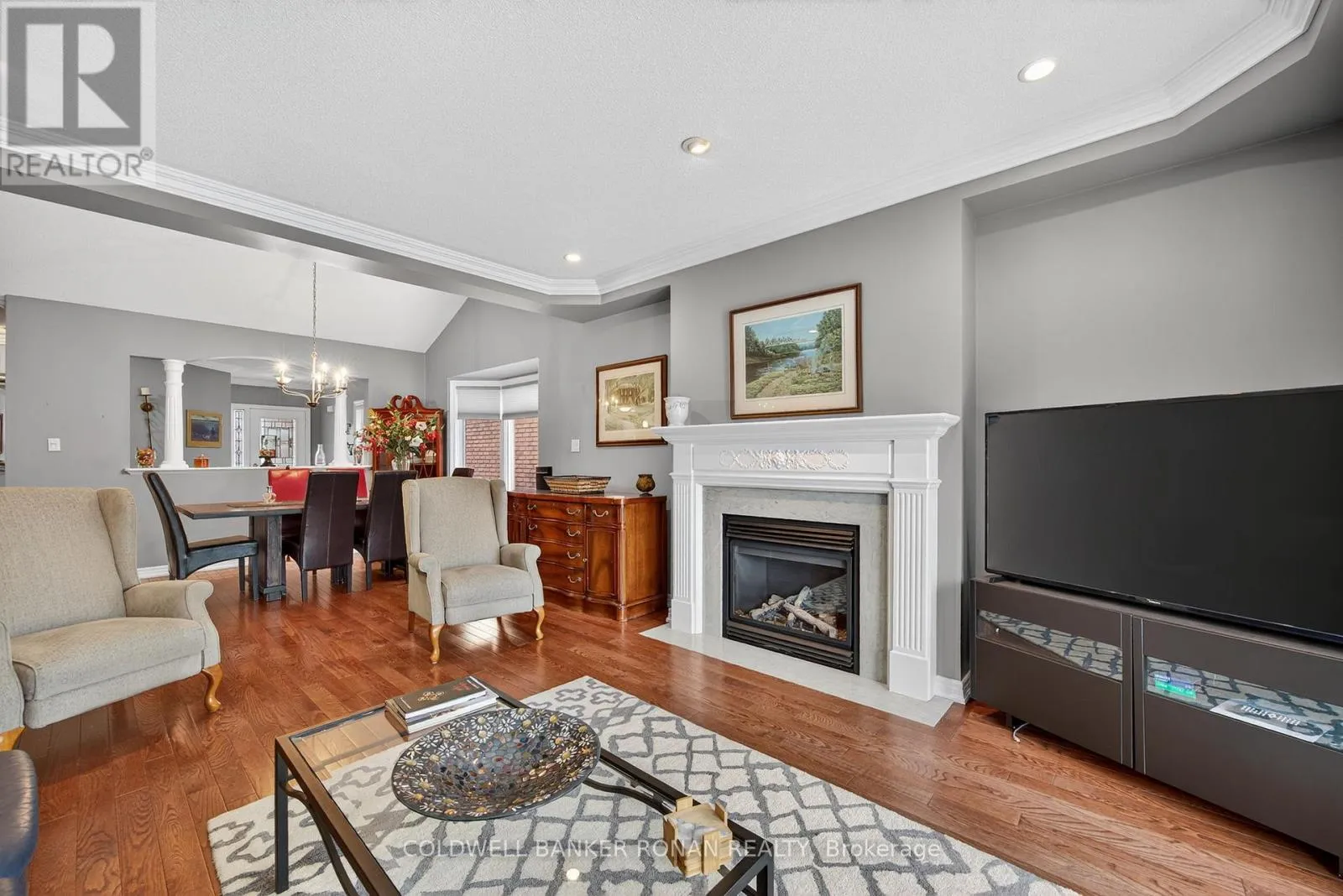 Cross Streets: Briar Gate Way & Via Amici. ** Directions: HWY 89 / CW Leach / Briar Gate. Charming Detached 1+1 Bedroom Bungalow Overlooking the Golf Course. This beautifully maintained bungalow offers peaceful living with a private deck backing onto the golf course. The primary bedroom features hardwood flooring, double closets, and a private ensuite. The bright eat-in kitchen includes ample cabinetry and a large bay window. The combined living and dining area boasts hardwood floors, a cozy gas fireplace, and a walkout to the deck. Convenient main-floor laundry is included. The lower level extends your living space with a spacious family room, an additional bedroom, and generous storage areas. The home also includes a single-car garage and an interlock driveway with parking for two vehicles. Enjoy all the amenities of the Briar Hill community while being just minutes from the town of Alliston. (id:27476)