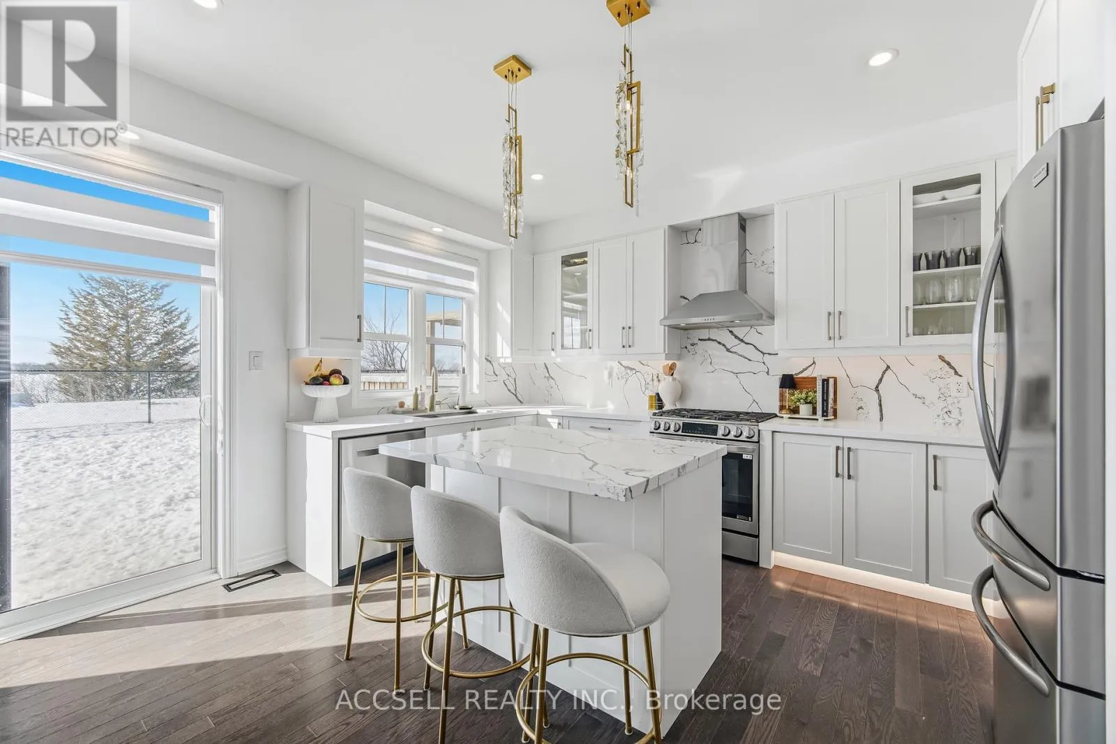 8th Line And 10th Sideroad Experience Elevated Living On A Premium Ravine Lot Offering Breathtaking Sunsets, Tranquil Greenery, And Complete Backyard Privacy With No Rear Neighbours. This Beautifully Upgraded Home Blends Modern Sophistication With Everyday Comfort In A Serene, Conservation-Surrounded Setting. From The Moment You Arrive, Professionally Refinished Front Entry & Garage Doors Create Striking Curb Appeal. Inside, Featuring Over $100k+ In Upgrades. A Full Interior Repaint And Smooth Main-Level Ceilings Deliver A Fresh, Contemporary Aesthetic, Complemented By Pot Lights Throughout The Home Integrated W/ Smart Switches For Seamless Ambiance Control. The Open-Concept Layout Is Flooded W/ Natural Light & Features Engineered Hardwood Flooring On The Upper Level. A Custom TV Feature Wall W/ Ambient Backlighting & Built-In Cabinetry Anchors The Living Space In Style. The Gourmet Kitchen Showcases Fully Upgraded Cabinetry, Under-Cabinet Lighting, Granite Countertops, A Custom Backsplash, Premium Appliances, And A Gas Stove (Only 3 Months Old), Complete With A Dedicated Gas Line For Both The Stove And Outdoor BBQ. A True Showpiece, The Custom Floor-To-Ceiling Glass Wine Cellar Accommodates 96 Bottles & Features Designer Lighting, A Statement Feature Wall, And Reinforced Basement Flooring For Structural Integrity. Upstairs, The Primary Suite Is A Private Retreat With Large Windows Overlooking The Ravine, A Spa-Inspired 5-Piece Ensuite, And A Spacious Walk-In Closet W/ Custom Built-Ins. Additional Bedrooms Offer Double Closets And Access To Another 5-Piece Bathroom. Additional Highlights Include: Professionally Installed 6-Camera Hardwired Smart Security System, Curated Designer Lighting Upgrades Throughout, All New Window Coverings, Upgraded Plumbing Fixtures, Custom-Built Closet Wall For Enhanced Organization, Mudroom And Laundry Room With Access To Double Car Garage, Unfinished Basement W/ Bathroom Rough-In, Ready For Personalization. (id:27476)