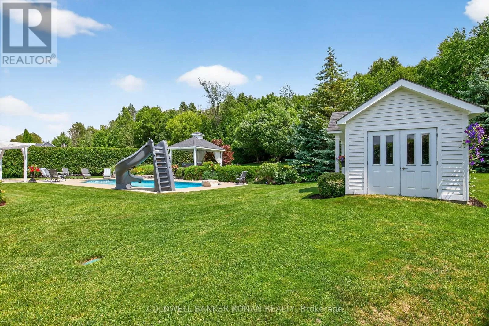 5th Line/Underhill Crt Welcome to Ridgehill Estates, located in Alliston, Ontario, where homes are rarely offered for sale. Just 45 minutes to the GTA, Alliston provides for tranquil living with all the amenities. Situated on just shy of an acre, this all brick & stone bungalow boasts luxury, elegance & beauty beginning at the tree-lined driveway that can accommodate many vehicles & boasts the most serene and completely private backyard oasis, surrounded by beautiful perennial gardens & offers an in-ground salt water pool, an elevated gazebo, a cabana/gardening shed & dining pergola. Fully fenced with privacy hedge plus in-ground sprinklers. The main floor of this bungalow has been completely renovated with high end finishes & lighting, including stunning kitchen with porcelain counters, an expansive eat at island, pantry, formal dining room with coffered ceiling, a cozy family room, a front living room /office, all three bathroom makeovers are a must see, upscale main floor laundry & mudroom off the 3 car garage & hardwood & beautiful modern porcelain tile flow throughout this sprawling 2382 sq ft home. On the lower level, you'll find another 2382 sq ft, with about half finished with an amazing rec room with kitchenette & bathroom, leaving plenty of room for a media room & nanny/in-law suite should you desire & is equipped with a backup generator. This lovely neighbourhood has 26.7 acres owned by the community & features many kilometres of exclusive forested walking trails & a social committee that organizes fun events throughout the year. Located just outside Alliston & only 10 min to Hwy 400. Award-winning golf is 5 min away, & ski hills & beaches are just a short drive. Perfectly suited for retirees or a young family looking to grow. (id:27476)
