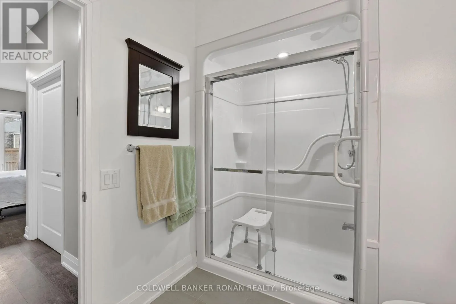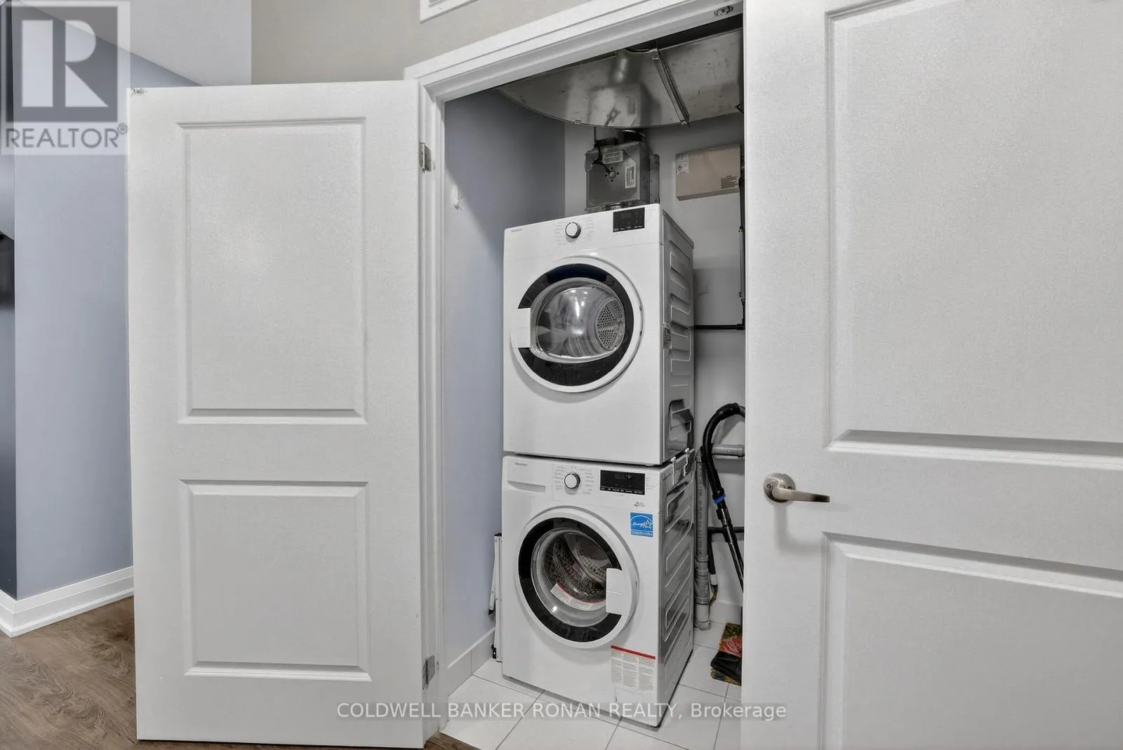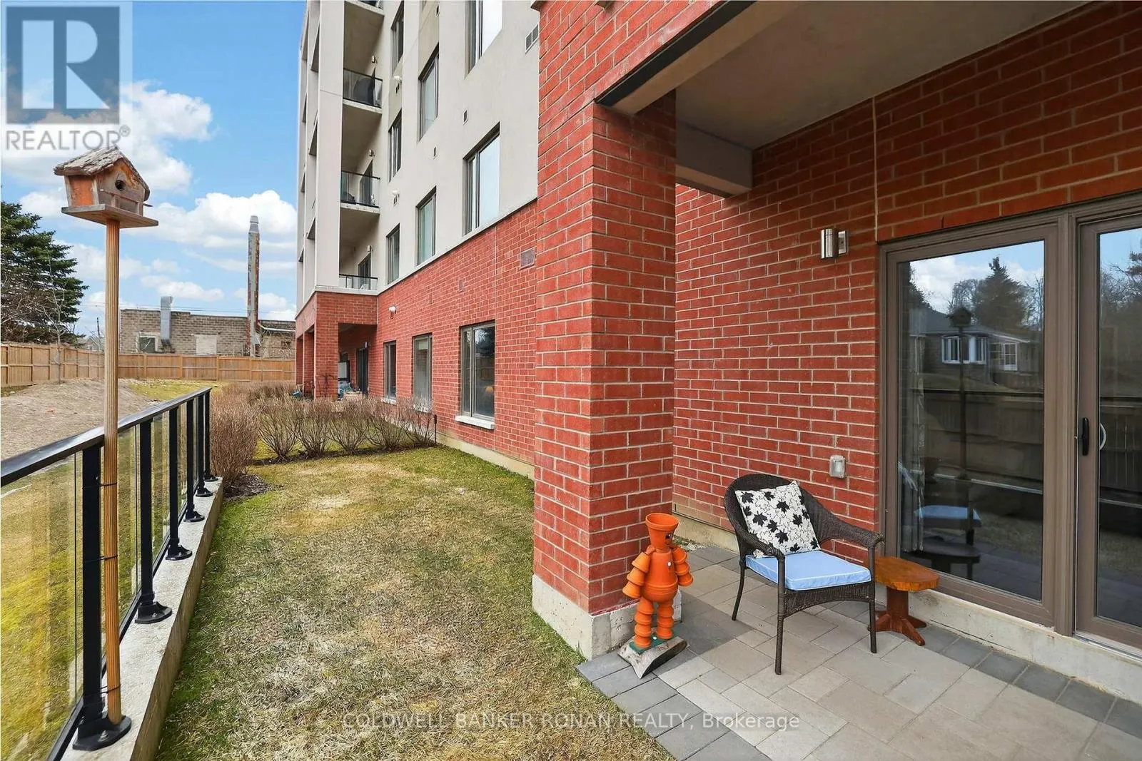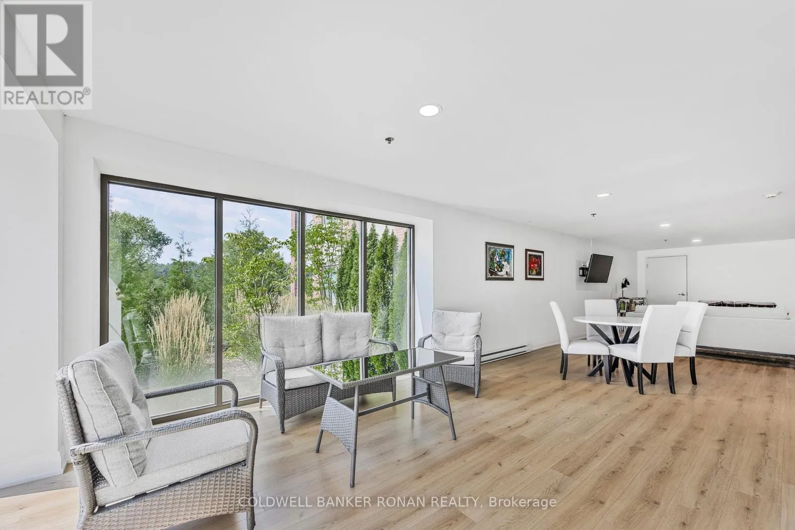 Queen St S & Dillane St W Welcome to easy, low-maintenance living in this beautiful ground-floor, 2-bedroom condo, offering the perfect blend of comfort and convenience. Enjoy direct walkout access to your private terrace, ideal for morning coffee, or quick access for pets and everyday living-no elevators required. Located in the sought-after Vista Blue building, this suite is steps from shopping, dining, and essential amenities. It is also surrounded by nature with the Trans Canada Trail and a nearby conservation area right at your doorstep. Inside, the thoughtfully designed open-concept layout is enhanced by 9-foot ceilings. The upgraded kitchen is both stylish and functional. The primary bedroom offers a walk-in closet and a 4-piece ensuite with double sinks and an oversized glass shower. A second bedroom provides flexibility for guests, a home office, or additional living space. Additional features include in-suite laundry, a convenient powder room, and underground parking for year-round comfort and security. Residents enjoy access to a well-maintained building featuring a welcoming party/games room with kitchen facilities and scenic views, ample visitor parking and accessible entry options. Move-in ready unit in a prime location. (id:27476)