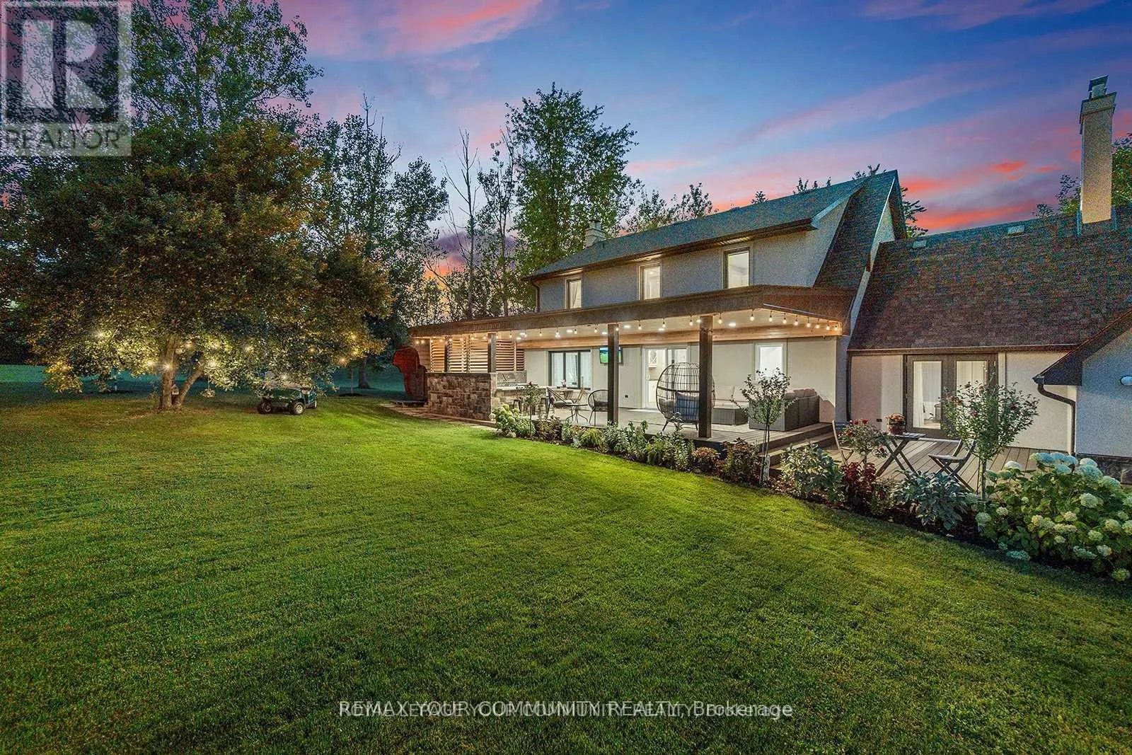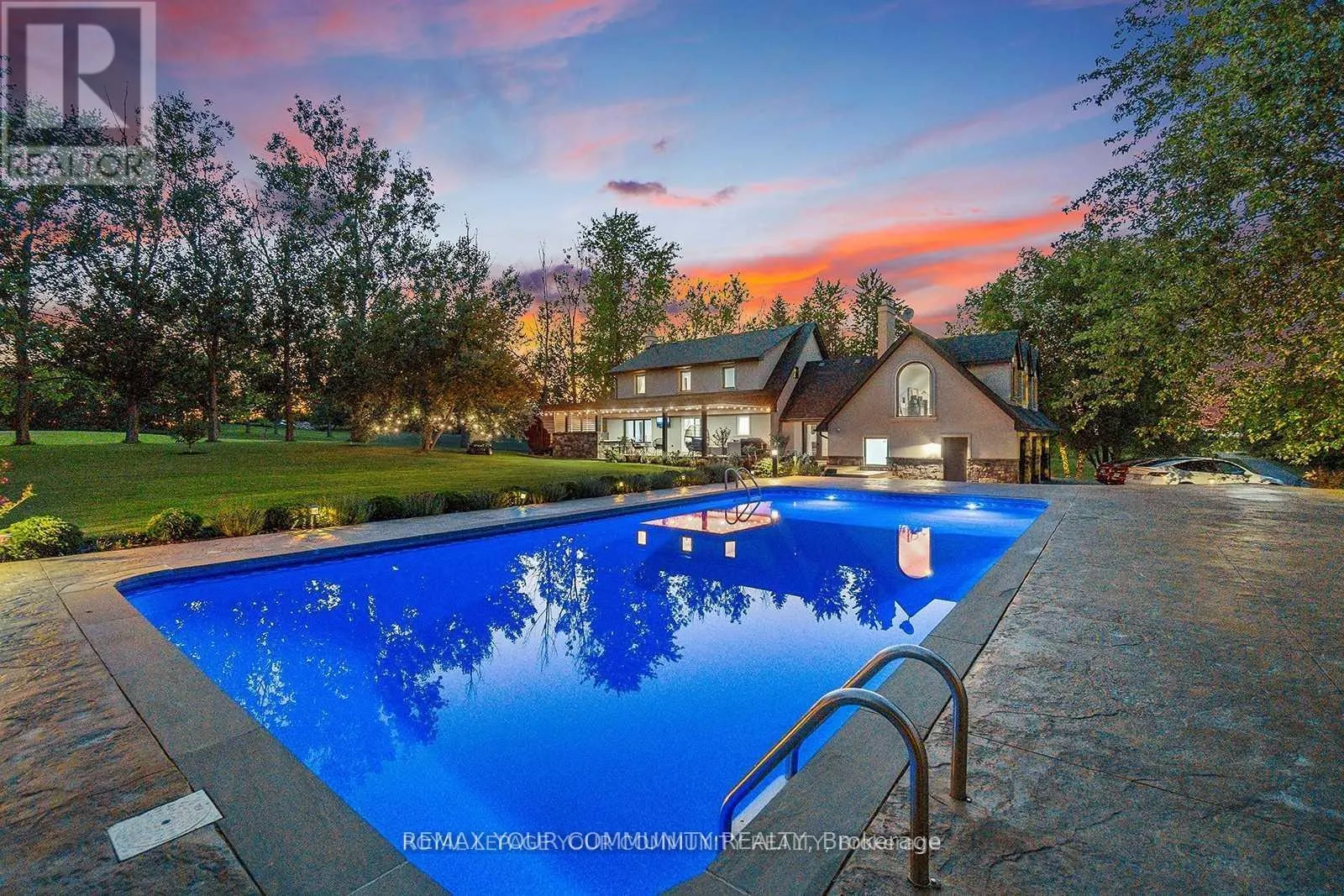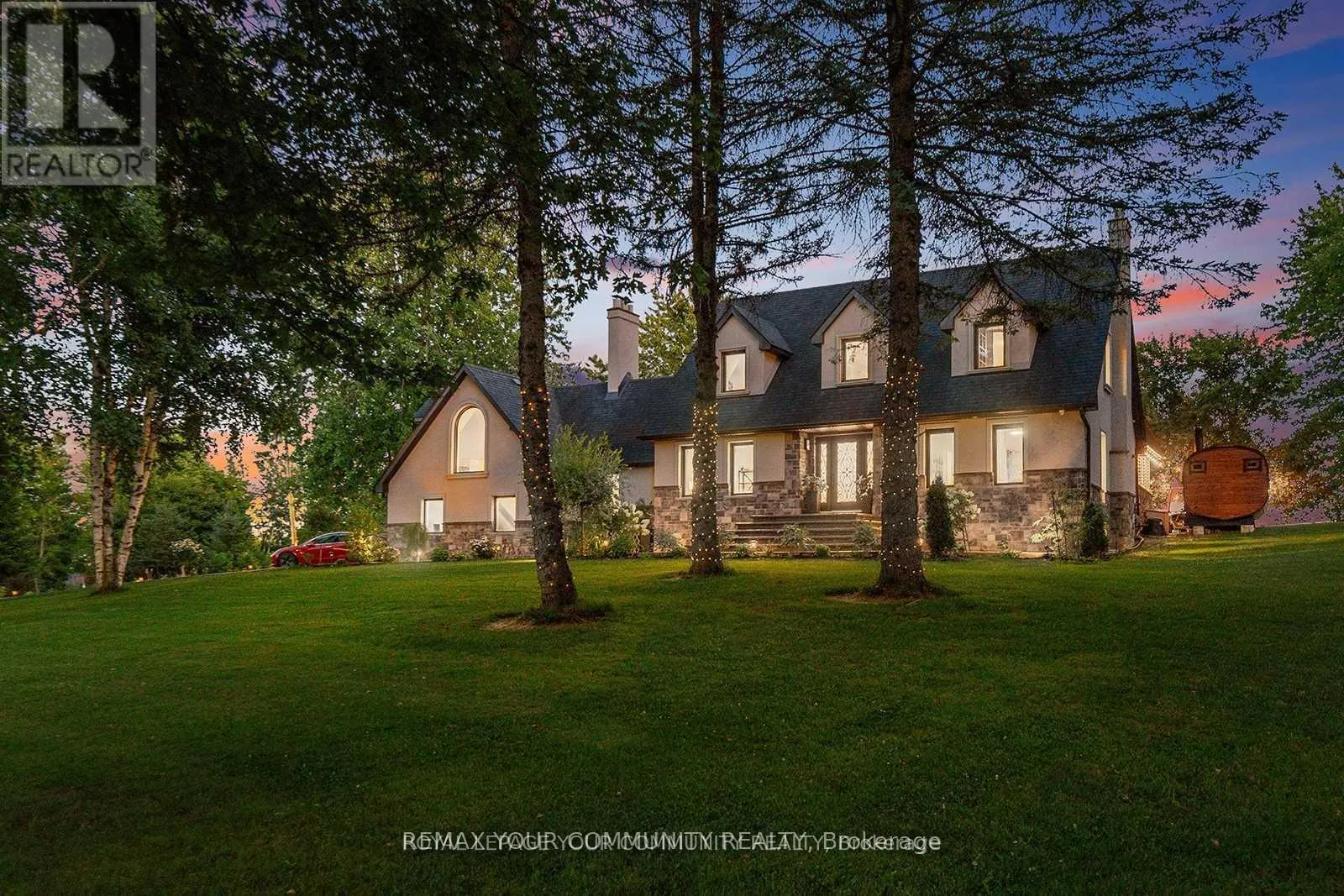 Tottenham Rd/3rd Line Stunning Estate on 4 Acres - A True Blend of Luxury and Serenity: This exceptional residence, set on 4 acres of beautifully manicured grounds, exemplifies refined craftsmanship and tranquil living. Offering nearly 5,000 sq. ft. of thoughtfully designed living space, the home features 4 spacious bedrooms - including one on the main floor - and 3 on the second level. Enjoy two luxurious bathrooms with heated floors, creating a spa-like atmosphere, and an epicurean kitchen equipped with heated flooring, premium stainless-steel appliances, and a walk-out to the terrace. The elegant living and dining areas boast captivating views of nature, while the sunken family room with vaulted ceilings opens to a charming patio. A private loft provides the perfect work-from-home space or the potential for a self-contained studio apartment. The finished basement includes an additional bedroom, a spa-inspired bathroom, and a large recreation room - ideal for entertaining or relaxing. The outdoor space is an entertainer's dream, complete with a chef's kitchen featuring professional-grade stainless steel appliances, multiple seating areas including a fire pit, an in-ground swimming pool, a stand-alone sauna, and a large steel workshop - perfect for housing luxury vehicles. This property is nothing short of extraordinary, offering spectacular views and a lifestyle of comfort and elegance. Close to major hwy, city and airport, in a friendly community, minutes away from shopping and schools. Please view the virtual tour to fully experience the unique charm and wellness this property provides. (id:27476)