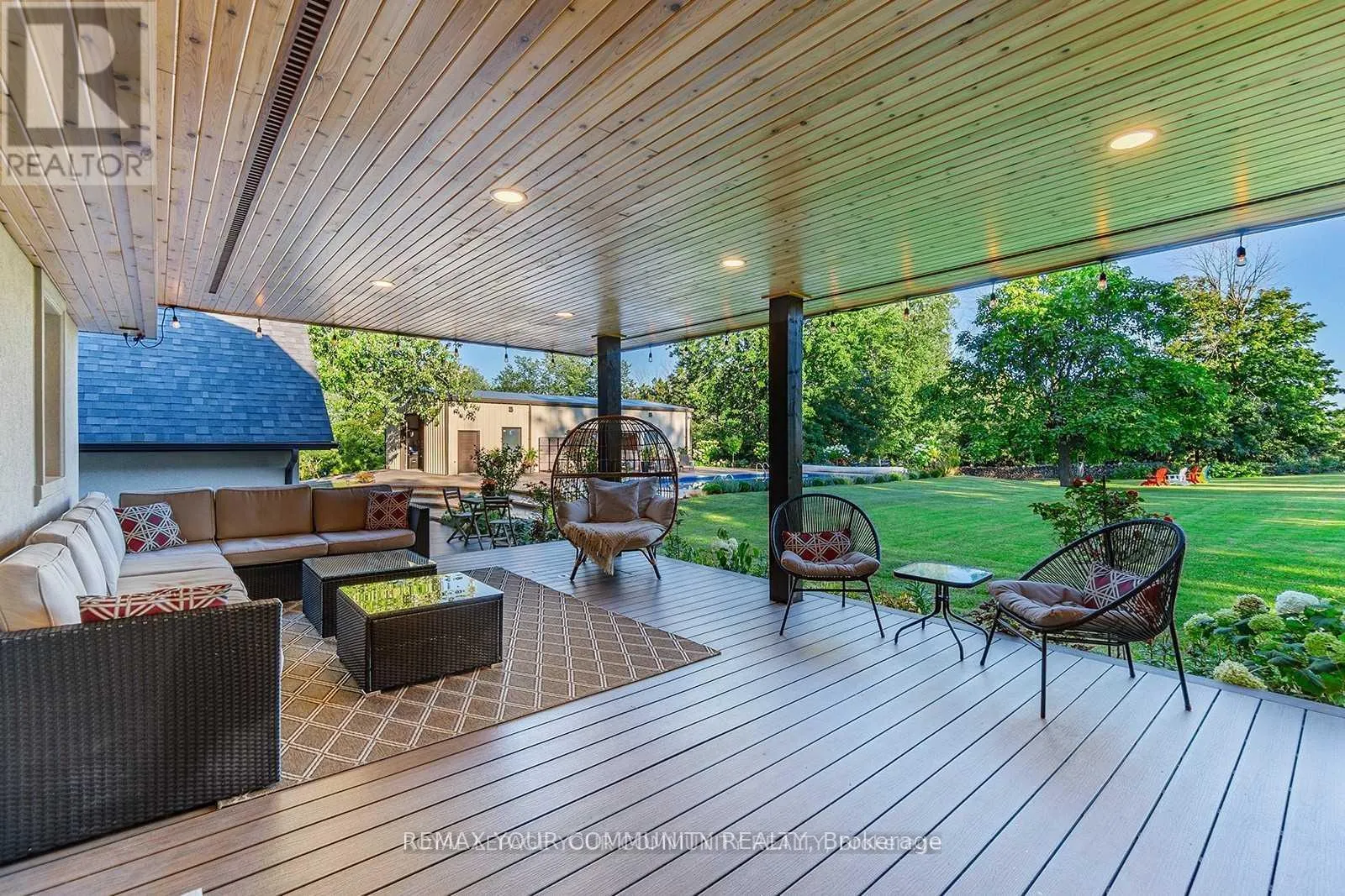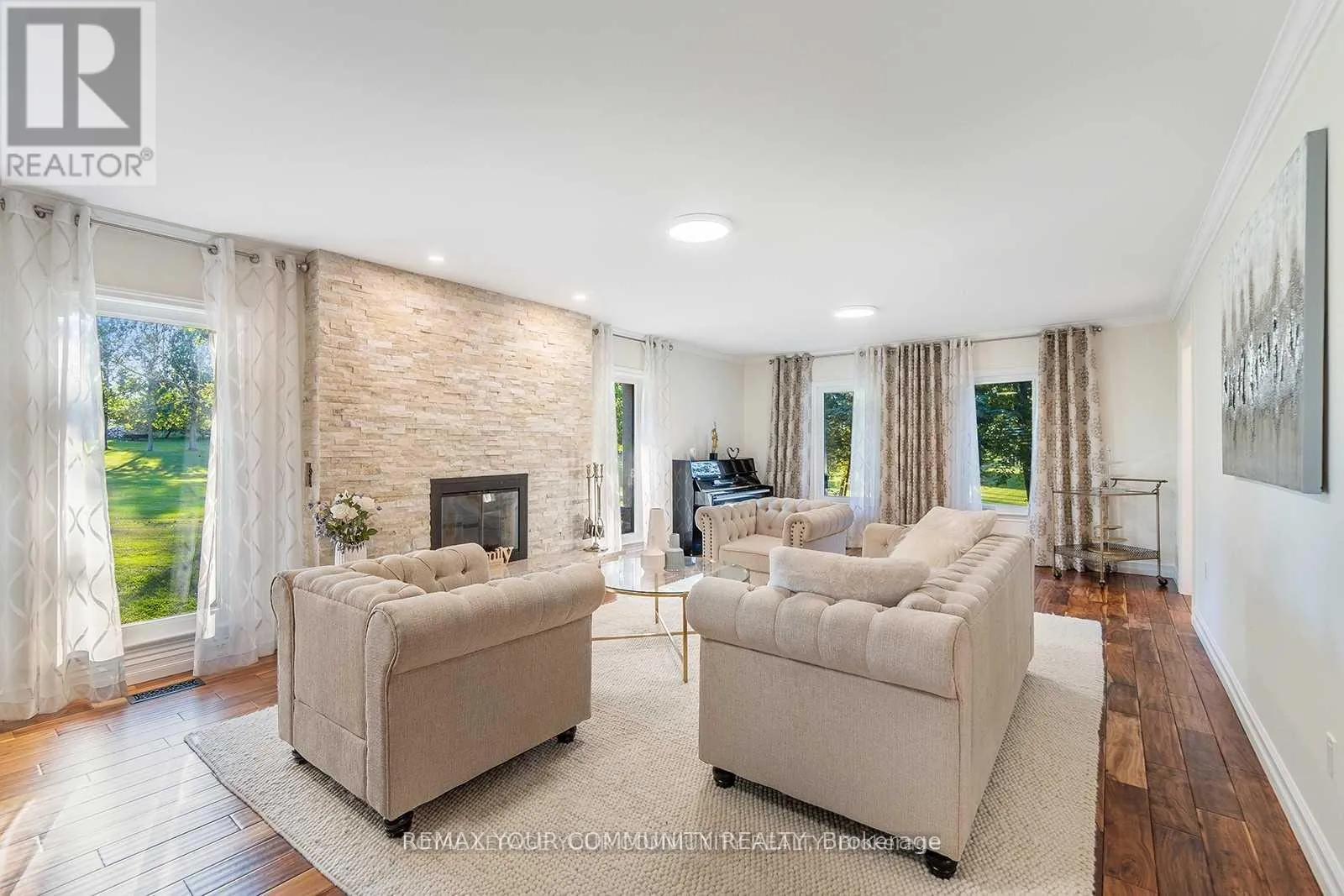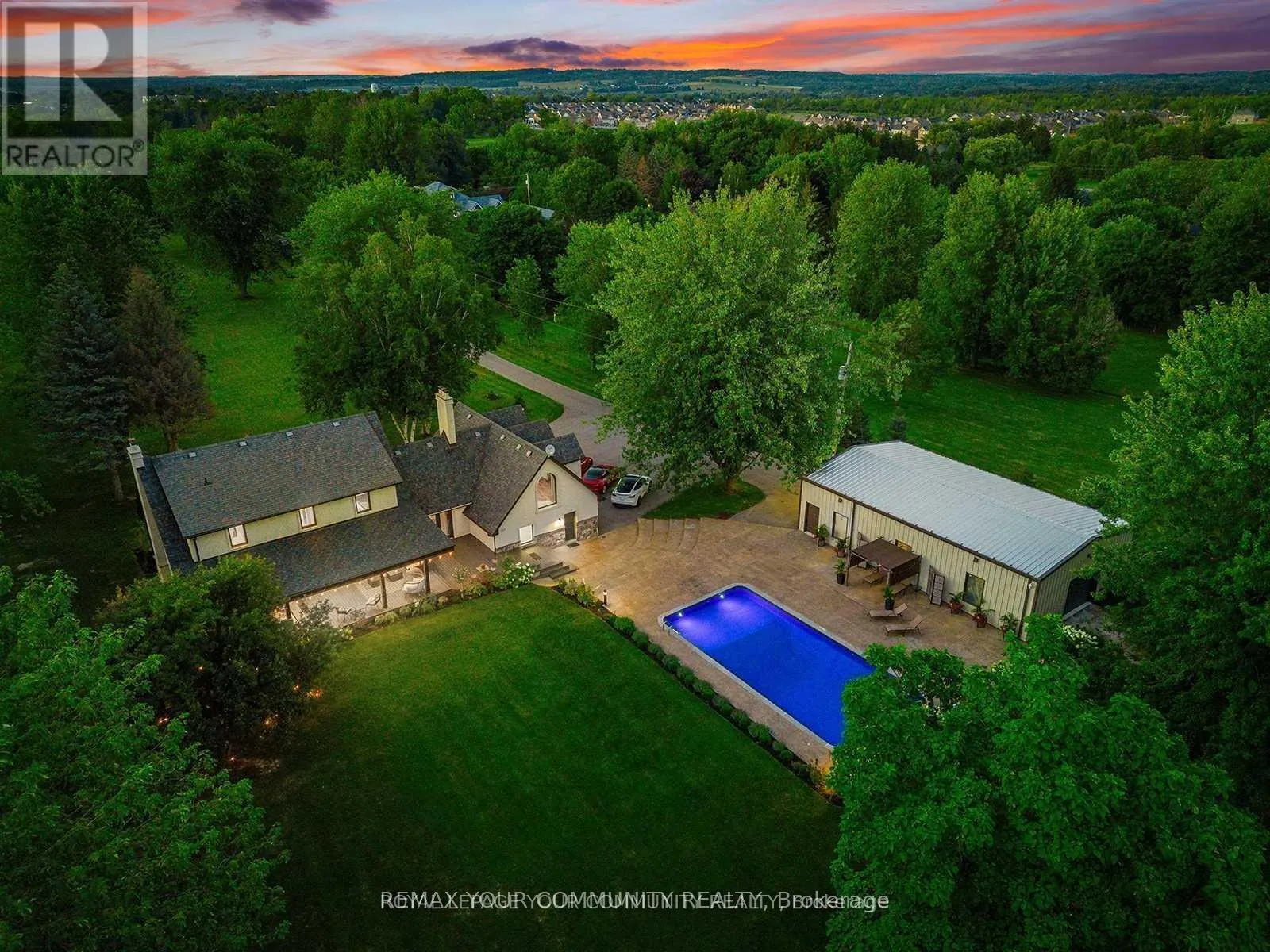 Tottenham Rd/3rd Line Stunning Estate on 4 Acres - A True Blend of Luxury and Serenity: This exceptional residence, set on 4 acres of beautifully manicured grounds, exemplifies refined craftsmanship and tranquil living. Offering nearly 5,000 sq. ft. of thoughtfully designed living space, the home features 4 spacious bedrooms - including one on the main floor - and 3 on the second level. Enjoy two luxurious bathrooms with heated floors, creating a spa-like atmosphere, and an epicurean kitchen equipped with heated flooring, premium stainless-steel appliances, and a walk-out to the terrace. The elegant living and dining areas boast captivating views of nature, while the sunken family room with vaulted ceilings opens to a charming patio. A private loft provides the perfect work-from-home space or the potential for a self-contained studio apartment. The finished basement includes an additional bedroom, a spa-inspired bathroom, and a large recreation room - ideal for entertaining or relaxing. The outdoor space is an entertainer's dream, complete with a chef's kitchen featuring professional-grade stainless steel appliances, multiple seating areas including a fire pit, an in-ground swimming pool, a stand-alone sauna, and a large steel workshop - perfect for housing luxury vehicles. This property is nothing short of extraordinary, offering spectacular views and a lifestyle of comfort and elegance. Close to major hwy, city and airport, in a friendly community, minutes away from shopping and schools. Please view the virtual tour to fully experience the unique charm and wellness this property provides. (id:27476)