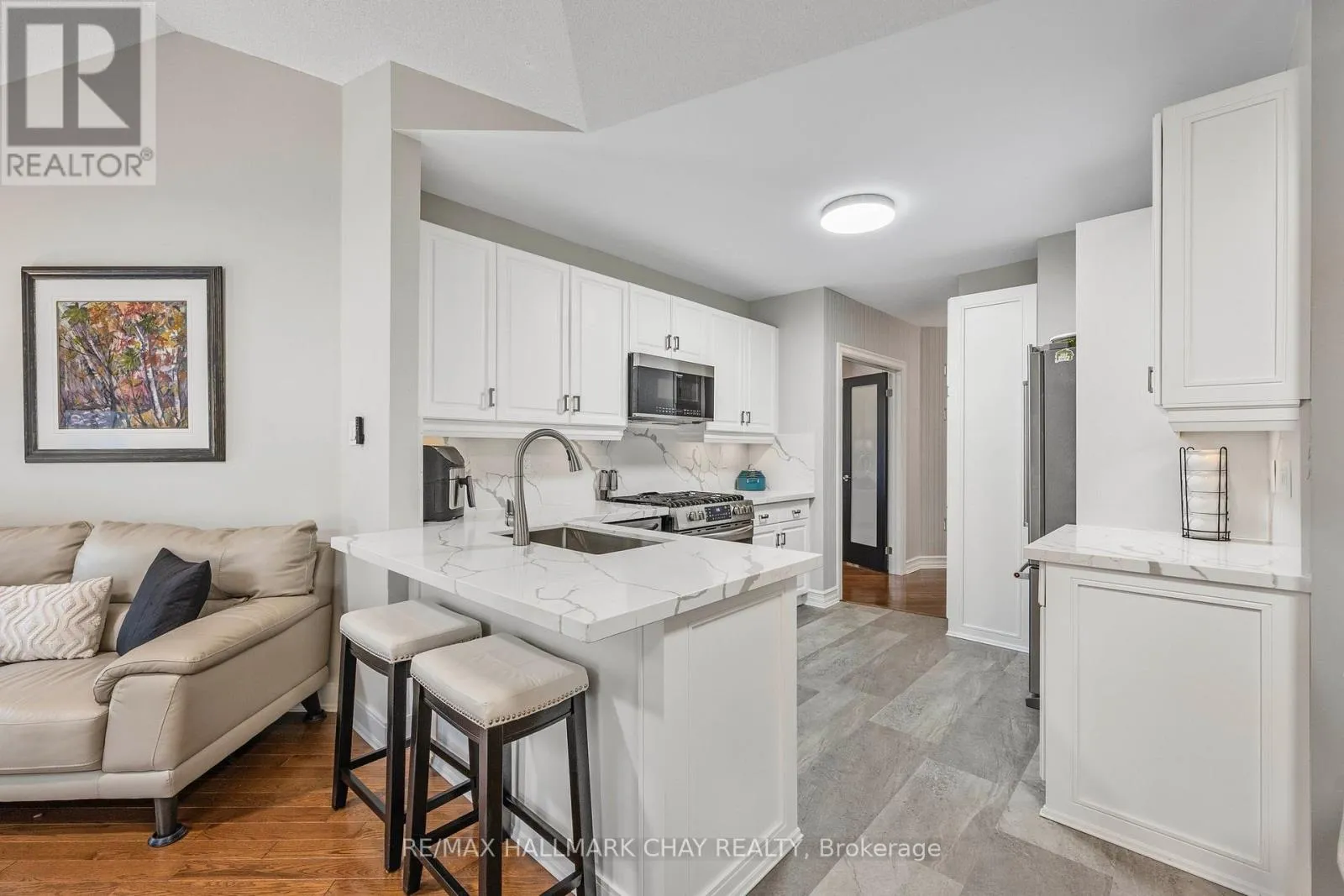 Cross Streets: 89/CW LEACH. ** Directions: C/W LEACH/MACKENZIE/SUNSET/FORTUNA. BEAUTIFUL BUNGALOFT ADULT GOLFING COMMUNITY OF BRIAR HILL! Extensive renovations, dressed to impress from top to bottom! Entertain in style, grand dining room with cathedral ceilings across from a lovely formal living room. Beautifully upgraded kitchen with Quartz counter top/backsplash, newer stainless appliances, with a breakfast bar and open to Great Room, cathedral ceilings, gas fireplace and a walk out to the deck. Deck has composite decking, privacy screens and an awning. Escape to your spacious Primary suite with w/walk in closet, four piece ensuite, separate shower. Family or friends can enjoy the loft bedroom with cathedral ceilings or use it for an office/library. Main floor guest bathroom is full 4 piece. The basement has been totally renovated with loads of pot lights, Napoleon electric fireplace and a perfect place for your Big Screen TV! Cozy and luxurious broadloom and a built in bookcase. The 3rd bedroom is roomy with double closets and a 3 piece bathroom close by for guests. The other room is set up like a kitchen, full of cabinetry for extra storage. Roomy cold cellar and a few extra closets. NEWER LIST: FURNACE, AIR CONDITIONER, FRIDGE & STOVE, DISHWASHER, MICROWAVE/FAN, WASHER/DRYER, QUARTS COUNTER/BACKSPLASH, LIGHT FIXTURES, ALL SWITCHES/PLUGS, CUSTOM WINDOW TREAMENTS, FIREPLACE IN BASEMENT, DOORS & TRIM: Move in and enjoy this home with a Community Centre for activities, access to the Nottawasaga Inn for discounted gym and restaurants, golf, close to Walmart, Timmies, Liquor store, Alliston shops, churches, Hwy 27 & 400 (id:27476)